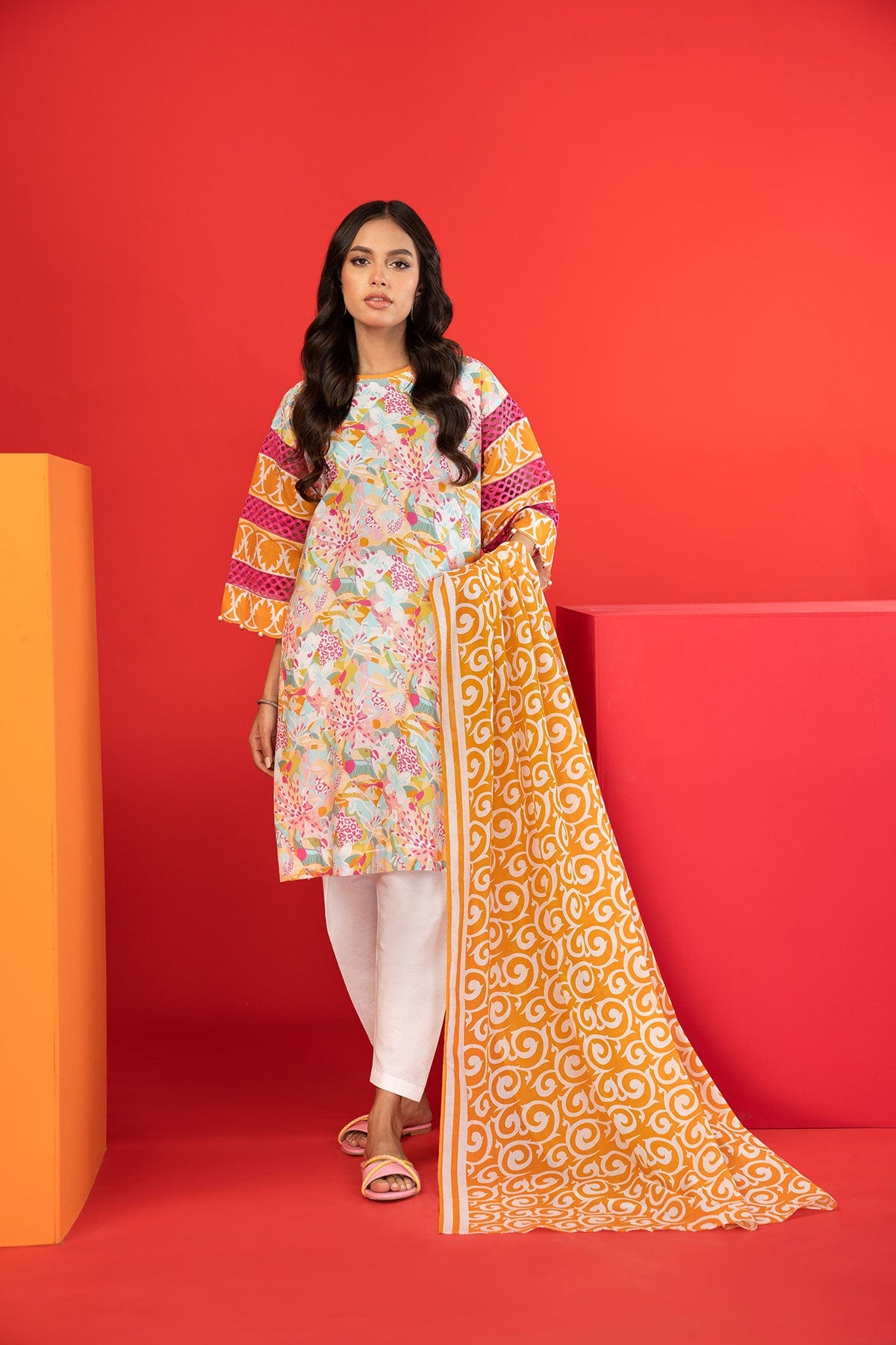 unstitched 1-piece printed lawn dupatta season: summer color: orange collection: silver collection'23 vol.1 dupatta: printed lawn dupatta 2.5 meters fabric: lawn disclaimer: due to the difference in lighting used during photoshoots, the color or texture of the actual product may slightly vary from the image.
