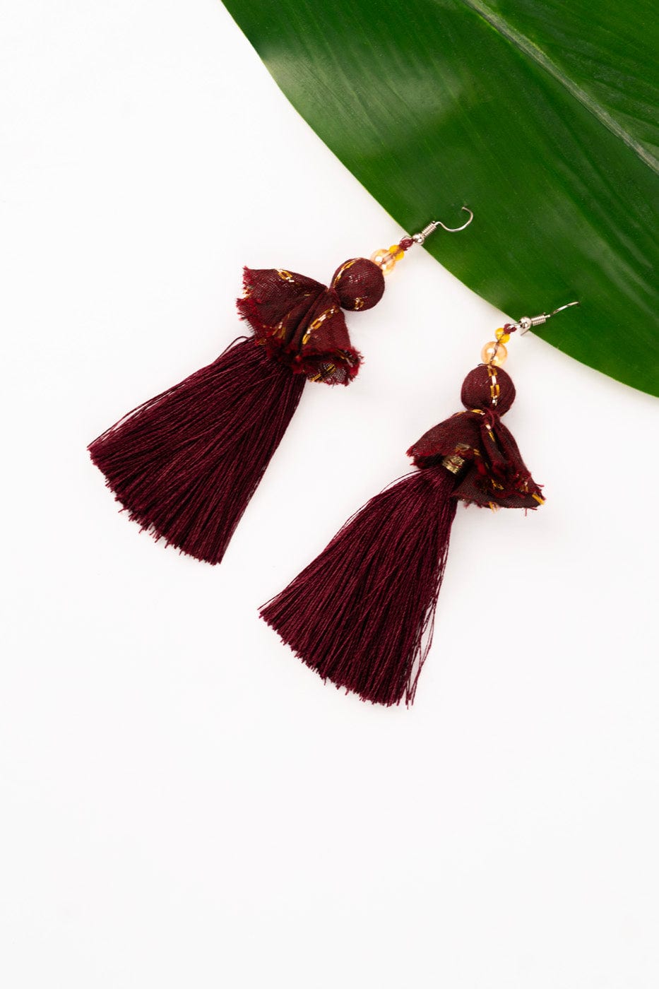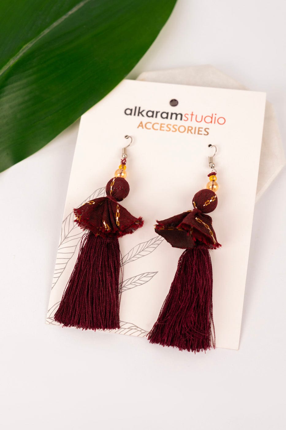 color: maroon discover elegance redefined with our curated collection of earrings. hand-crafted with precision for every occasion, these exquisite pieces are designed to elevate your style effortlessly. disclaimer: due to the difference in lighting used during photoshoots, the color or texture of the actual product may slightly vary from the image.