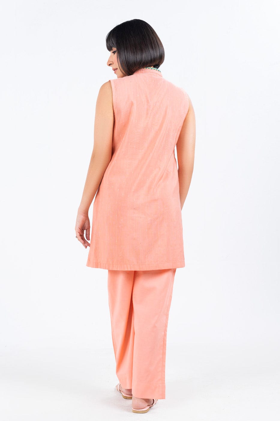 2 pc outfit - shirt & trouser fabric: dobby design: embroidered fit: regular sleeve type: sleeveless our embroidered ready-to-wear line brings an array of intricately embroidered outfits ranging from contemporary to traditional cuts; perfect for your day events to your evening looks. disclaimer: due to the difference in lighting used during photoshoots, the color or texture of the actual product may slightly vary from the image.