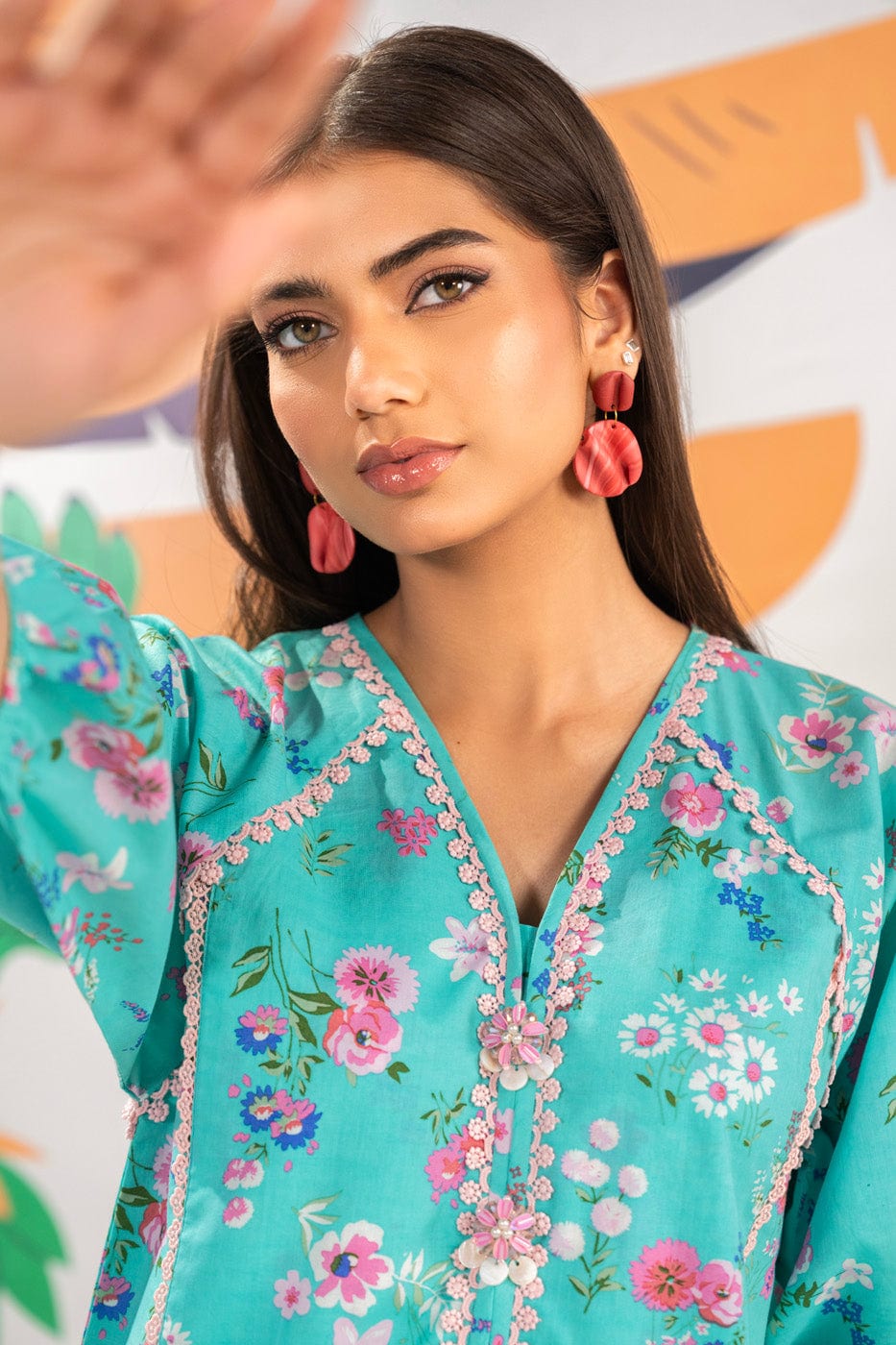 unstitched 1-piece printed cambric shirt color: turquoise shirt: printed cambric shirt 2.5 meters fabric: cambric disclaimer: due to the difference in lighting used during photoshoots, the color or texture of the actual product may slightly vary from the image.