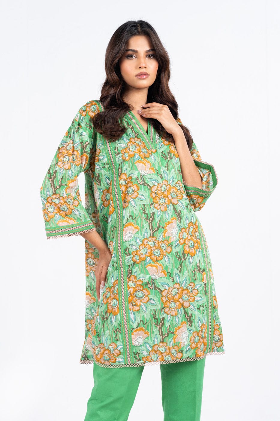 unstitched 1-piece printed lawn shirt color: green shirt: printed lawn shirt 2.5 meters fabric: lawn disclaimer: due to the difference in lighting used during photoshoots, the color or texture of the actual product may slightly vary from the image.