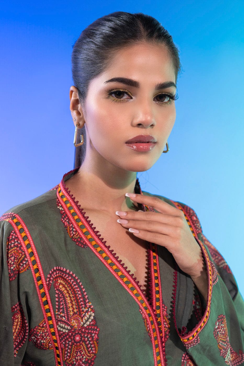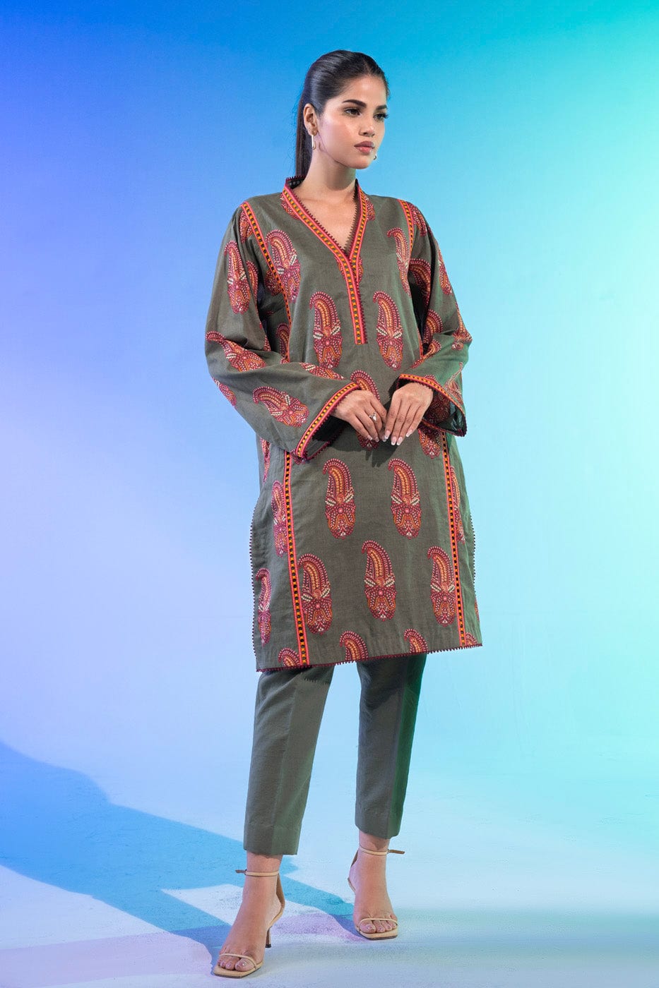 unstitched 1-piece printed lawn shirt color: army green shirt: printed lawn shirt 2.5 meters fabric: lawn disclaimer: due to the difference in lighting used during photoshoots, the color or texture of the actual product may slightly vary from the image.