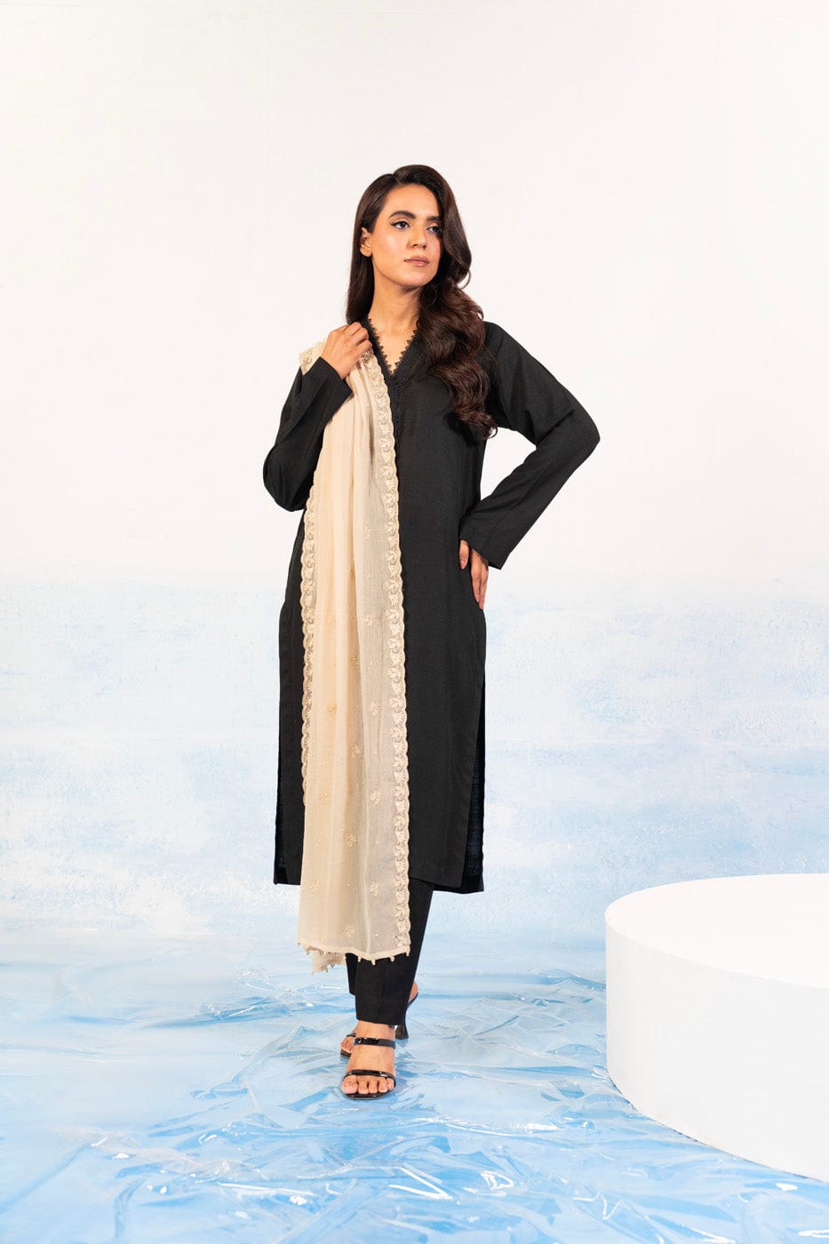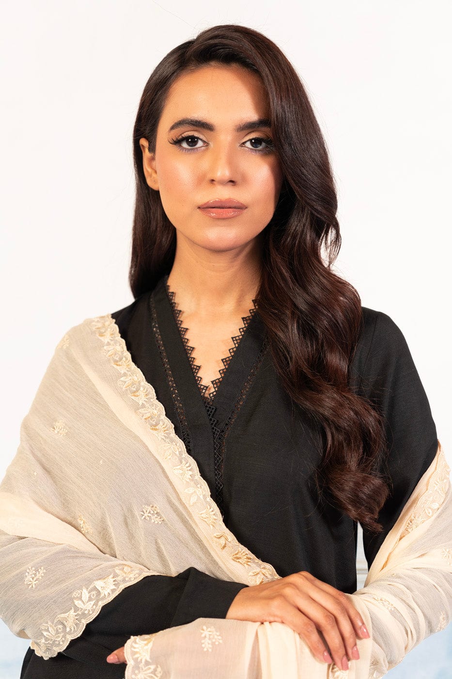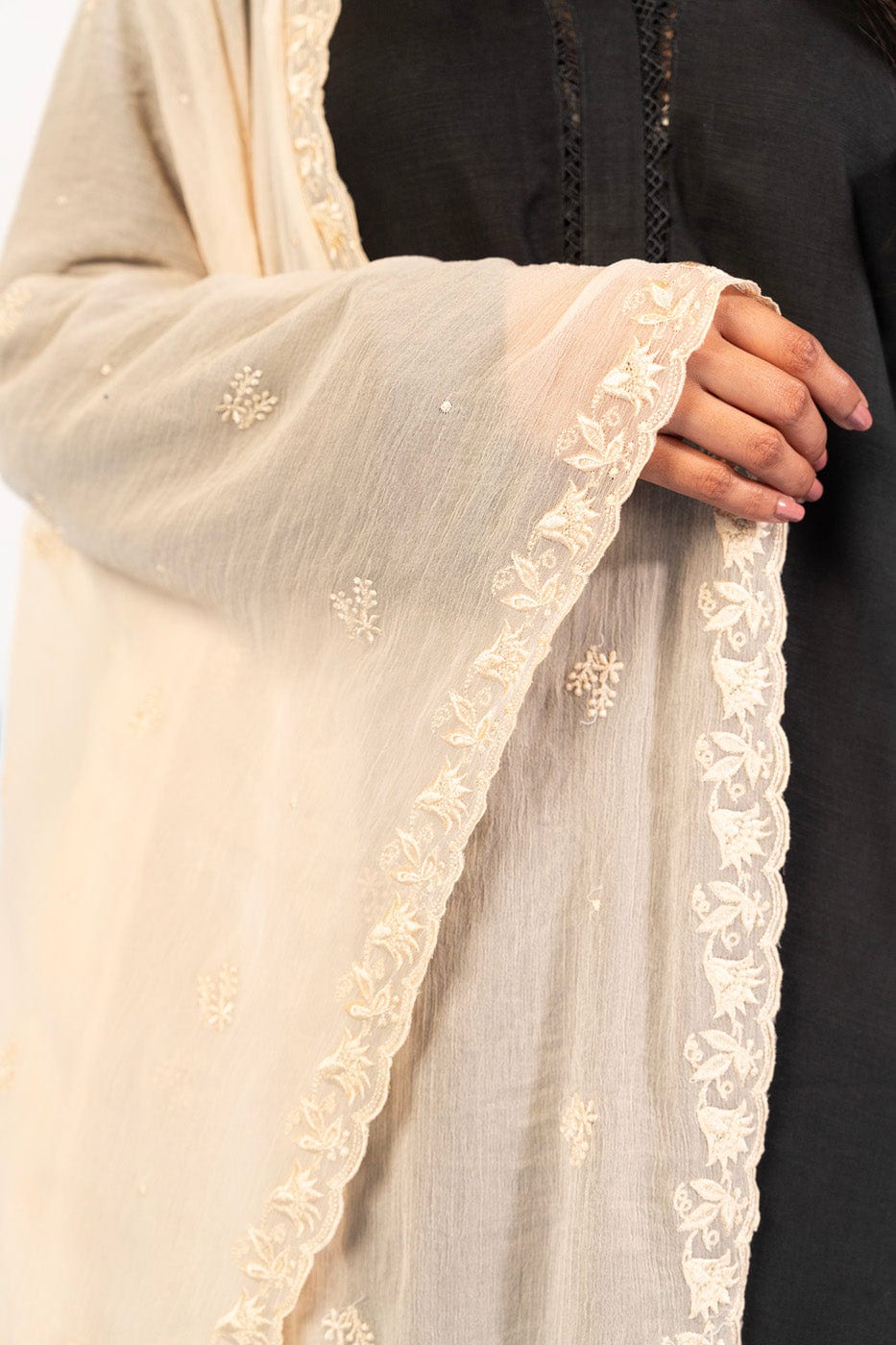 unstitched 1-piece embroidered chiffon dupatta color: beige dupatta: embroidered chiffon dupatta 2.5 meters fabric: chiffon disclaimer: due to the difference in lighting used during photoshoots, the color or texture of the actual product may slightly vary from the image.