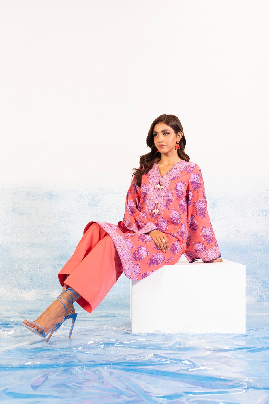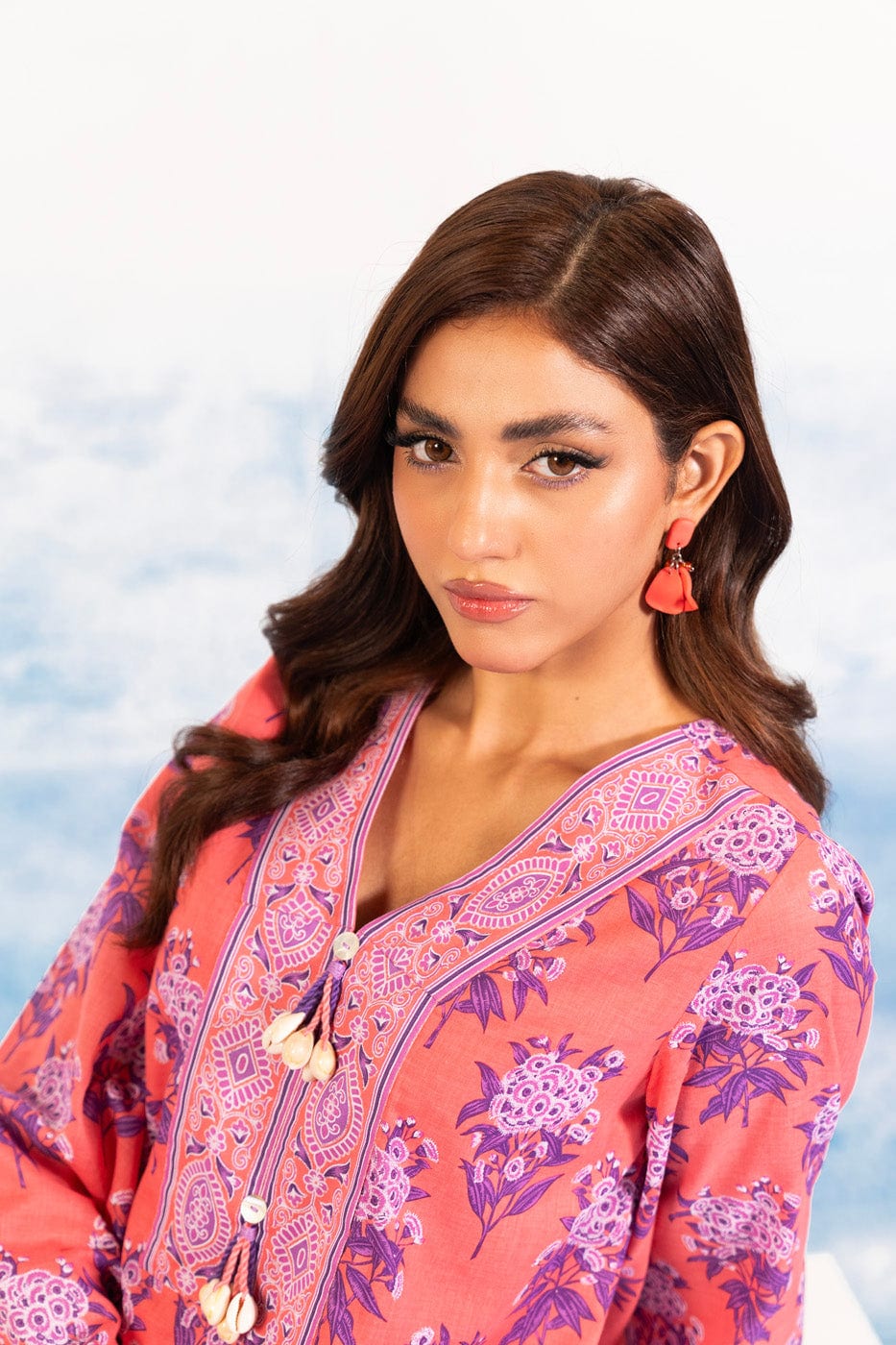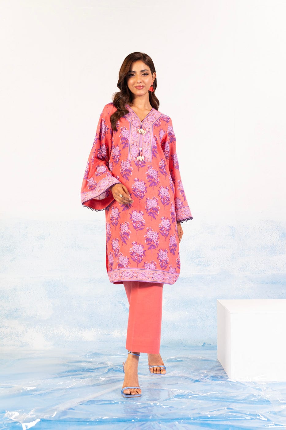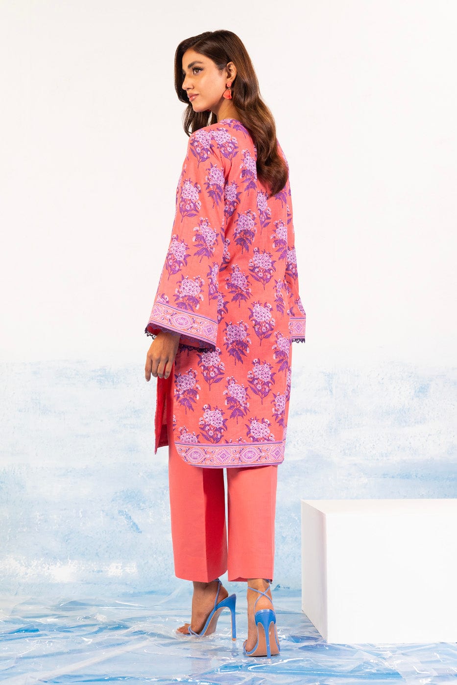 unstitched 1-piece printed silver lawn shirt color: coral pink shirt: printed lawn shirt 2.5 meters fabric: lawn disclaimer: due to the difference in lighting used during photoshoots, the color or texture of the actual product may slightly vary from the image.