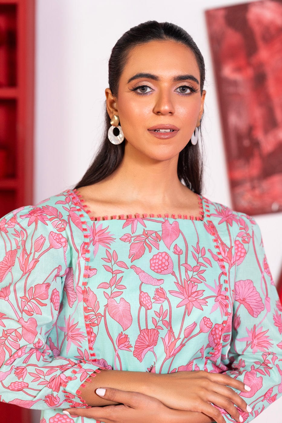 unstitched 1-piece printed lawn shirt color: aqua marine blue shirt: printed lawn shirt 2.5 meters fabric: lawn disclaimer: due to the difference in lighting used during photoshoots, the color or texture of the actual product may slightly vary from the image.