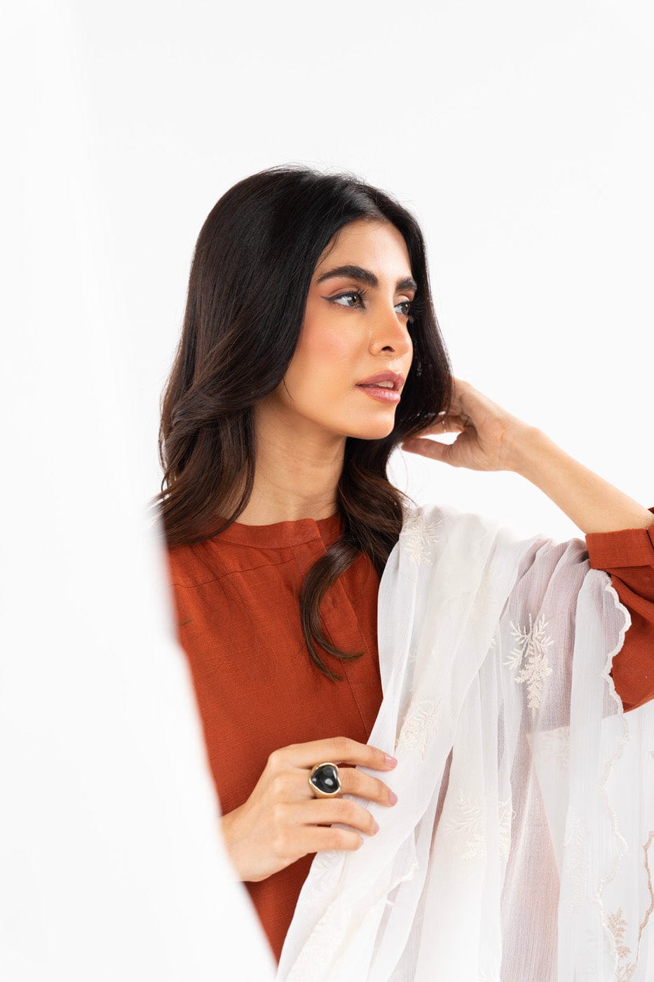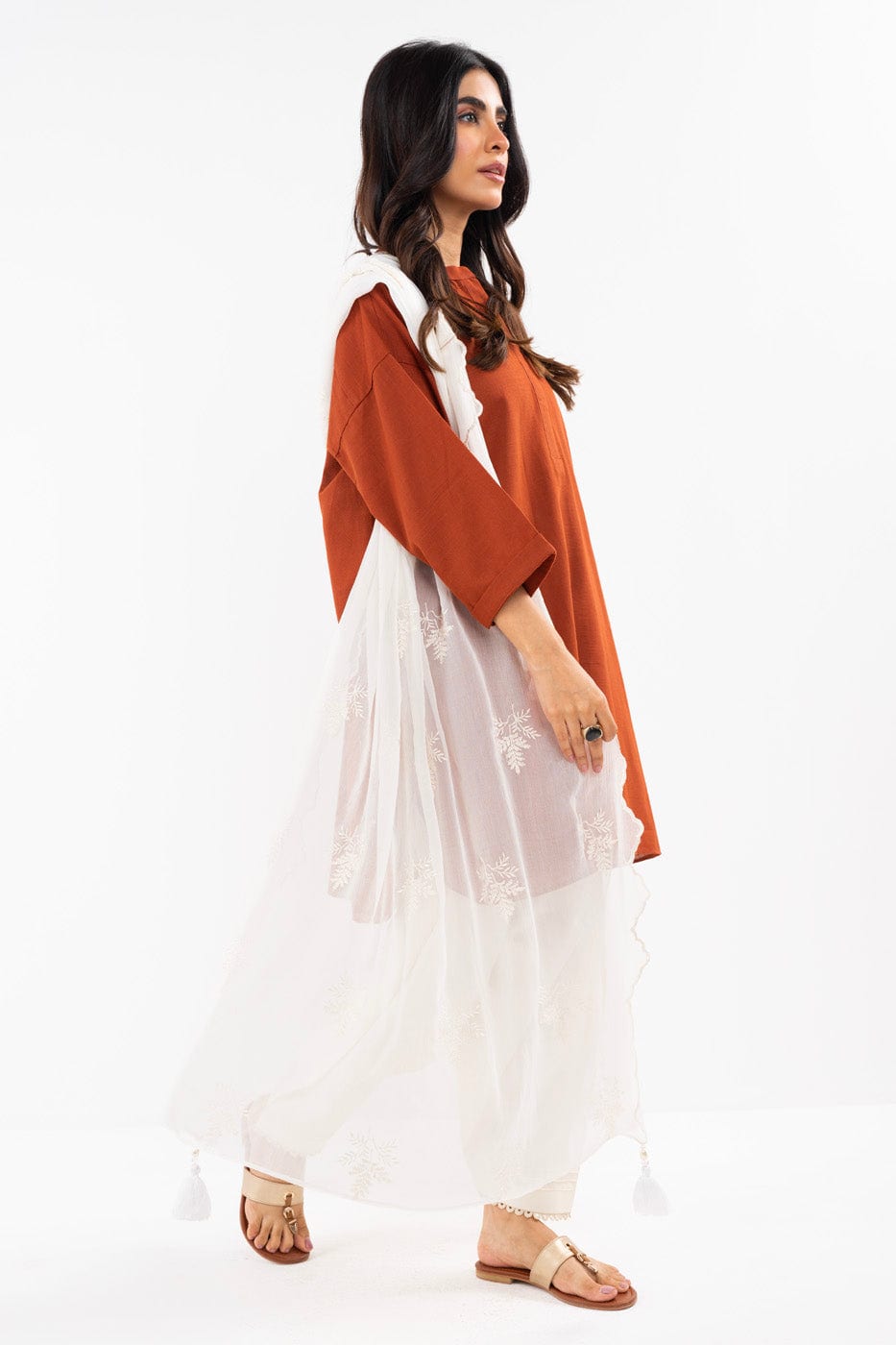 unstitched 1-piece embroidered chiffon dupatta color: white dupatta: embroidered chiffon dupatta 2.5 meters fabric: chiffon disclaimer: due to the difference in lighting used during photoshoots, the color or texture of the actual product may slightly vary from the image.