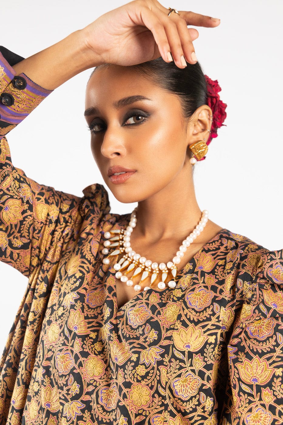 """the per meter price of this article is: pkr 890 unstitched fabric - sold by meter printed cotton satin fabric color: black collection: festive catalyst'23 fabrics from our catalyst collection are sold by meter. you can get the fabric as per your requirement in batches of 2.5 meters" disclaimer: due to the difference in lighting used during photoshoots, the color or texture of the actual product may slightly vary from the image.