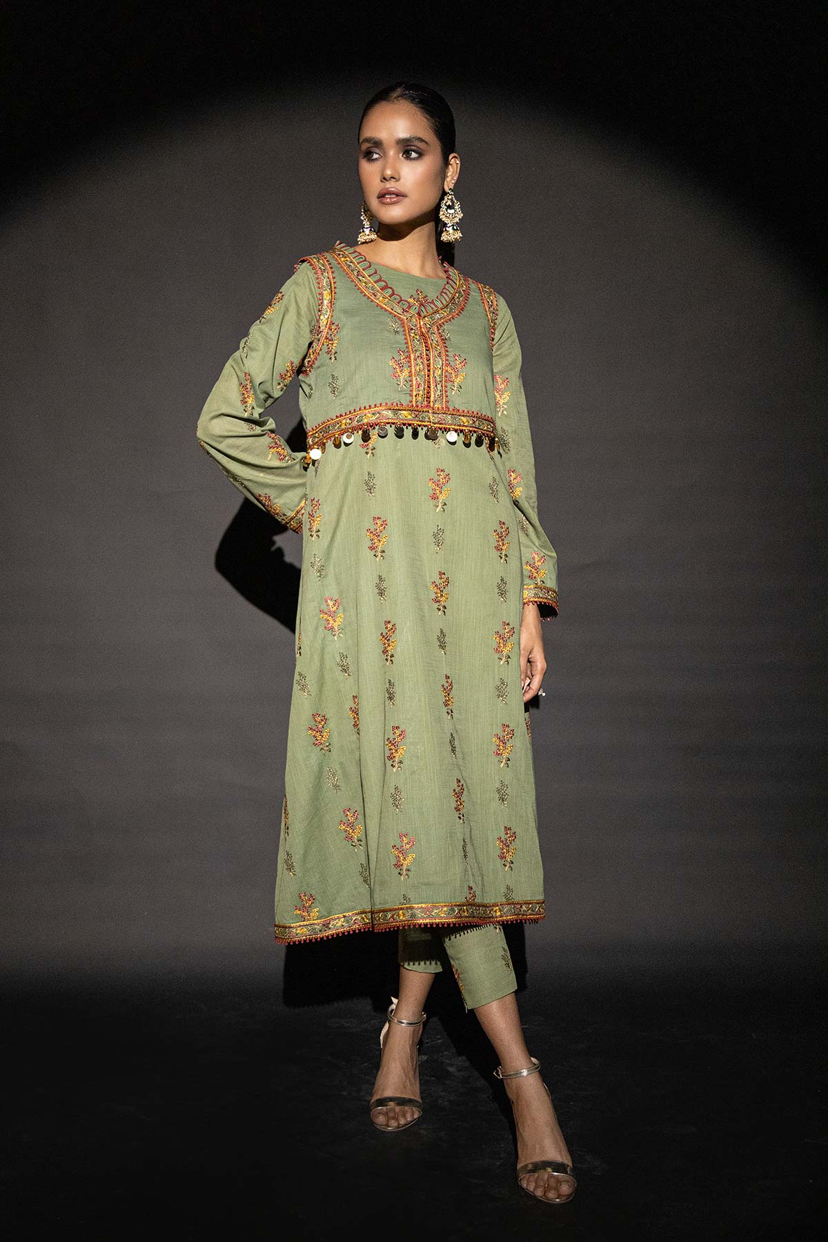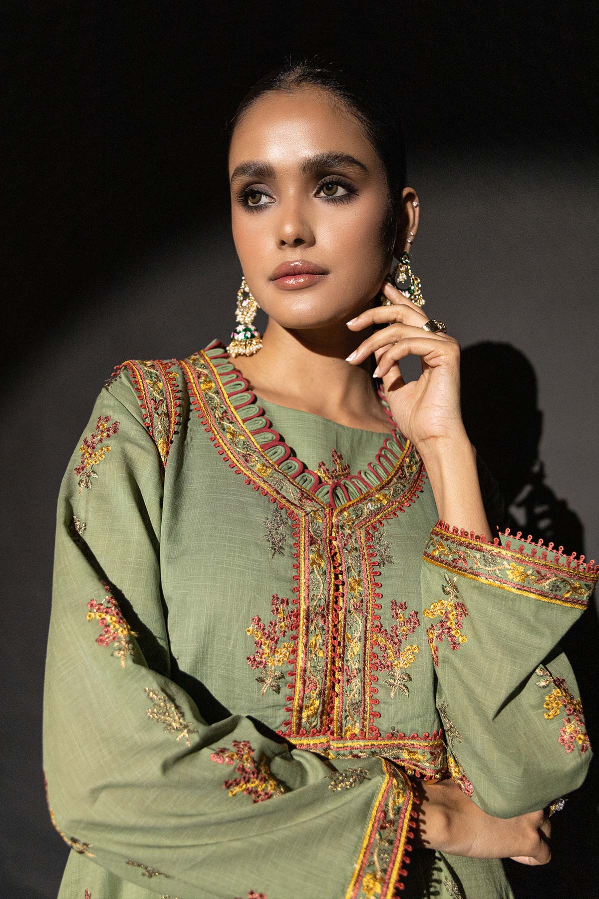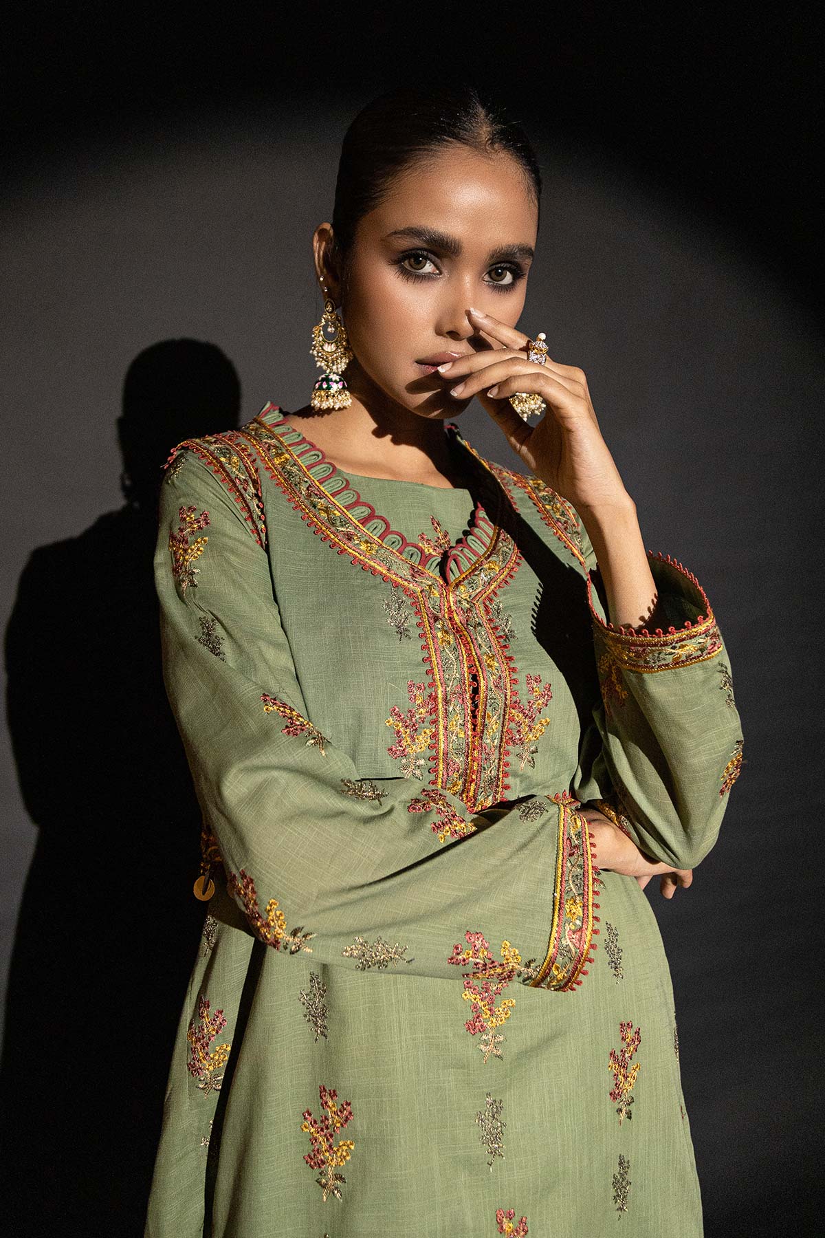 the per meter price of this article is: 1420 unstitched fabric - sold by meter embroidered two way slub fabric color: olive green collection: festive catalyst'23 vol.2 fabrics from our catalyst collection are sold by meter. you can get the fabric as per your requirement in batches of 2.5 meters. disclaimer: due to the difference in lighting used during photoshoots, the color or texture of the actual product may slightly vary from the image.