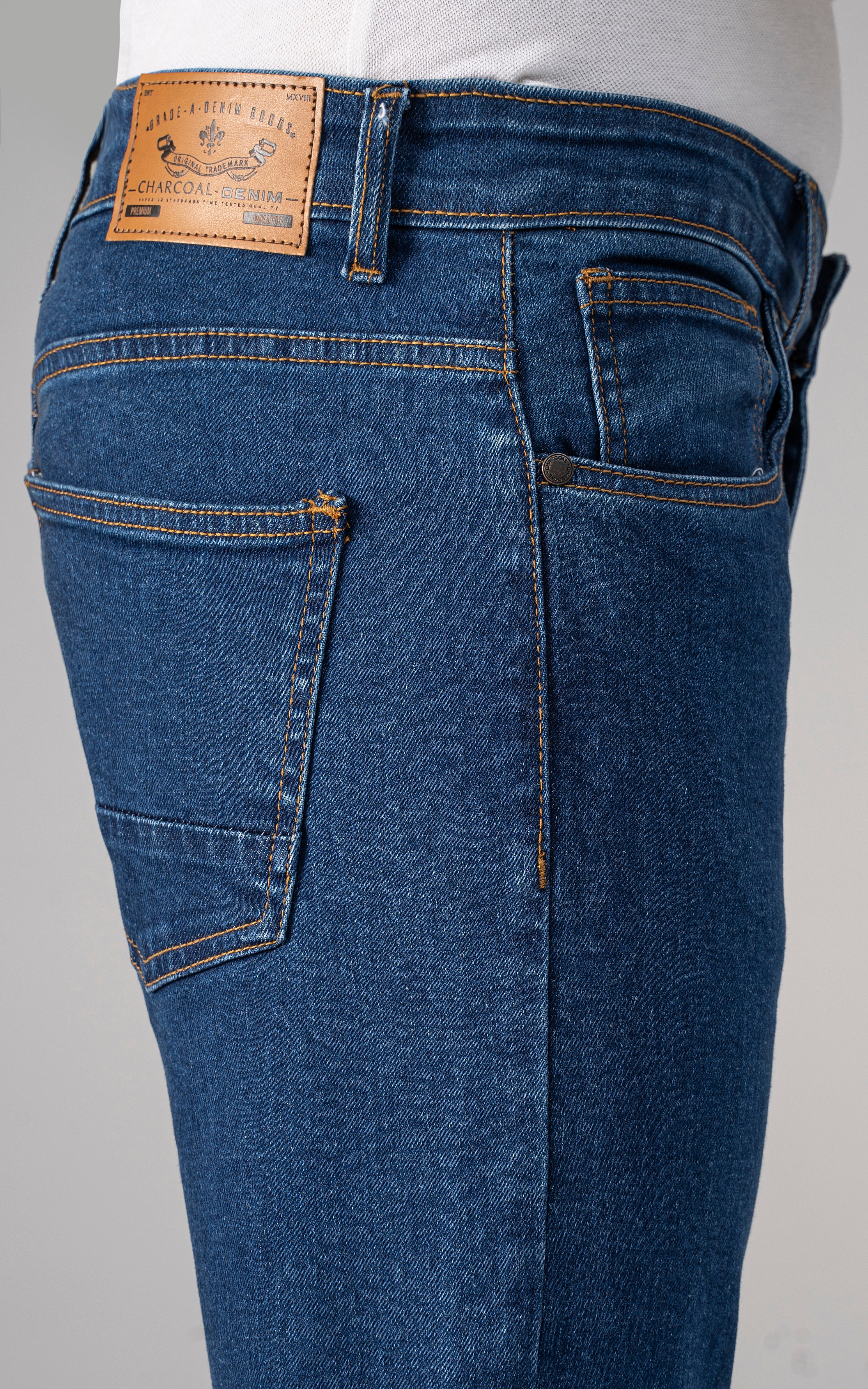 designed for all day consolation and fashion, this dark blue wash detail jeans made with exclusive cotton stretch fabric, featuring traditional five pocket styling, rivets for extra durability, and with plenty of pockets to hold your essentials. sustainable cotton stretch fabric.