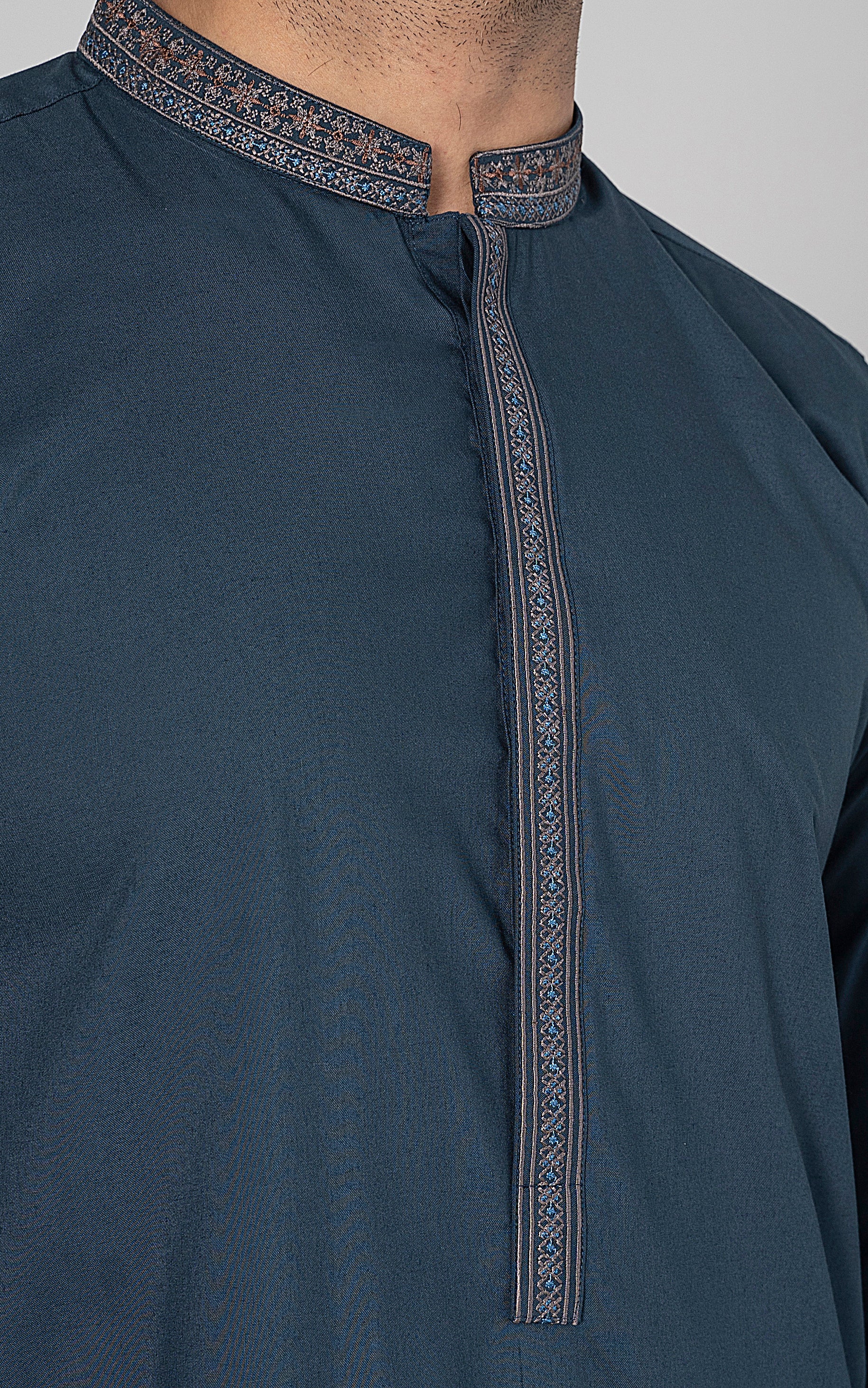 this fabric is construted from special fibres of polyester and viscose. this fabric is fine and eminently blended. it strives to give comfort and has an elegant look. this article is available in light colors. mandarin ban stitching details on ban hidden placket stitching and trim details on front placket dtm buttons inside stitching details on sleeve placket cut cuff, straight hem wash & wear fabric.