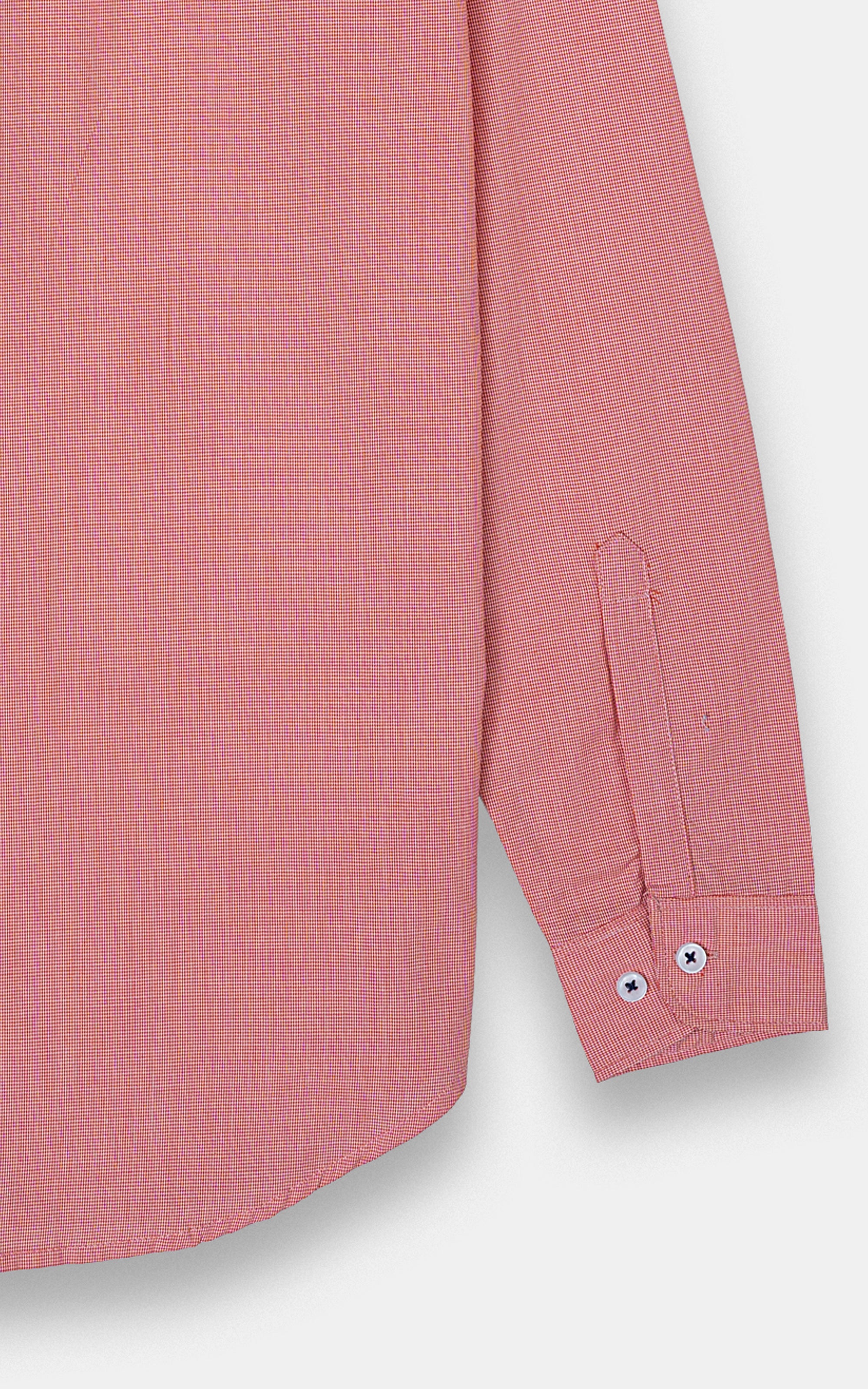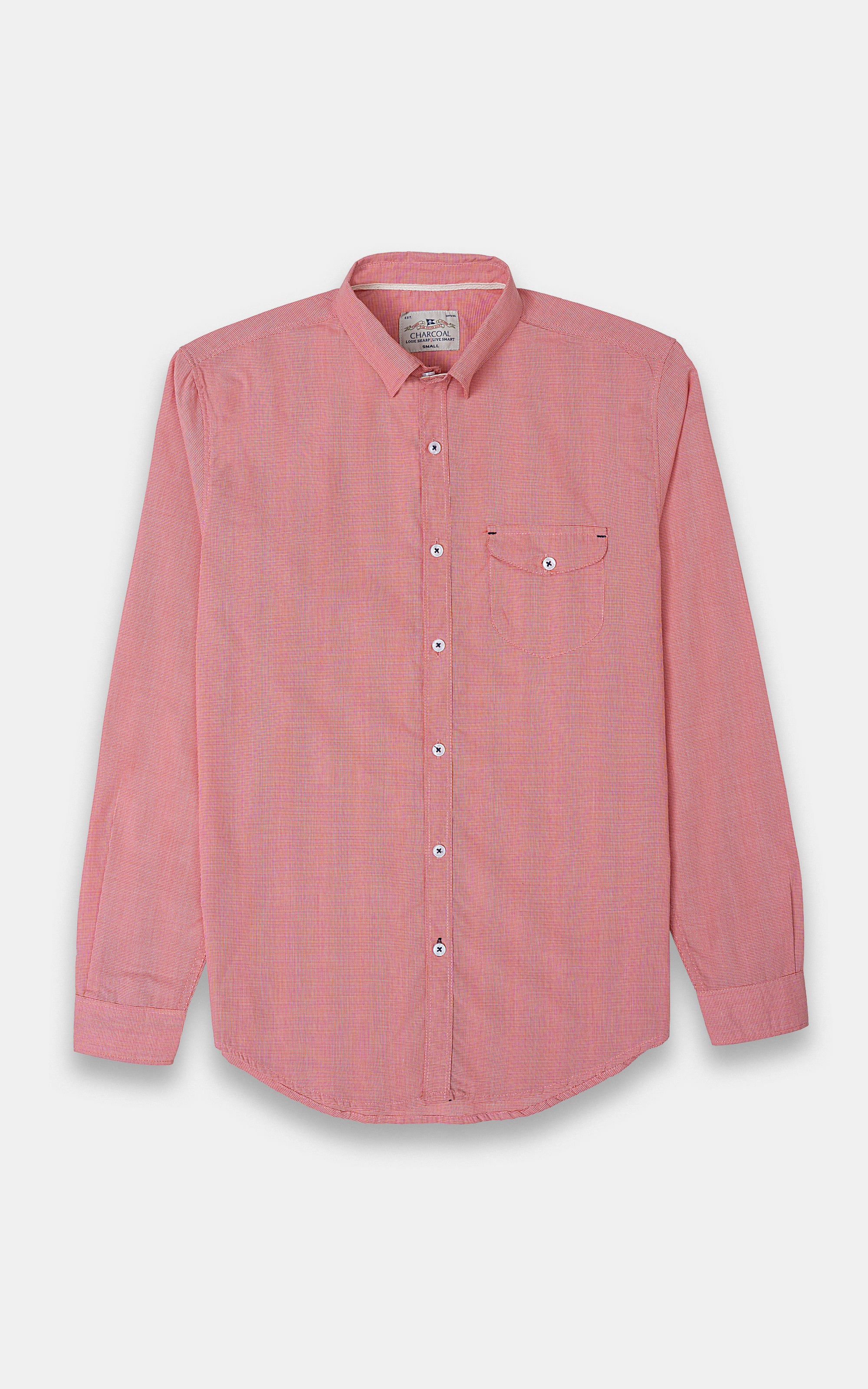 this hidden button-down collar shirt, featuring twill tape inside ban and a front pocket accented by bartacks, and is the gentlemans choice. the piping along the button placket edge adds a touch of sophistication, while the contrasting back loop offers subtle detail. crafted from comfortable cotton-rich textured fabric and finished with buttoned fastening and full sleeves, it's both stylish and practical. plus, it's machine washable for effortless care.