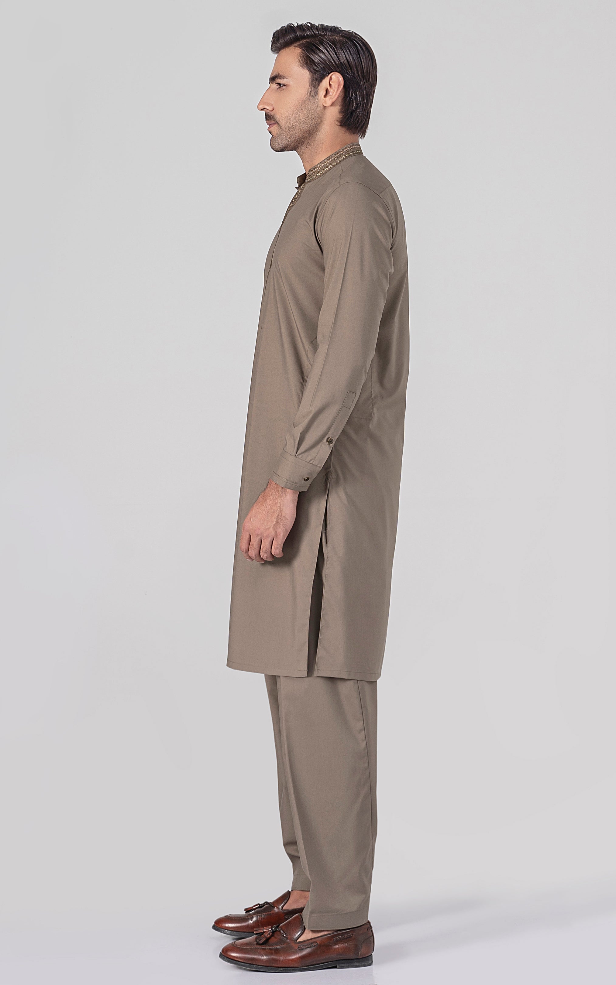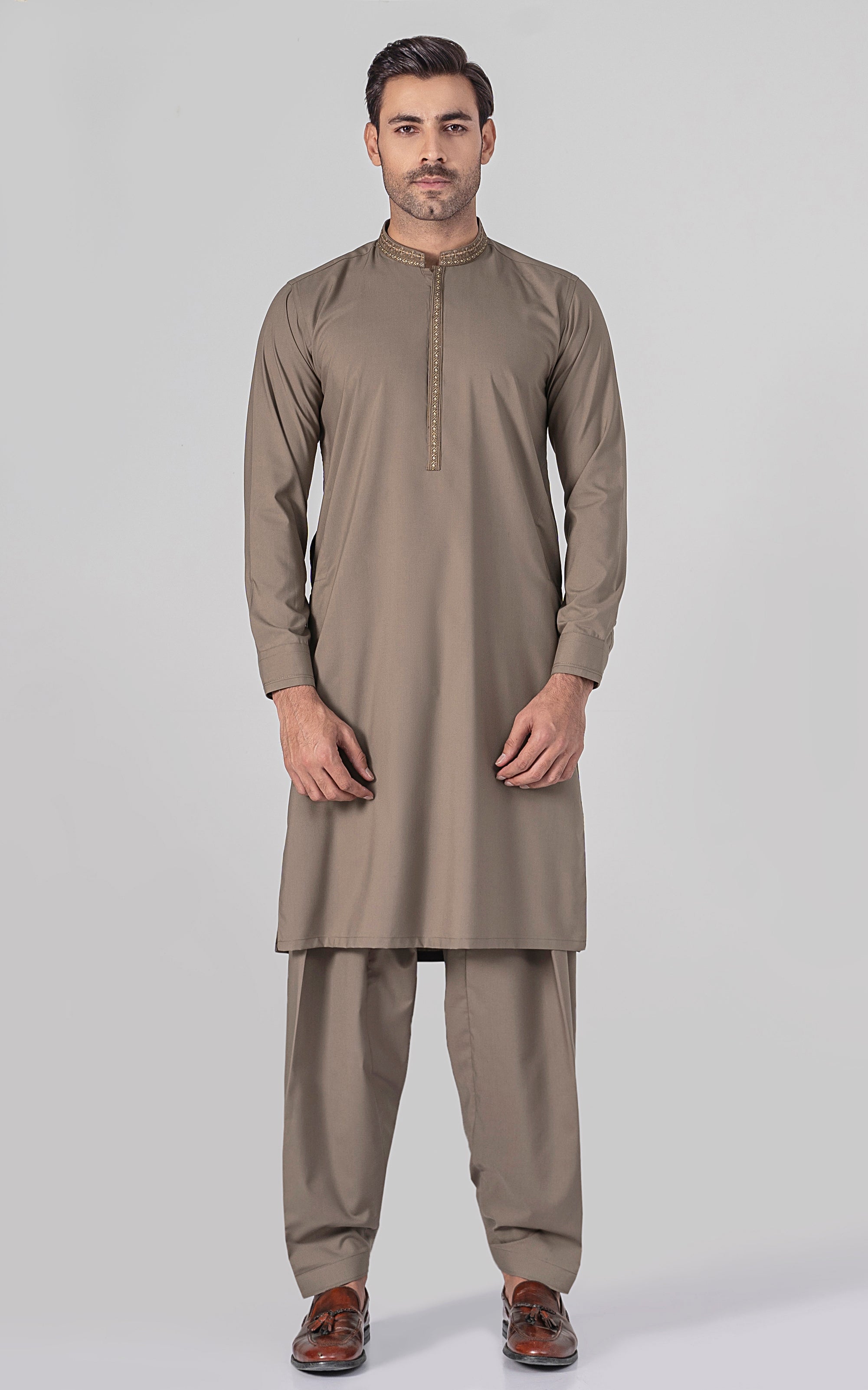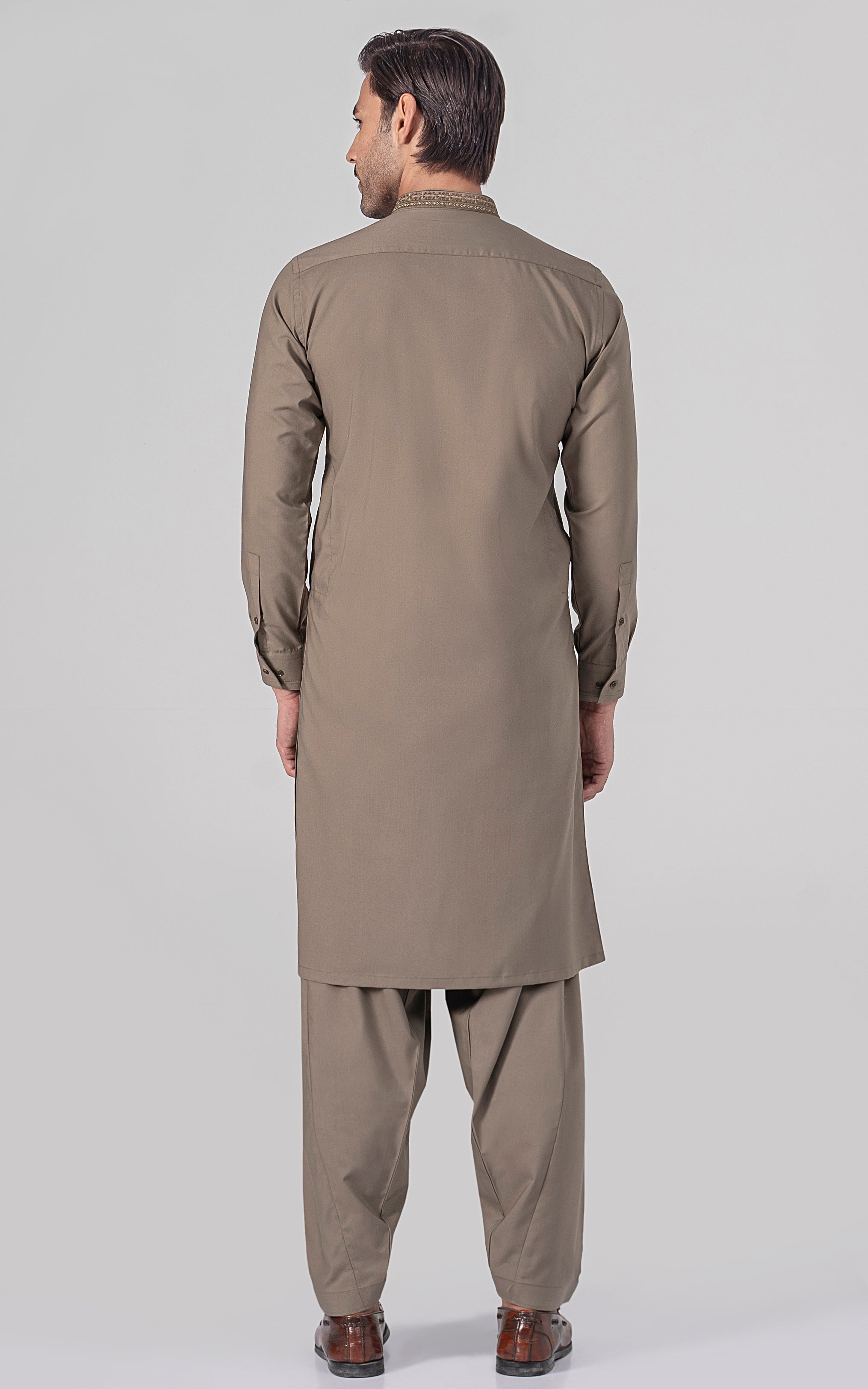 EMBROIDERED WASH & WEAR - PREMIUM COLLECTION DUSKY BROWN