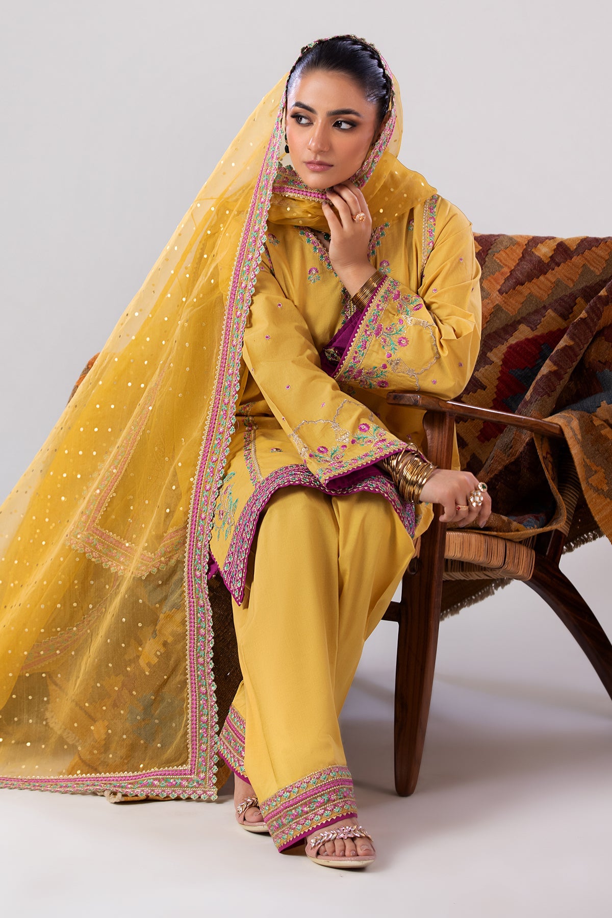 shirt: lawn shirt with embroidered front central pannel,embroidered sleeves, embroidered daman motifs and embroidered front back daman lace. embellished with patch work. finished with stitching detail. trouser: lawn trouser with embroidered trouser lace.finished with stitching detail. dupatta : organza paste printed dupatta with embroidered 4 side dupatta pallu lace." size : s m l measurement length 36" 38" 40" flare/daman width 26" 28" 30"