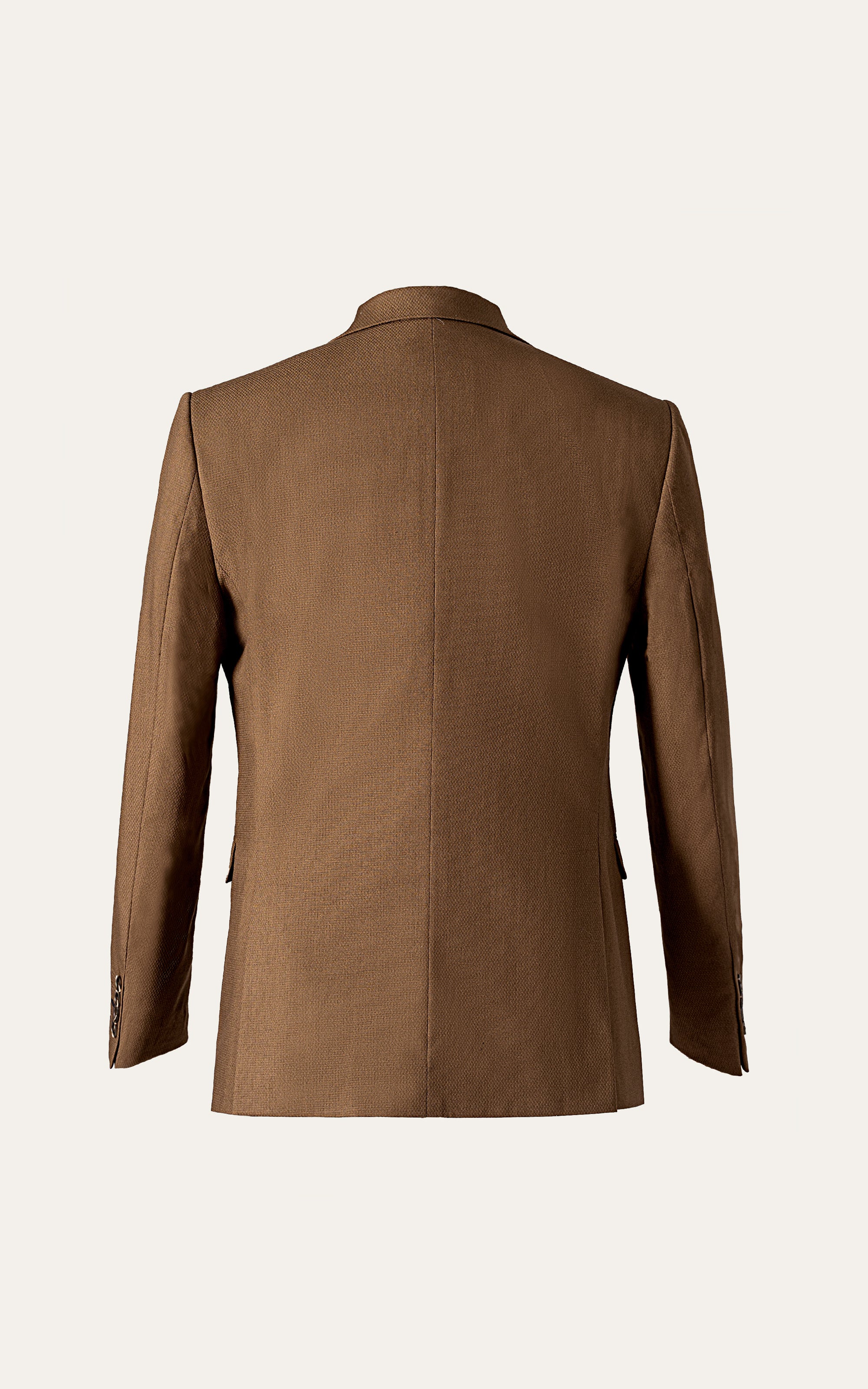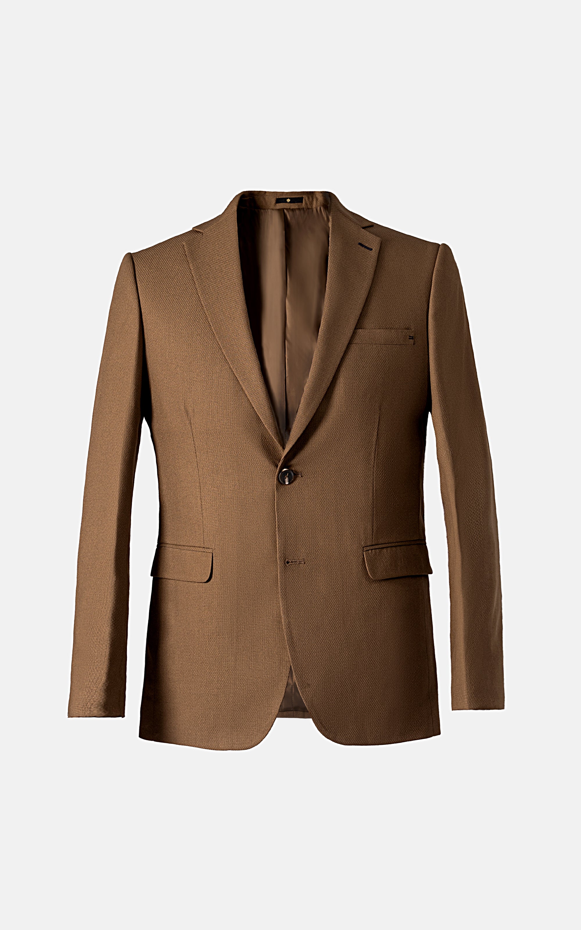 the semi-formal coat features a classic notch lapel that exudes timeless elegance, perfectly complemented by its two side vents that enhance comfort and mobility. designed with practicality in mind, it boasts flap pockets that add a touch of sophistication while providing functional storage. crafted from a tropical textured fabric, the coat not only ensures a lightweight and breathable feel but also presents a subtly textured surface that enhances its visual appeal. whether worn for a business meeting or a special occasion, this impeccably tailored garment effortlessly combines style with versatility, making it a wardrobe essential for the discerning gentleman.