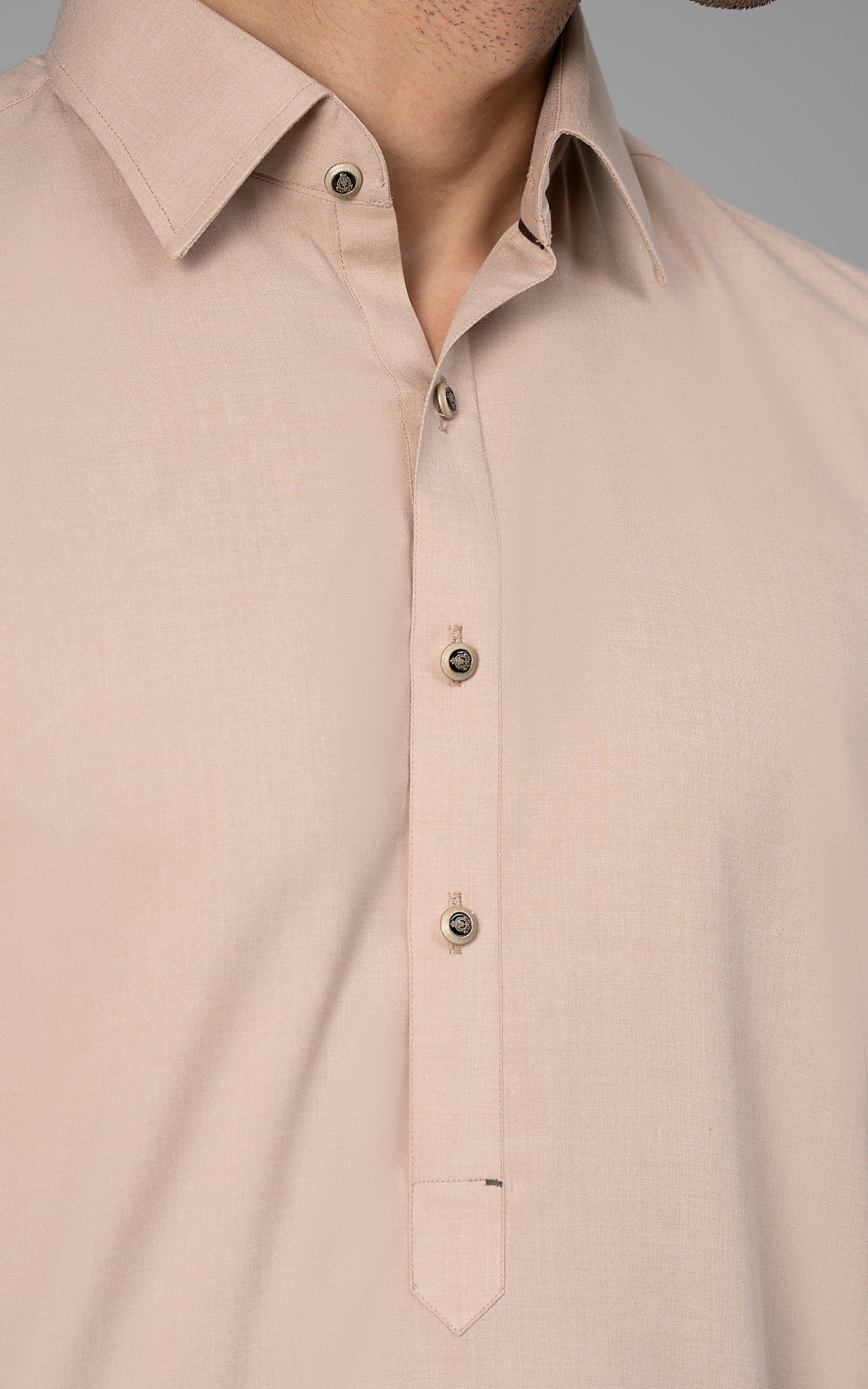 this melange fabric is crafted from a sumptuous blend of viscose and polyester. this fibre dyed cloth is one of the finest fabrics to be manufactured and has elegance and royalty embedded in every fibre. light, dusky medium colors are available in this flawless fabric. regular collar, visible placket, stitching details on front placket, trims on sleeve placket, round cuff, round hem, special buttons, wash & wear