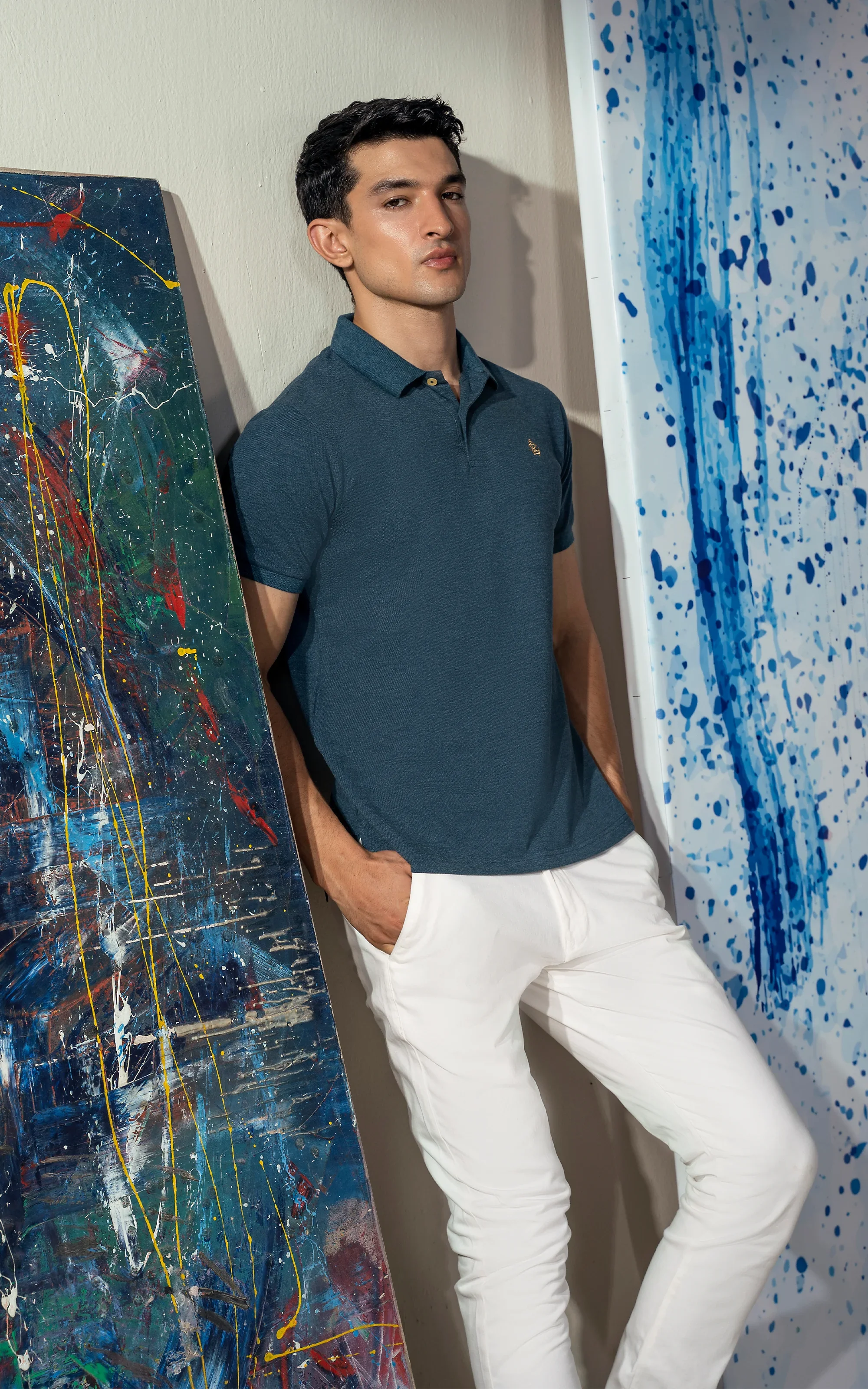 this classic polo shirt is distinguished by its jacquard collar and solid cuffs, which add a touch of sophistication and refinement. the front embroidery lends a personalized detail, featuring a subtle logo or design that enhances its timeless appeal. internally, dyed-to-match tape on the collar band ensures a seamless finish. crafted from pique melange fabric, the shirt offers a soft, breathable feel with the added durability needed for everyday wear. this combination of elegant detailing and comfortable fabric makes the polo versatile for both casual and semi-formal settings, embodying a timeless and stylish addition to any wardrobe.