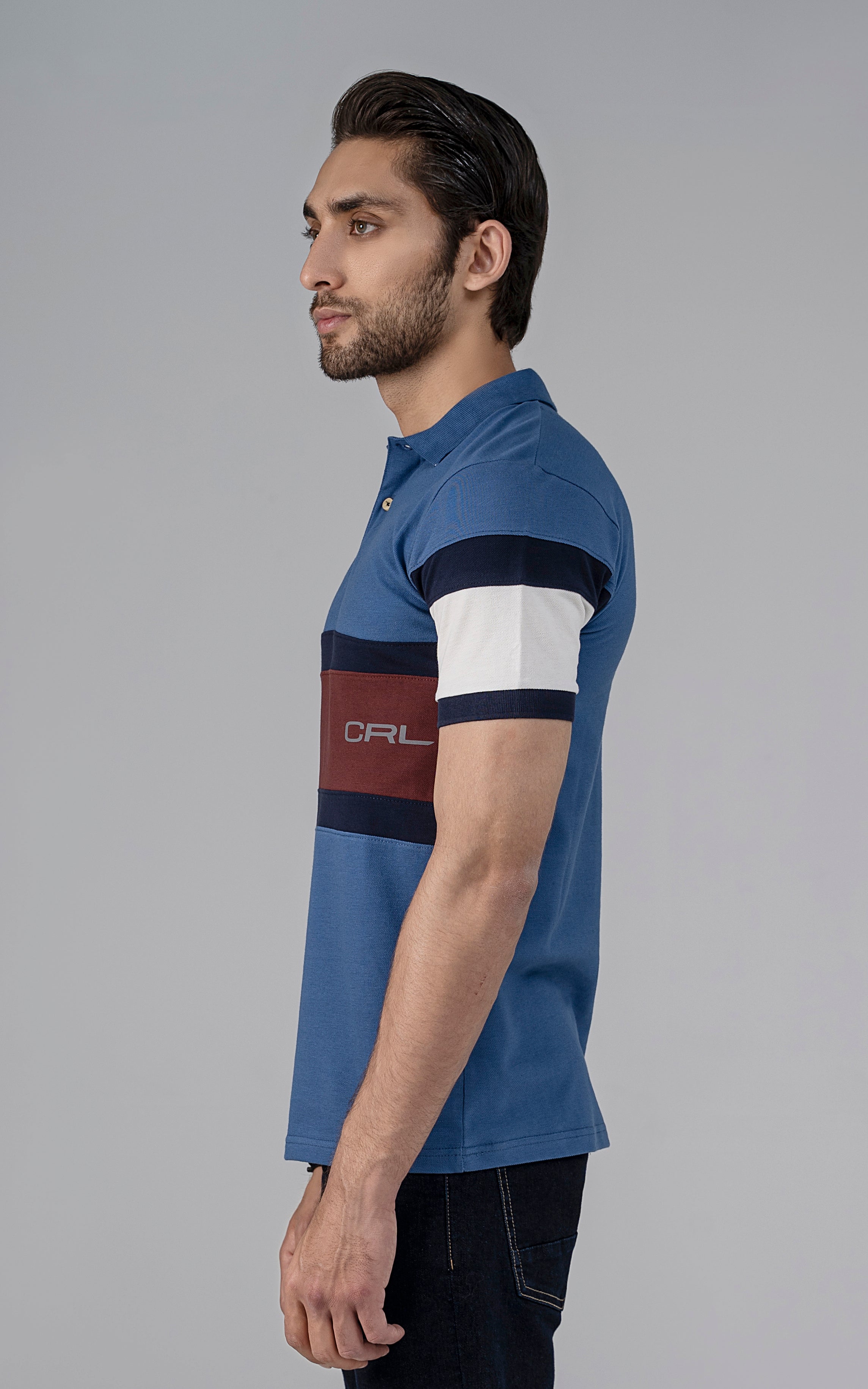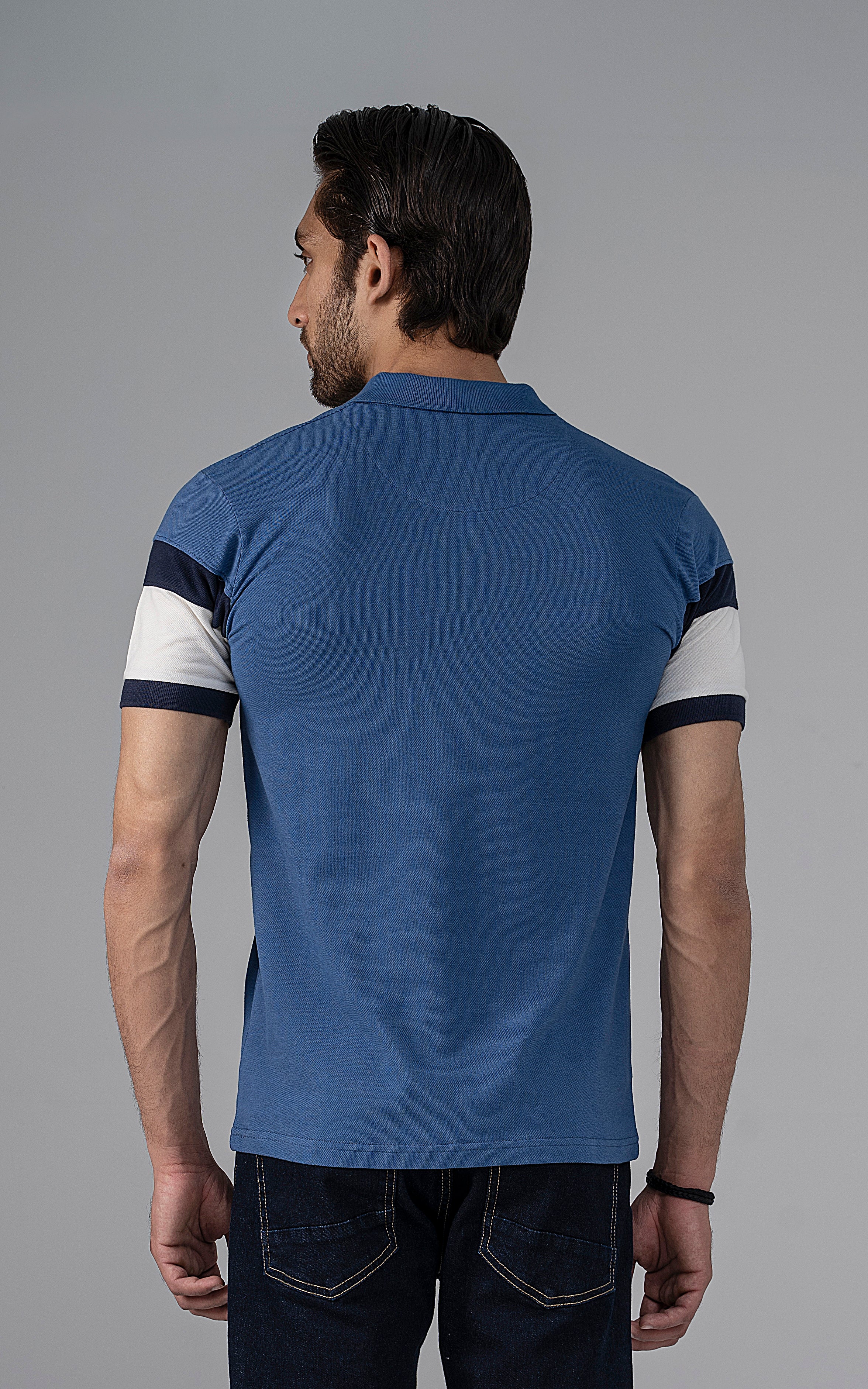 this summer, treat yourself with our fashion polo's featuring a sophisticated solid collar and twill tape detailing on the ban. enhanced with cut and sew panels and exquisite reflected printing, crafted from premium pique fabric. designed with half sleeves for versatility and tailored for a smart fit, it offers both style and convenience with its machine washable design.