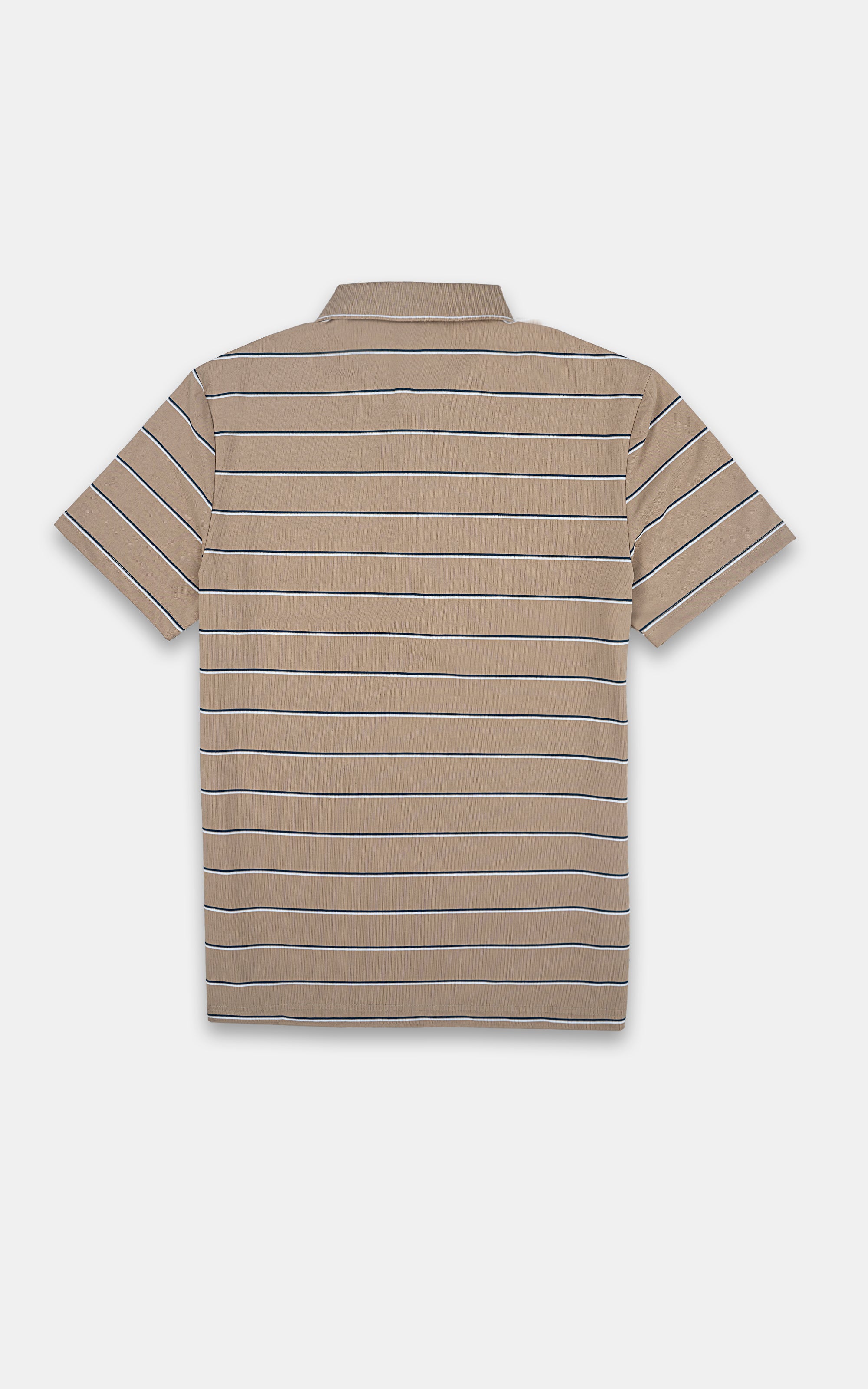 elevate your style with our executive polo, crafted from a luxurious striper yarn dyed cotton-poly blended fabric with a sophisticated ribbed collar with tipping, front charcoal embroidery, three-button closure, and timeless half sleeves. perfectly tailored for a smart fit, it offers effortless elegance and easy care with machine washability.