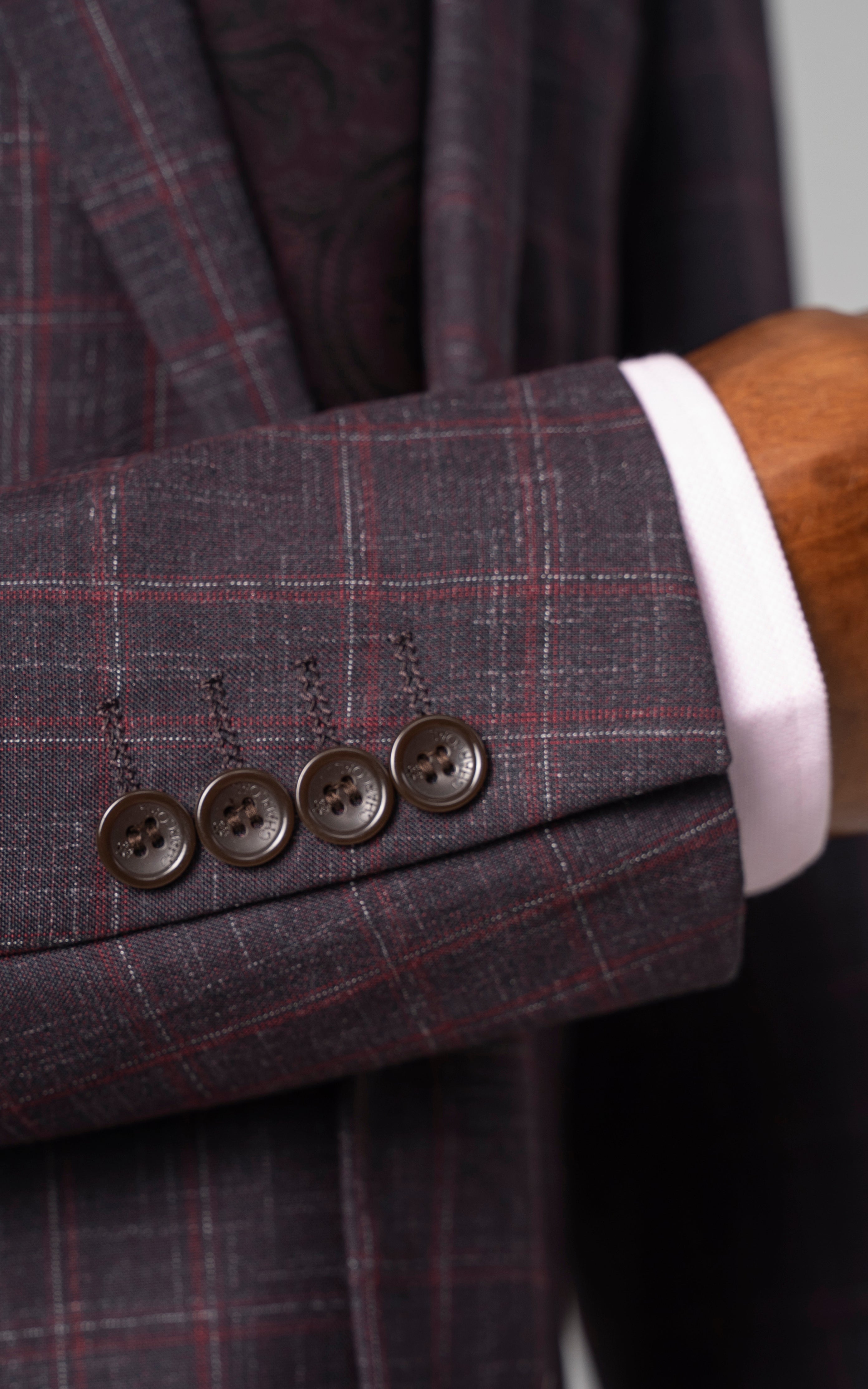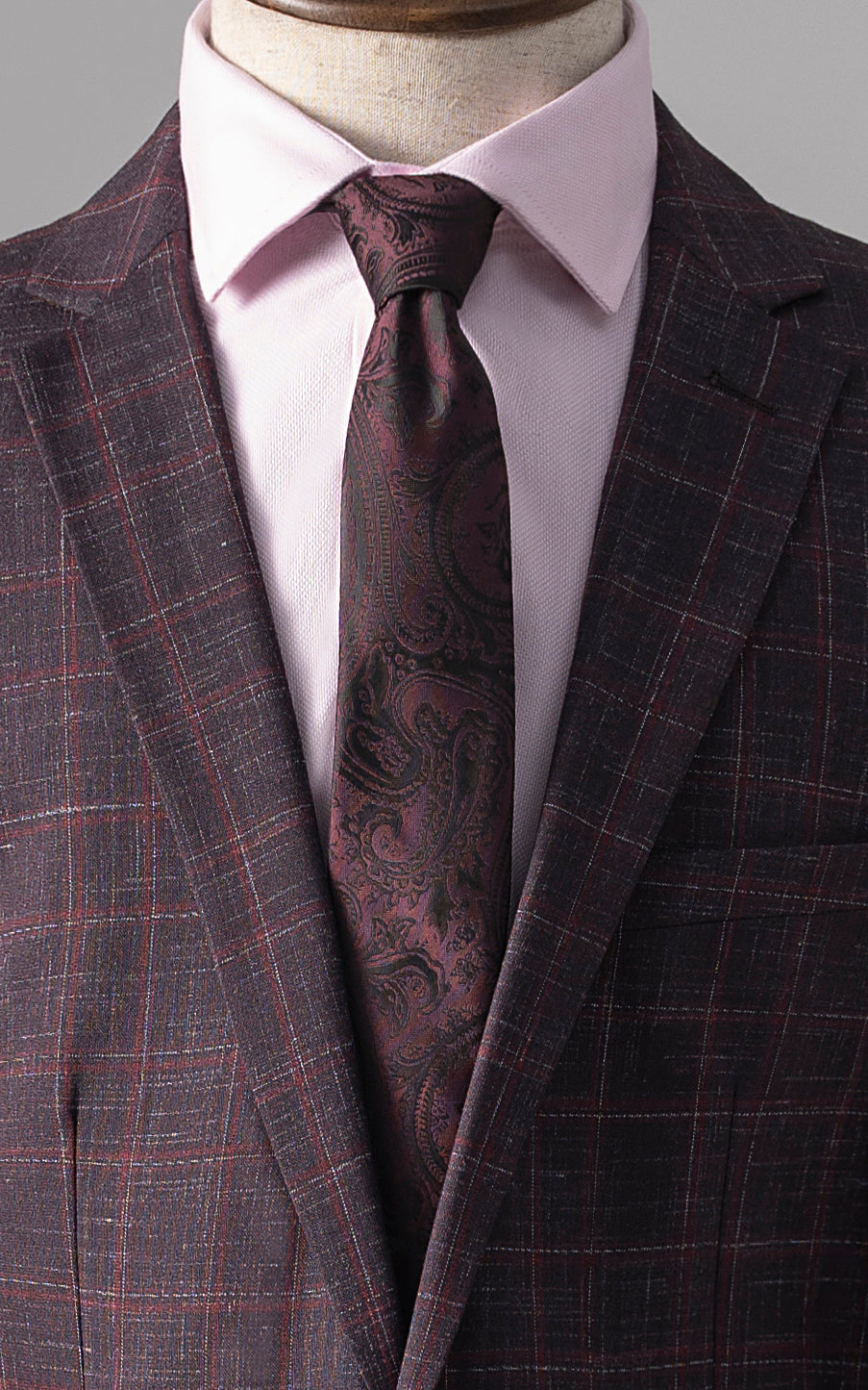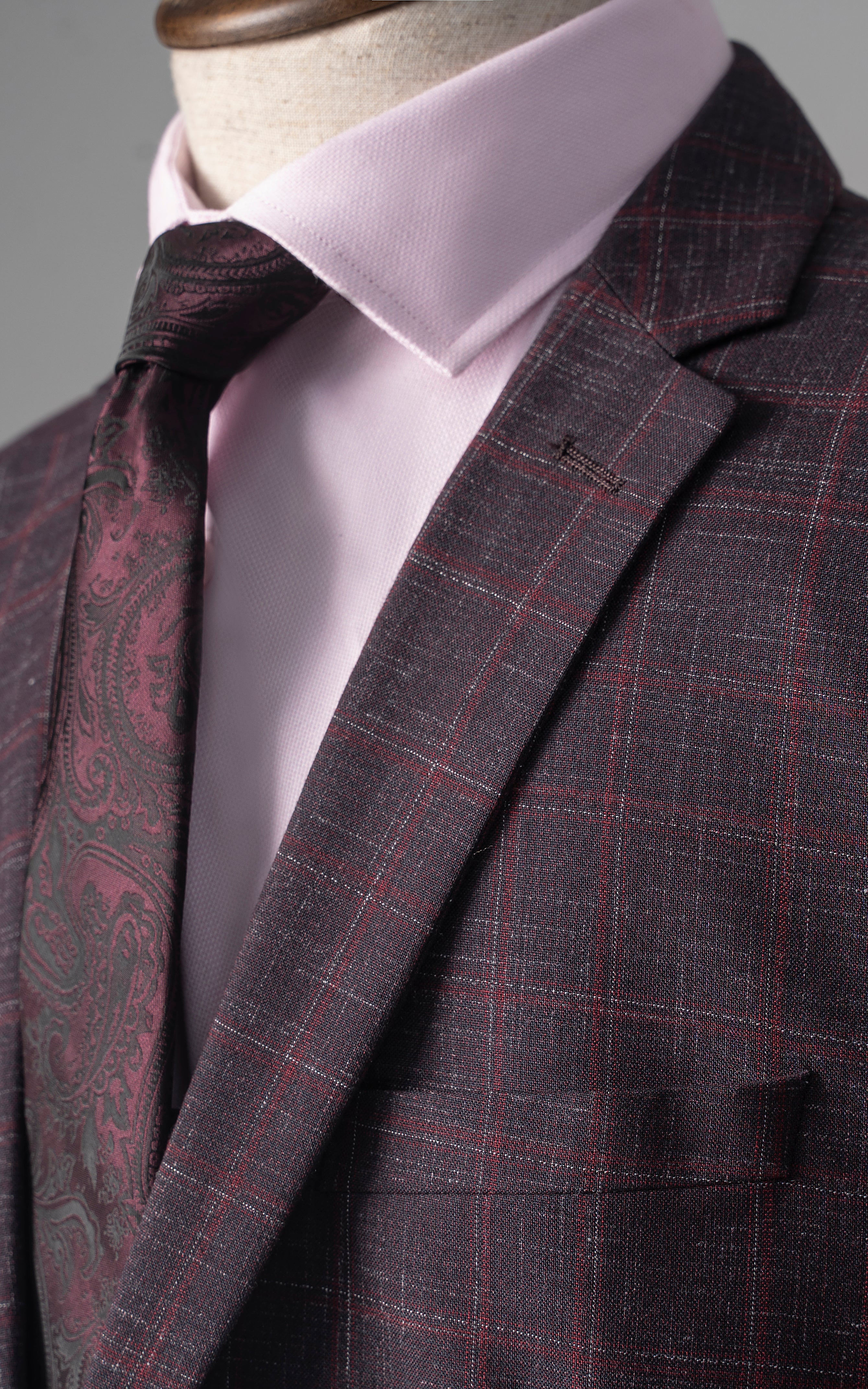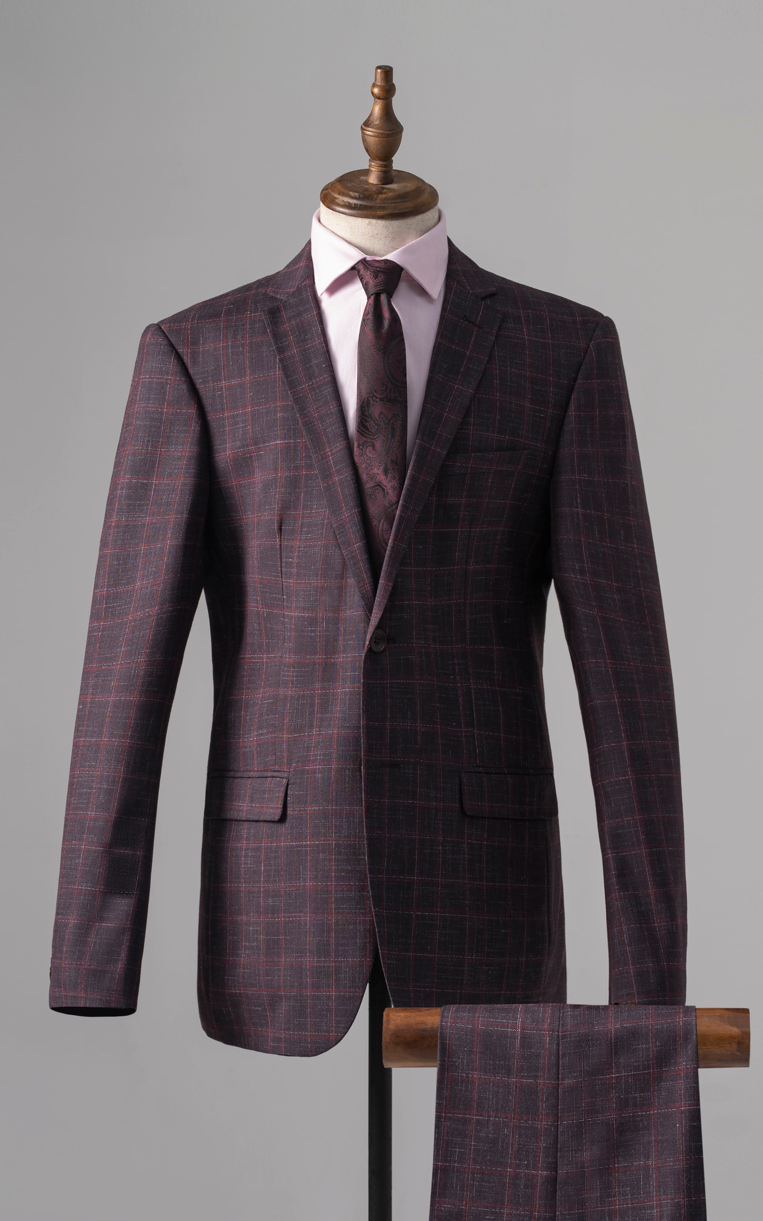this stylish two-piece suit features a notch lapel and a classic two-button closure, creating a sleek and contemporary look. the front flap pockets add a touch of practicality, while the back's two side vents ensure comfort and ease of movement. crafted from a tropical check fabric, it combines visual interest with breathability, making it ideal for all seasons. the slim fit design enhances the suit's modern appeal, providing a sharp, tailored silhouette that complements both formal and semi-formal occasions.