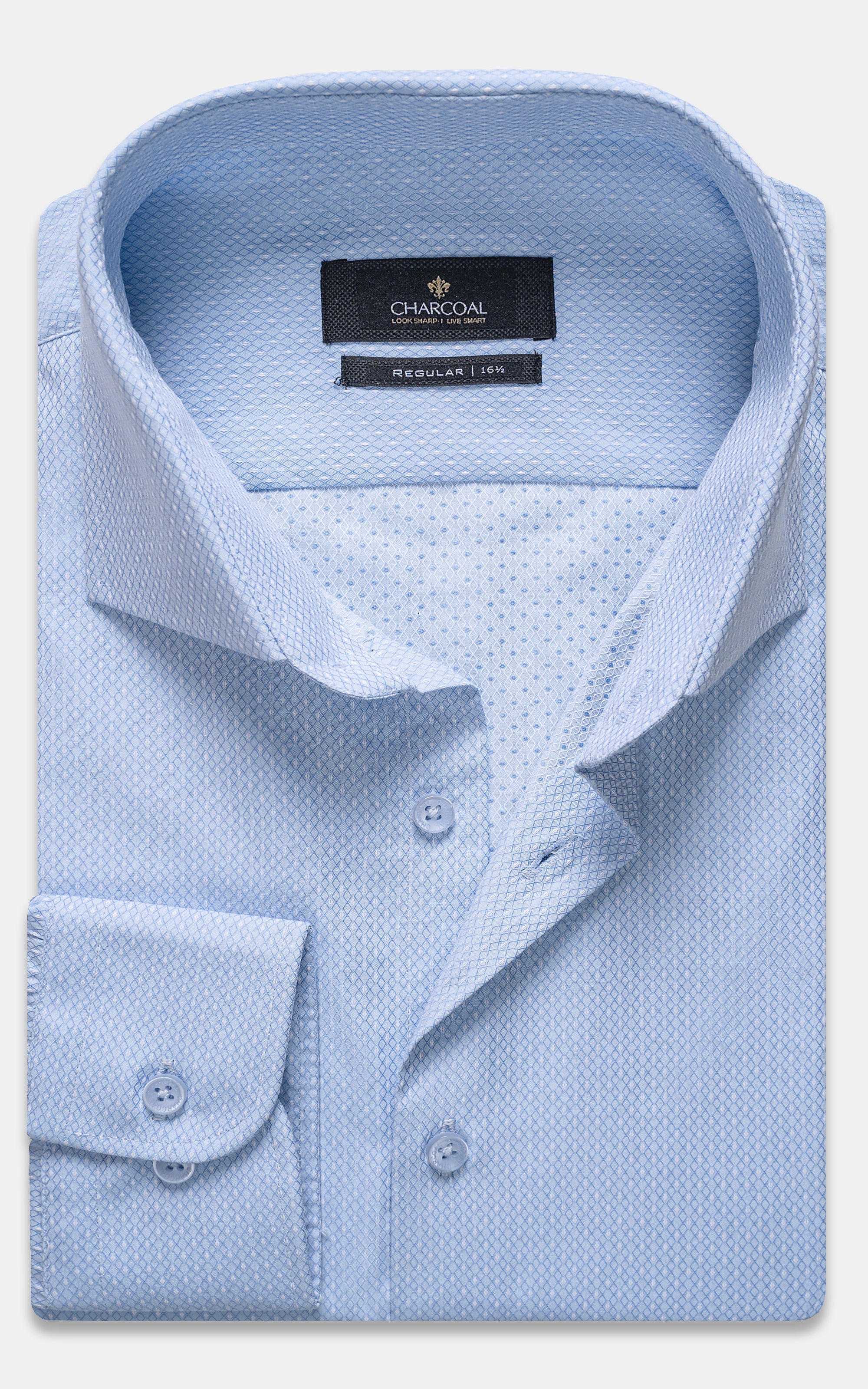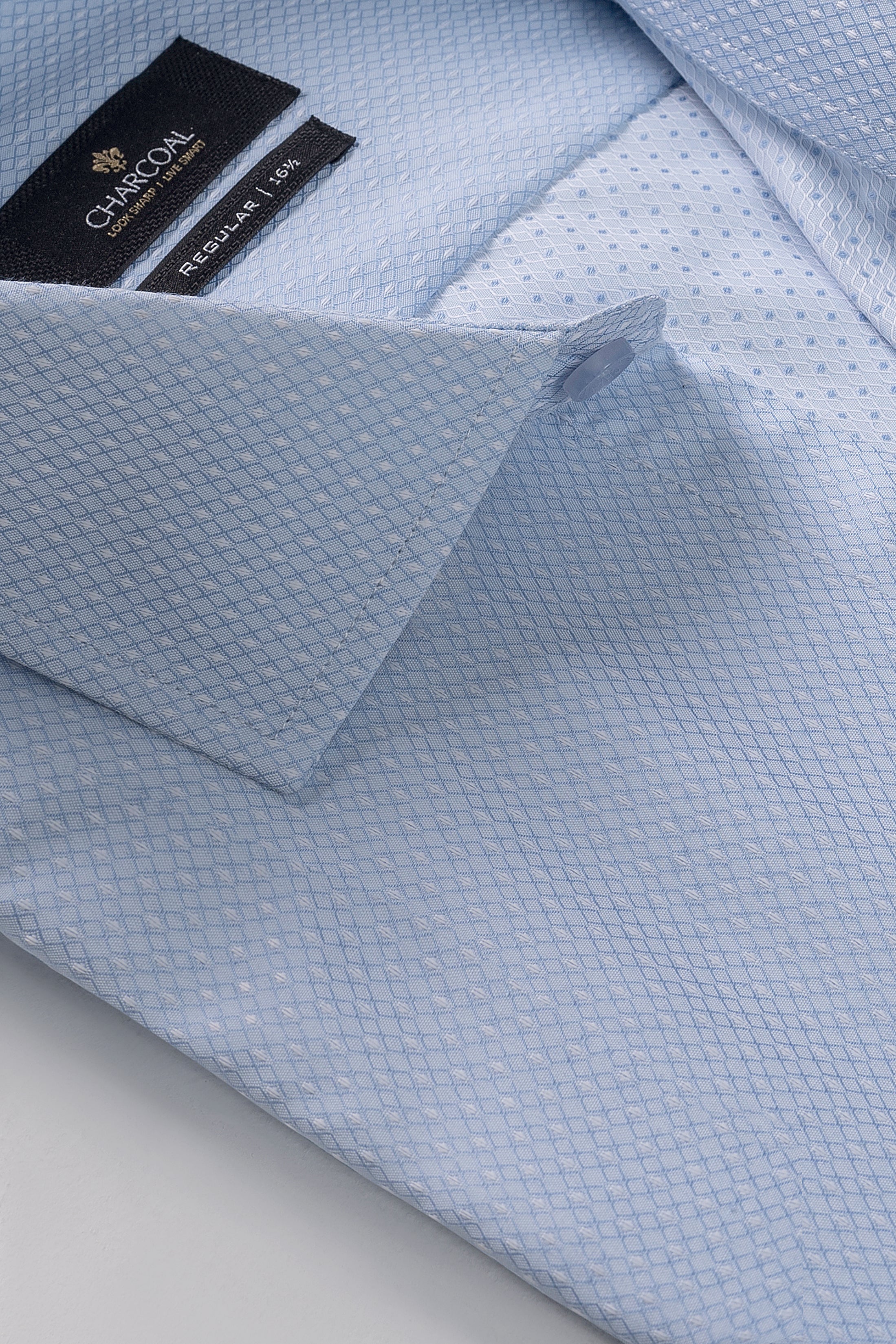 this formal shirt is crafted from a cotton-rich, self fabric that combines softness with a distinctive pattern. it features a classic french collar and cut cuffs, adding a touch of elegance to its design. with full sleeves and a slim fit, this shirt offers a modern, tailored look that ensures both comfort and sophistication in professional attire.