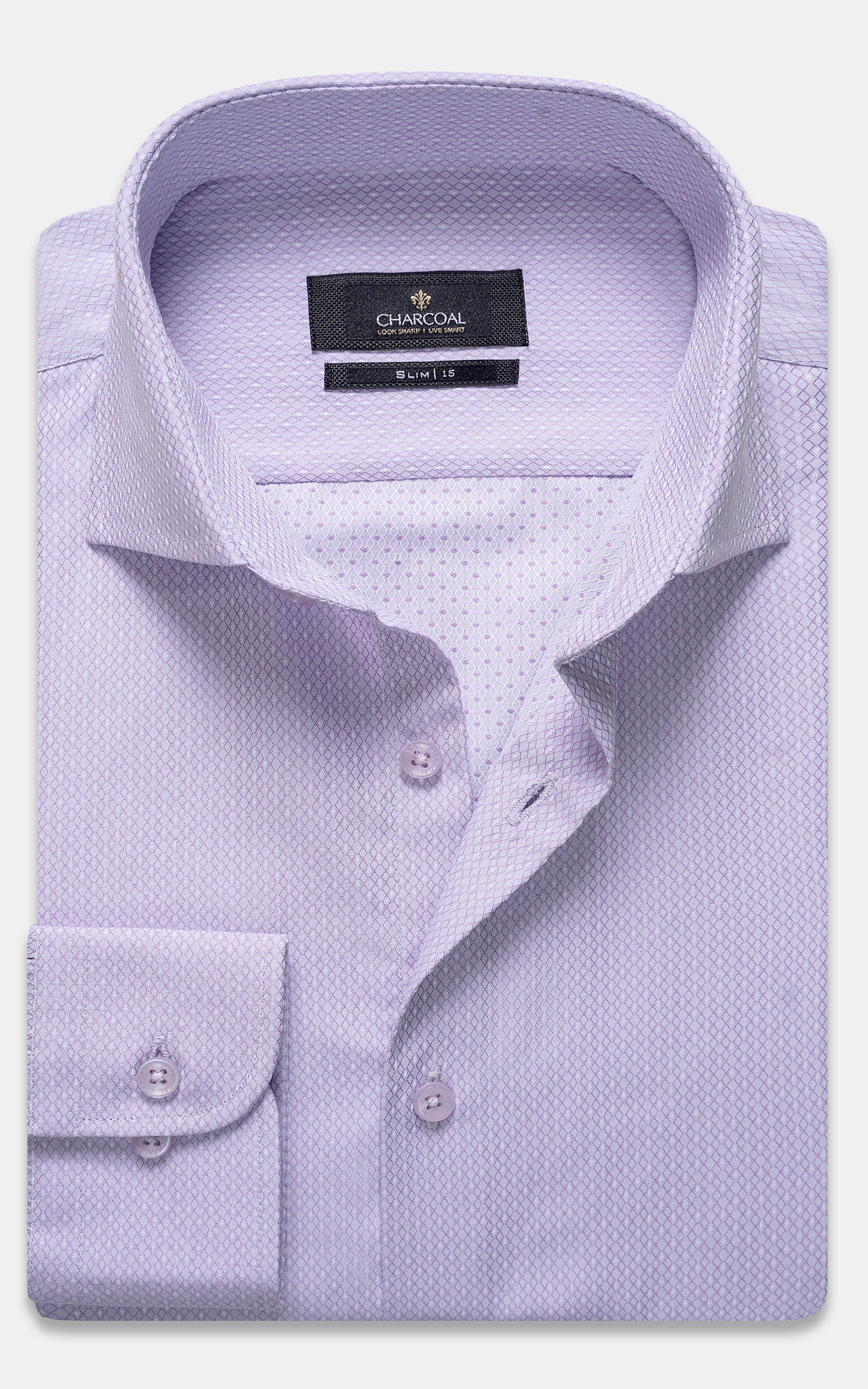 this formal shirt is crafted from a cotton-rich, self fabric that combines softness with a distinctive pattern. it features a classic french collar and cut cuffs, adding a touch of elegance to its design. with full sleeves and a slim fit, this shirt offers a modern, tailored look that ensures both comfort and sophistication in professional attire.