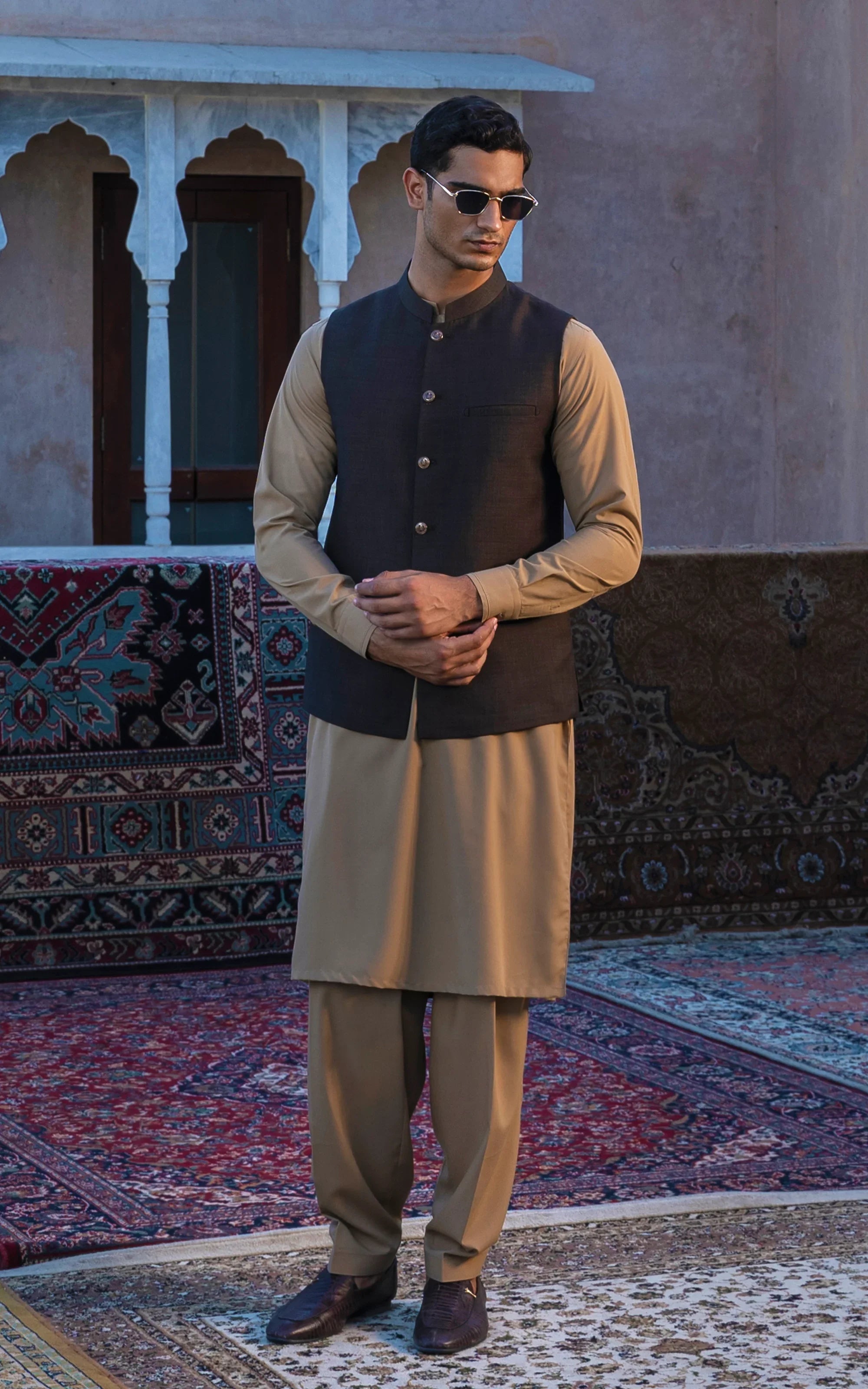 this yarn dyed blended waistcoat is the fresh insertion to our signature collection. experience the unparalleled softness and alluring aesthetics that set this article apart as the ultimate choice for refined elegance. this collection offers a wide-range of colors to choose from. mandarin ban upper front single bone pocket single bone pockets on front with bar-tack details visible placket special buttons full contrast lining inside straight hem tropical waistcoat