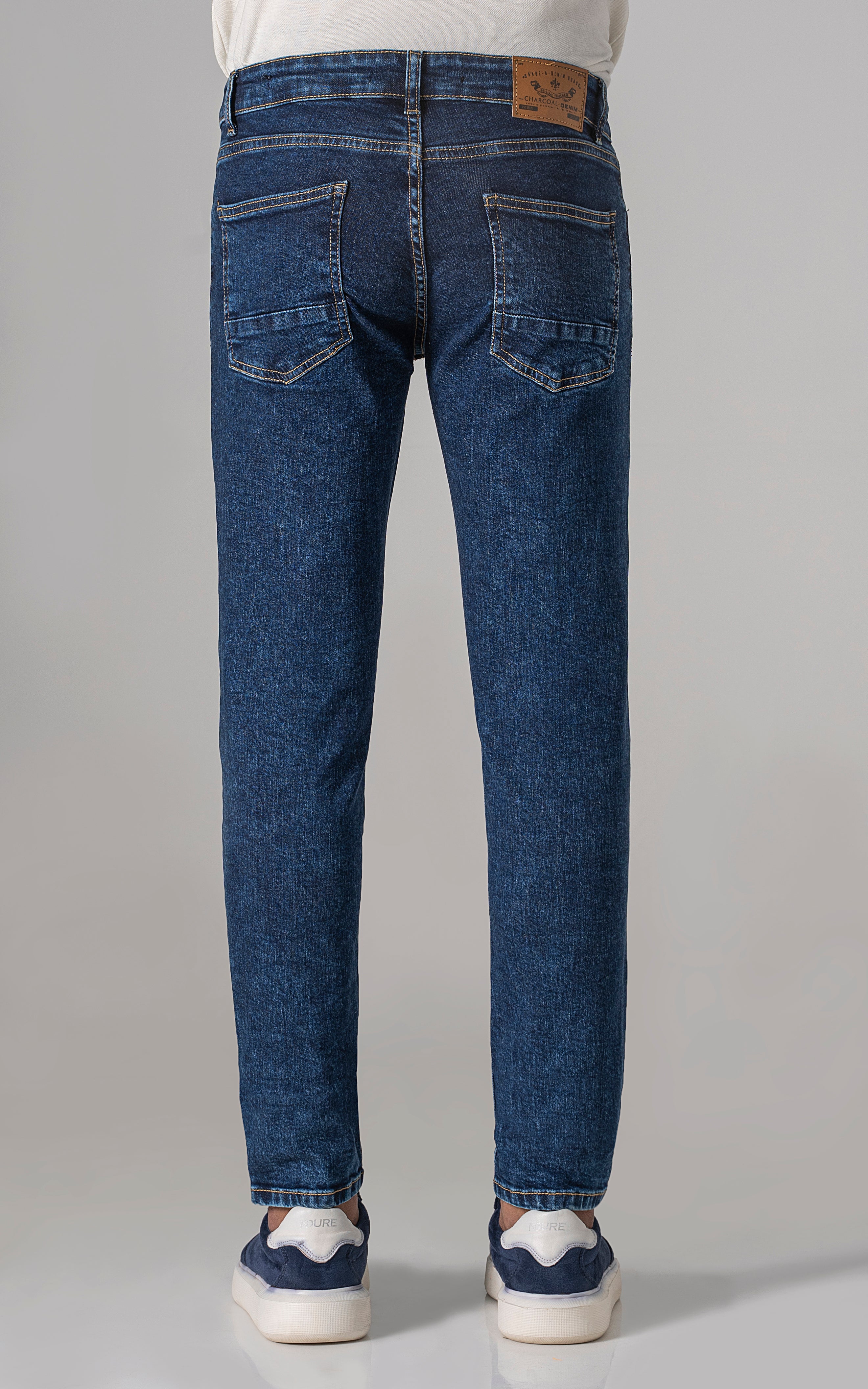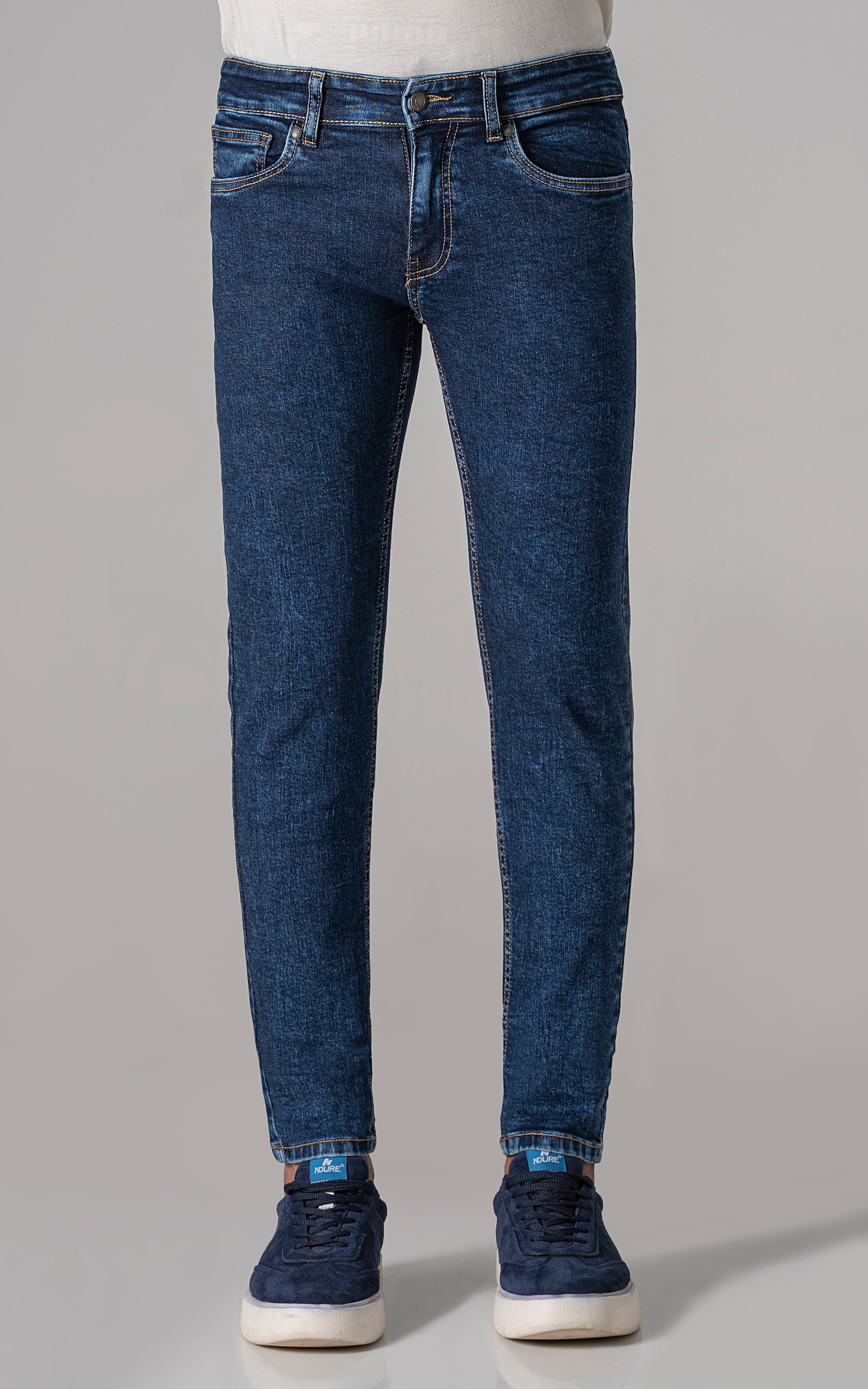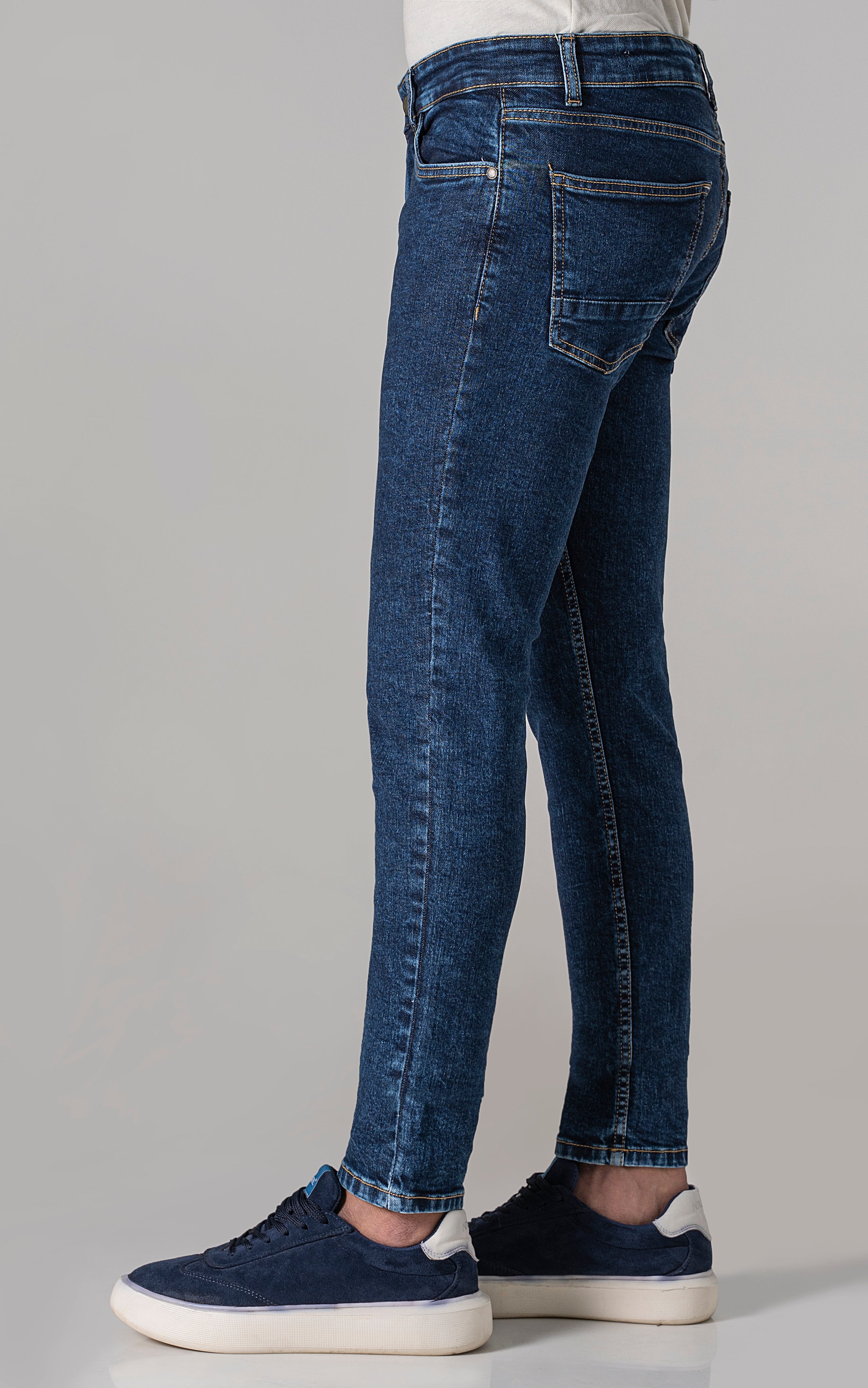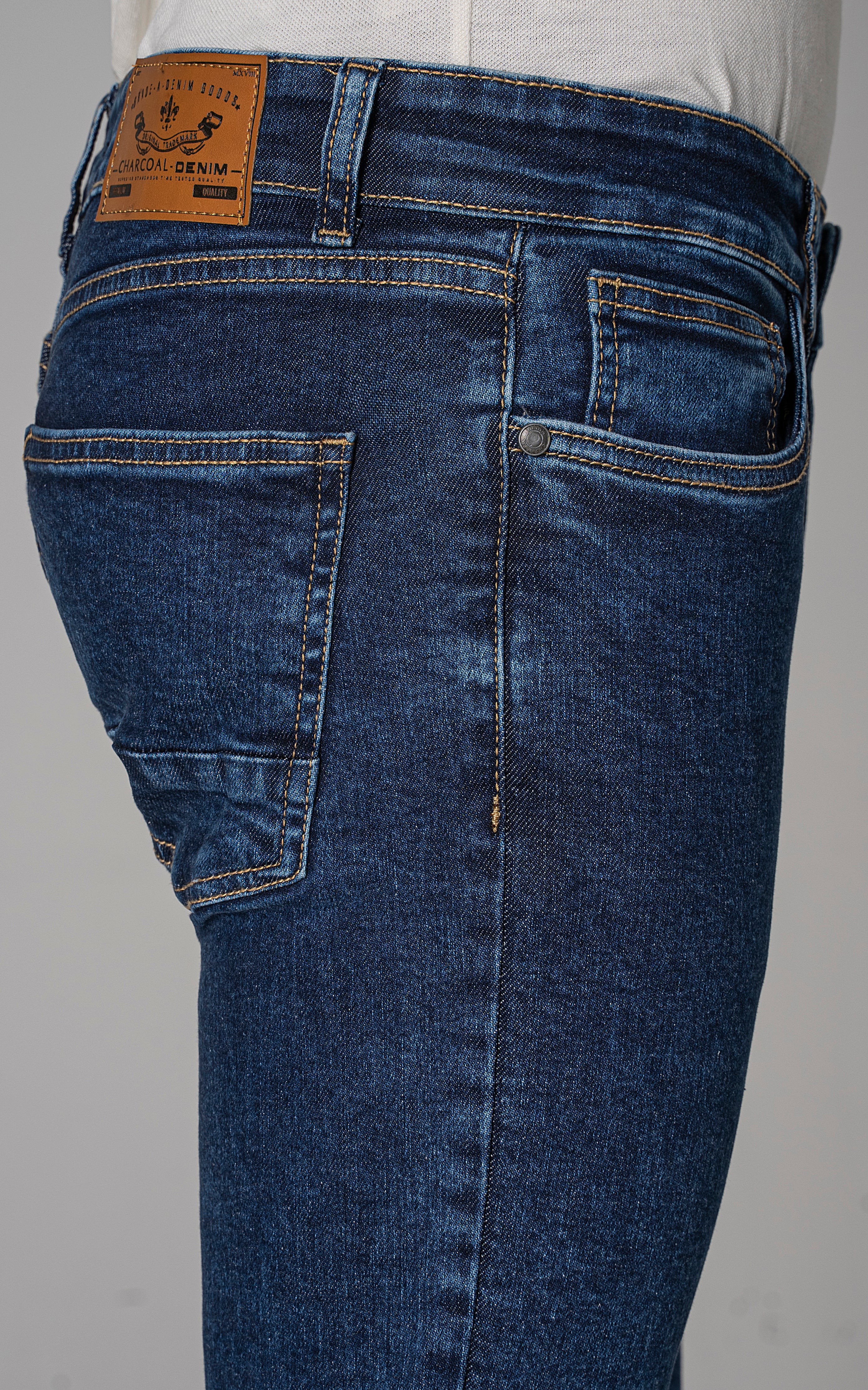 slim leg dark blue stone washed jeans, a modern take on a timeless classic. crafted from comfort stretch denim fabric, these jeans offer both style and flexibility for all-day comfort. with a dark blue stone washed finish and classic denim styling, they exude effortless charm and versatility. elevate your wardrobe with these essential jeans, perfect for any casual or semi-casual occasion.