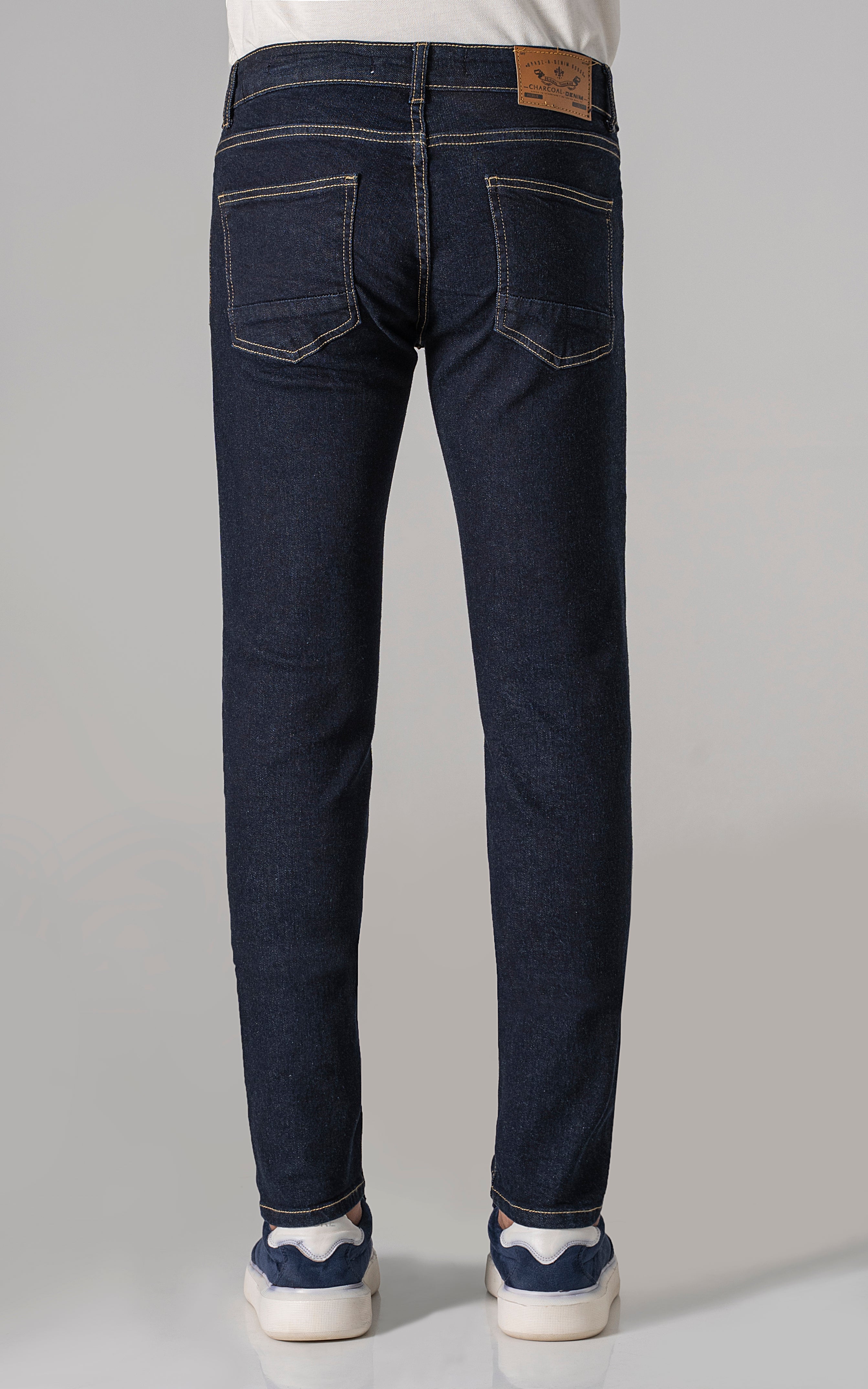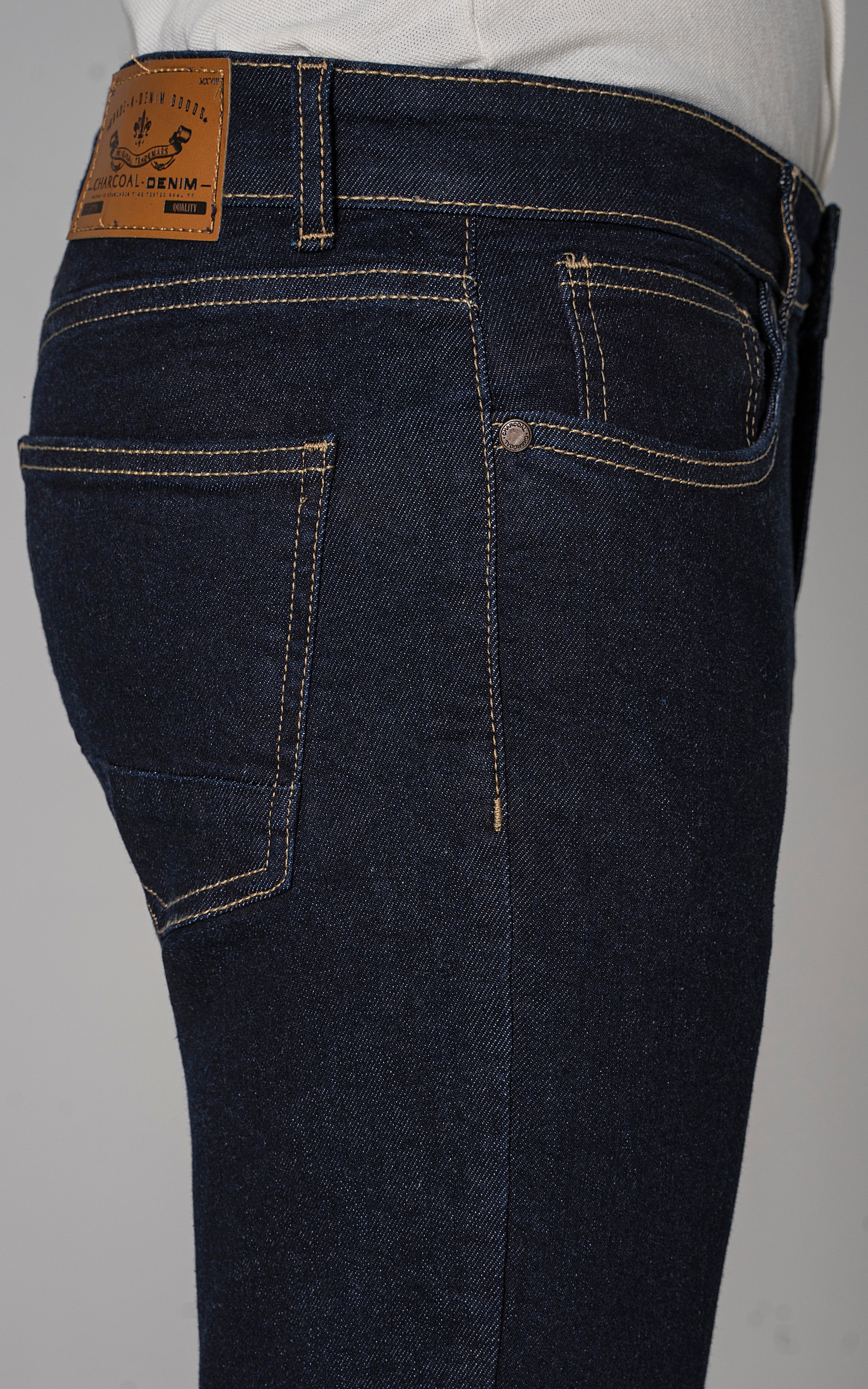 slim leg dark blue rinse washed jeans, a modern take on a timeless classic. crafted from comfort stretch denim fabric, these jeans offer both style and flexibility for all-day comfort. with a dark blue rinse washed finish and classic denim styling, they exude effortless charm and versatility. elevate your wardrobe with these essential jeans, perfect for any casual or semi-casual occasion.