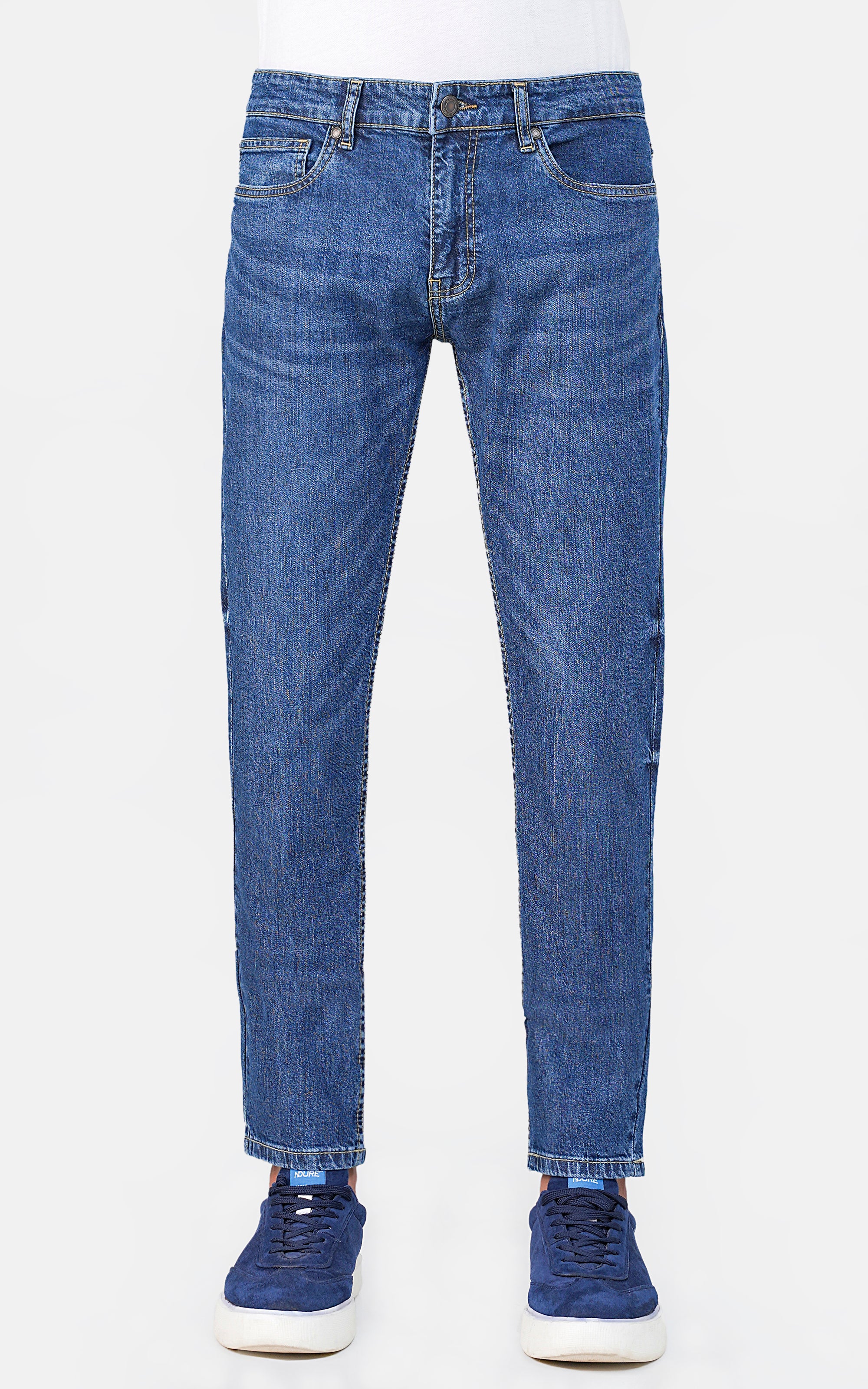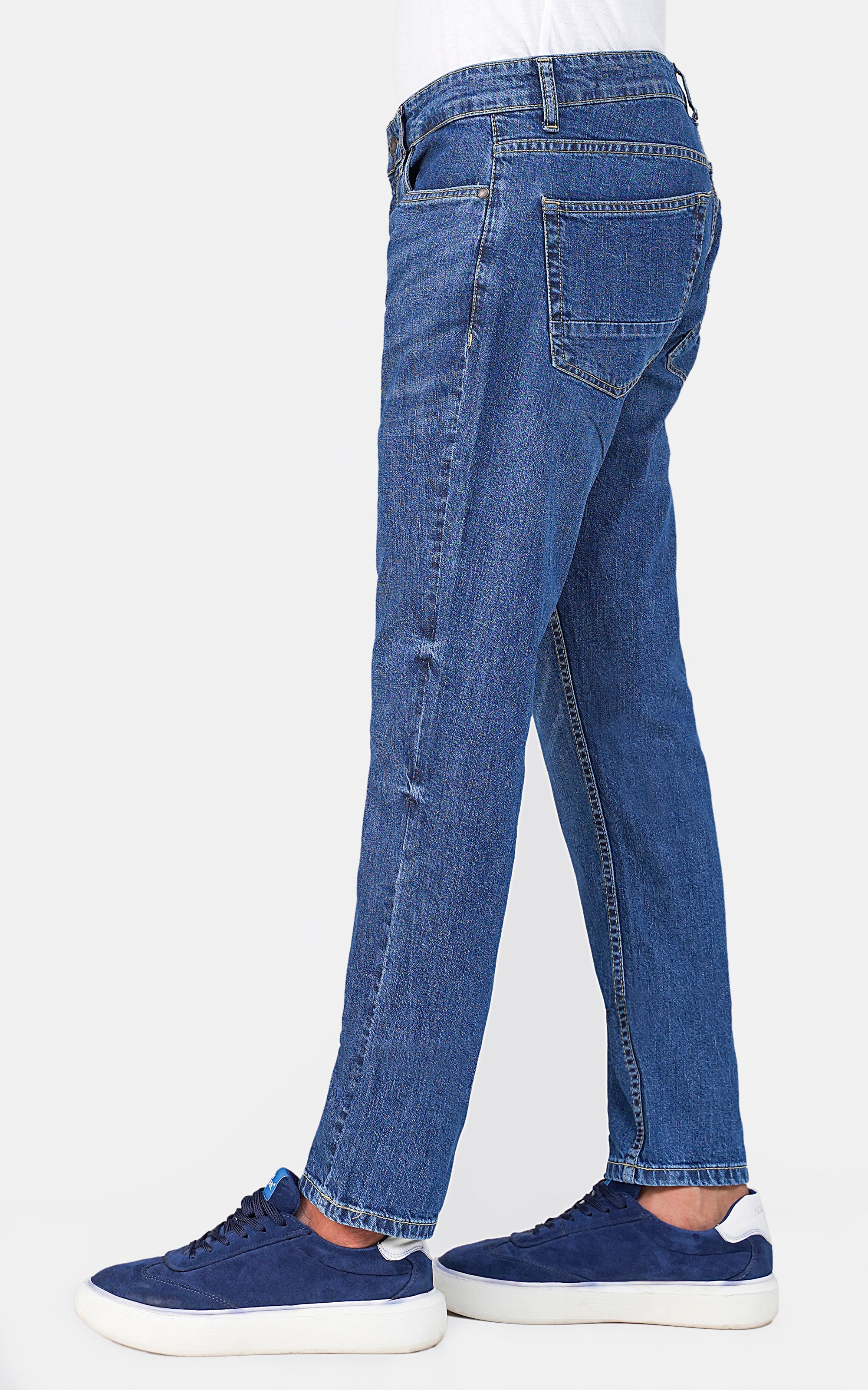 our essential stretch jeans in mid blue stone wash have an authentic look and feel. made from a cotton-rich denim with stretch for added comfort, featuring traditional five pocket styling, rivets for extra durability, and with plenty of pockets to hold your essentials. sustainable cotton stretch fabric 98% cotton 2% elastane