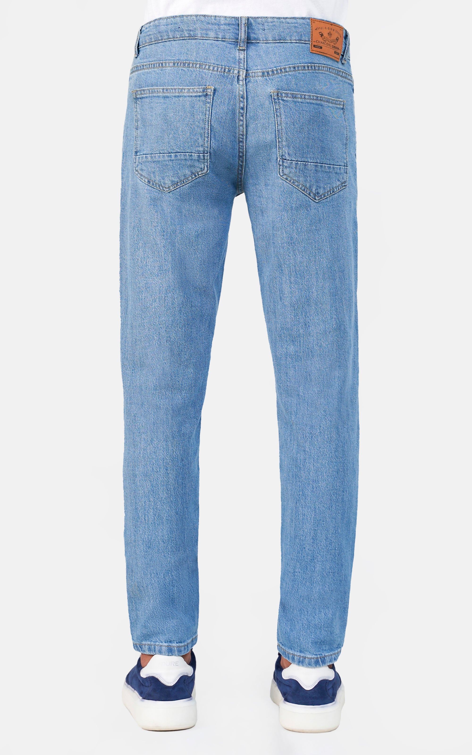 our essential stretch jeans in light blue stone wash have an authentic look and feel. made from a cotton-rich denim with stretch for added comfort, featuring traditional five pocket styling, rivets for extra durability, and with plenty of pockets to hold your essentials. sustainable cotton stretch fabric 98% cotton 2% elastane