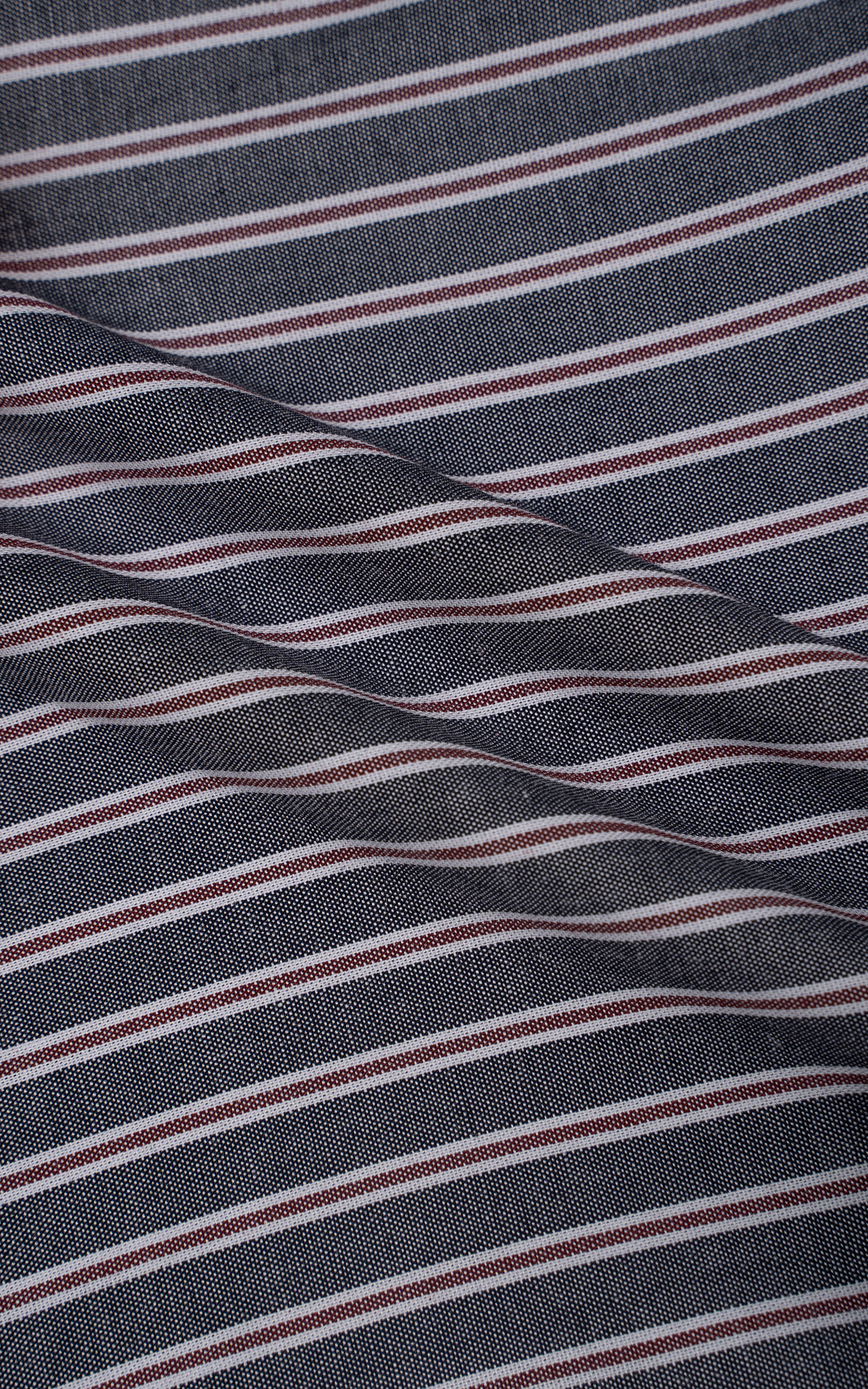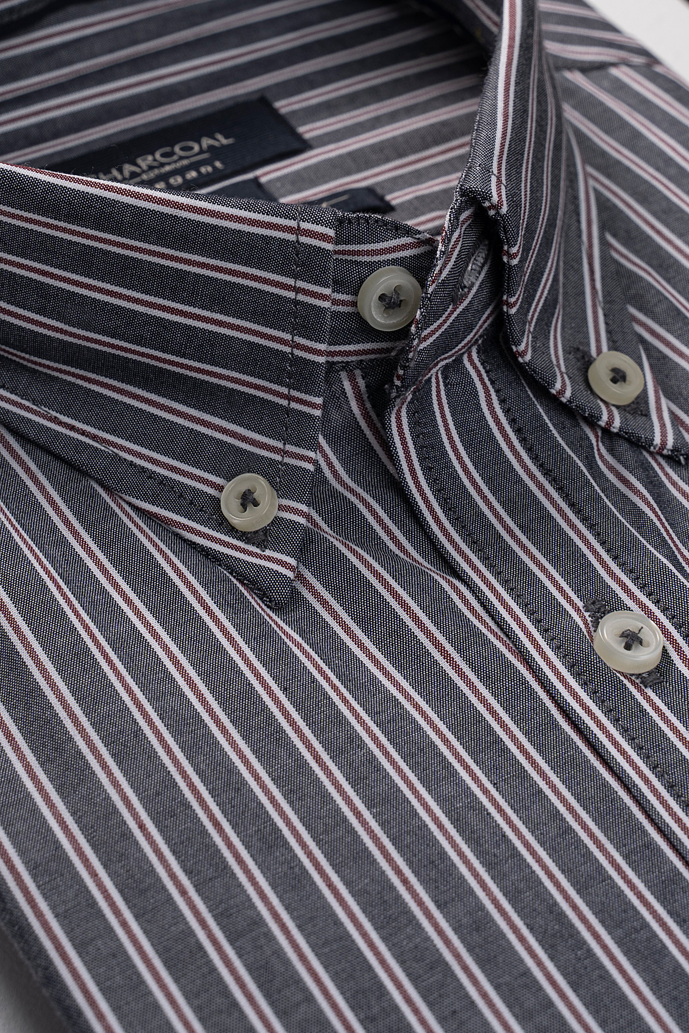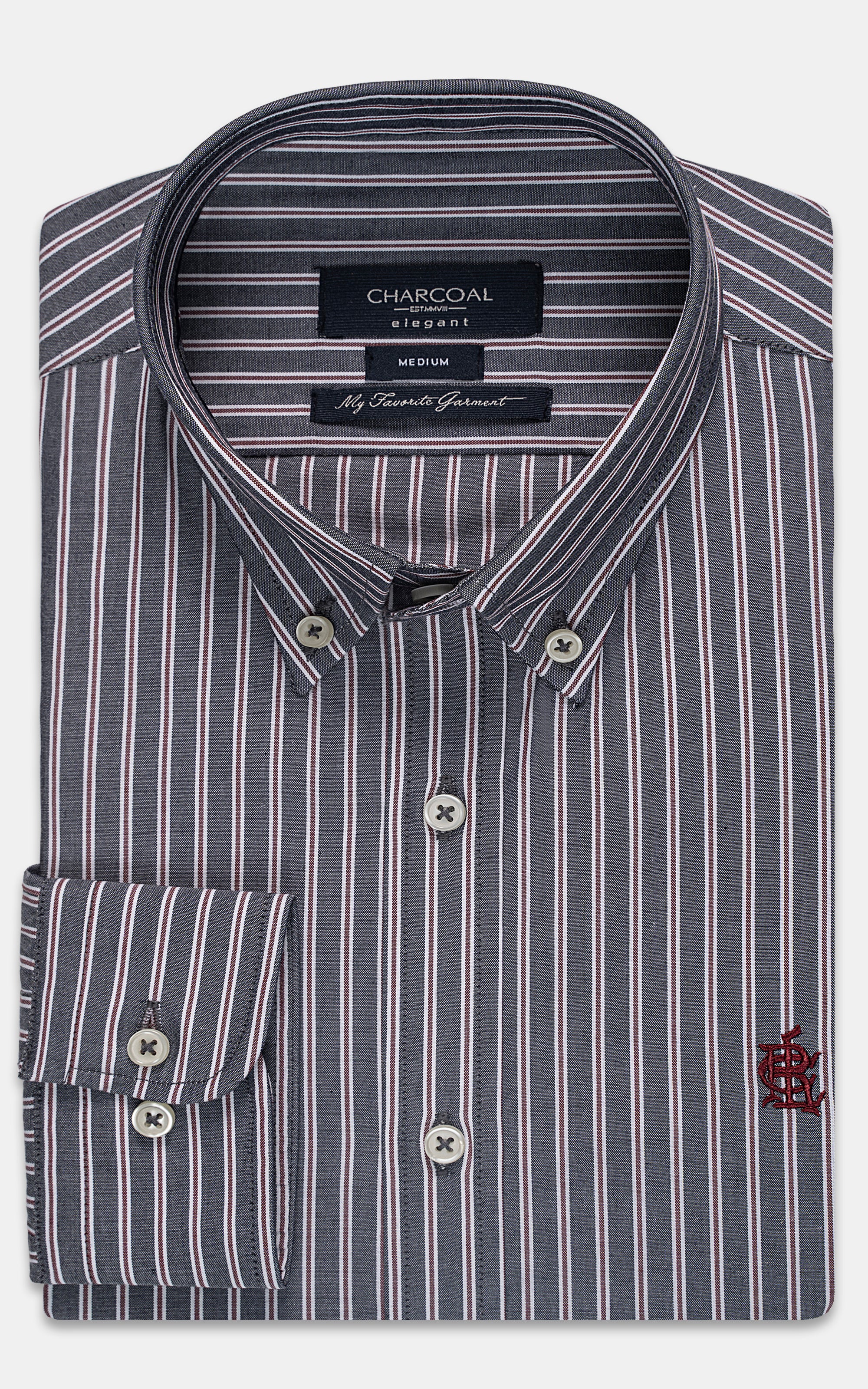 this shirt epitomizes refined elegance with a touch of modern flair. its button-down collar, complemented by piping inside the ban, exudes a polished yet understated sophistication. the piping along the edge of the button placket adds a subtle contrast, enhancing its visual appeal. a front embroidery detail adds a personalized touch, elevating its overall charm. crafted from a cotton-rich stripe fabric, it offers both comfort and style, perfect for any occasion. complete with full sleeves, it provides versatility and coverage, while its machine washable feature ensures easy maintenance, making it a versatile and indispensable addition to any wardrobe.