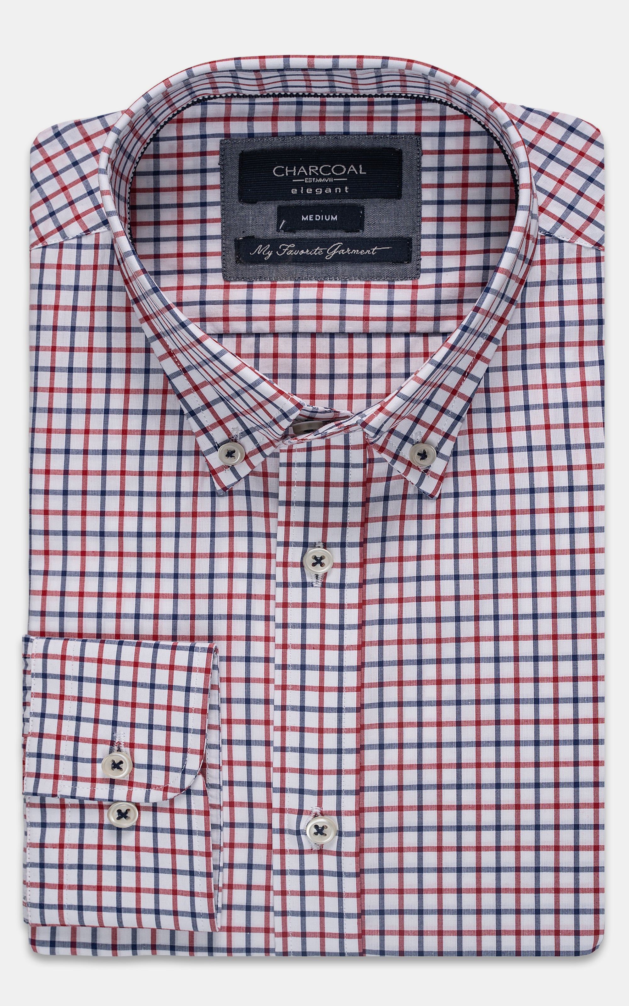 this shirt exudes a blend of timeless style and practicality. its button-down collar, adorned with twill tape inside the ban, ensures a crisp and structured look while offering durability. the contrast button placket adds a subtle yet distinctive touch, elevating its visual appeal. with round cuffs lending a touch of sophistication, the cotton-rich check fabric brings comfort and breathability, ideal for all-day wear. featuring full sleeves, it provides versatility for various occasions, whether formal or casual. its machine washable nature underscores convenience, making it a wardrobe staple that seamlessly balances style and ease of care.
