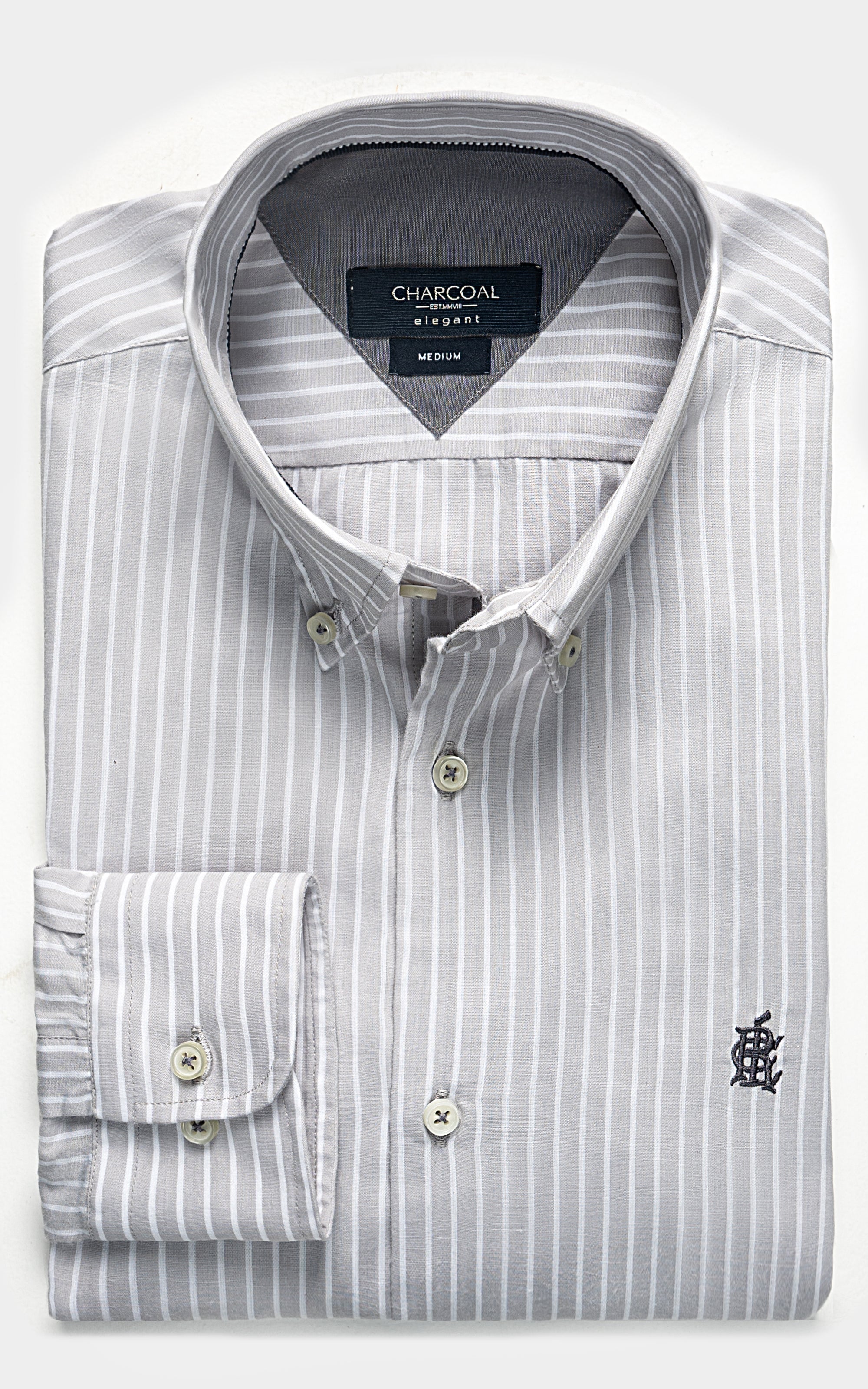 introducing our classic button down collar shirt, tailored for timeless sophistication and comfort. crafted from premium cotton-rich stripe fabric, it offers both durability and style. designed with front embroidery, round cuffs, buttoned fastening, and full sleeves, this shirt ensures a polished look for any occasion. plus, its machine washable feature adds convenience to your everyday wardrobe essentials.