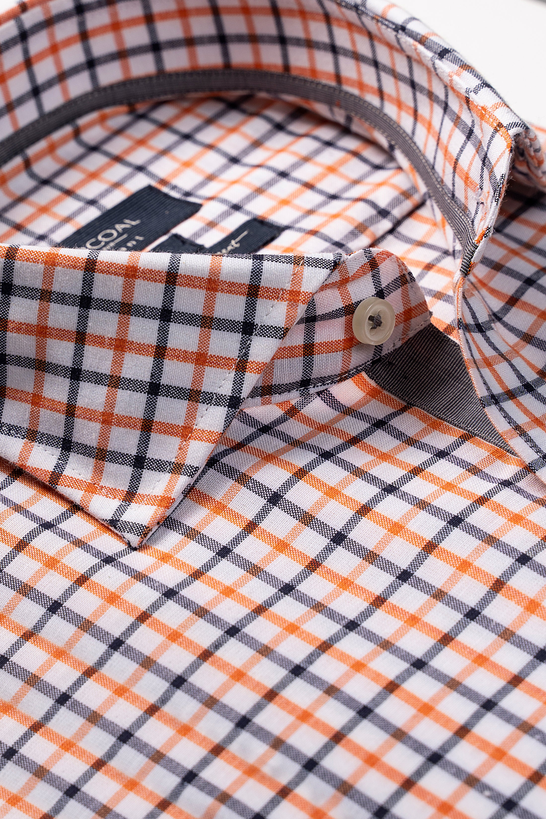 introducing our elegant french collar shirt, exuding sophistication with contrasting piping on the ban and button placket. crafted from premium cotton-rich check fabric, it offers both comfort and style. featuring round cuffs, buttoned fastening, and full sleeves for a polished look. plus, its machine washable design ensures effortless maintenance.
