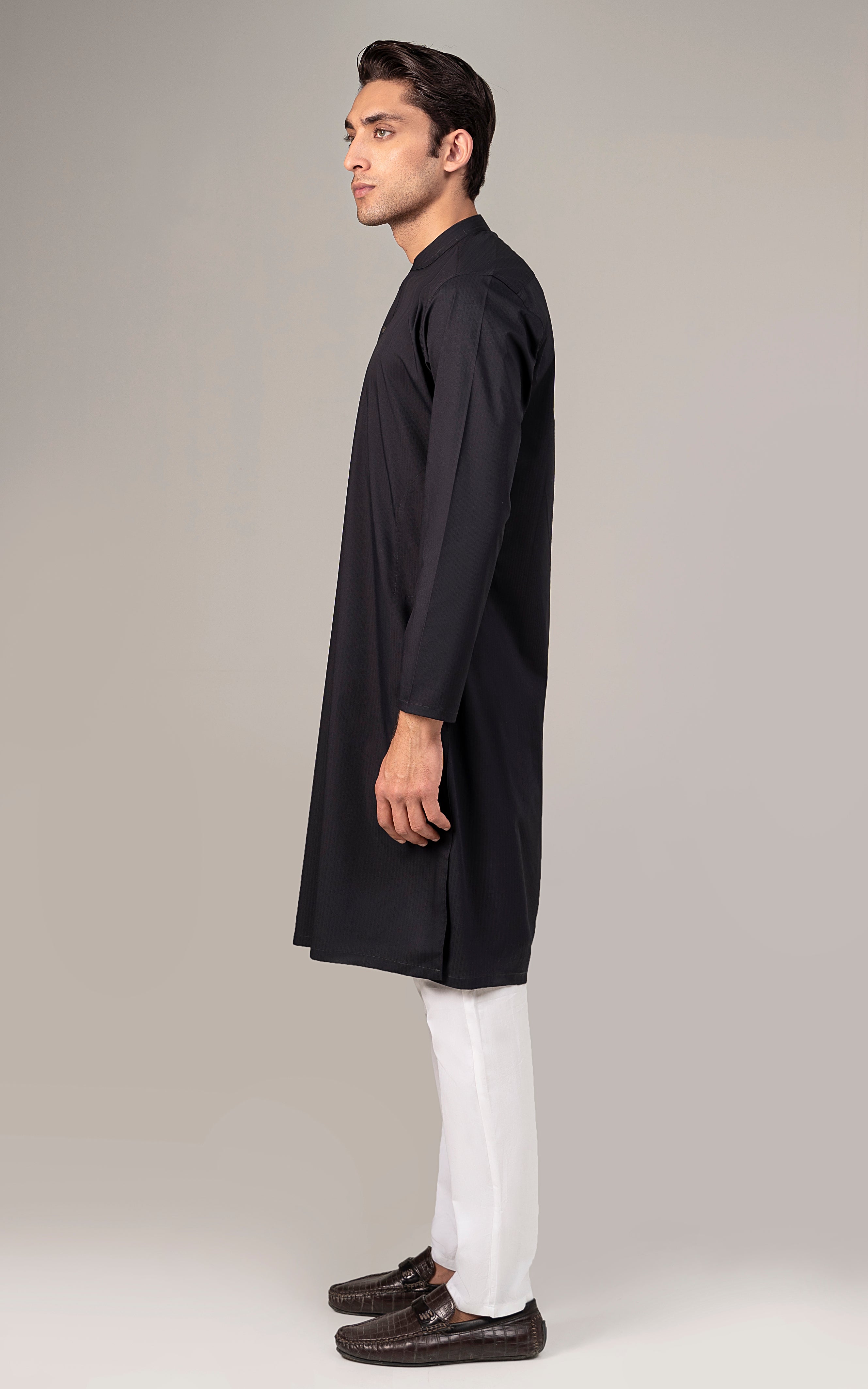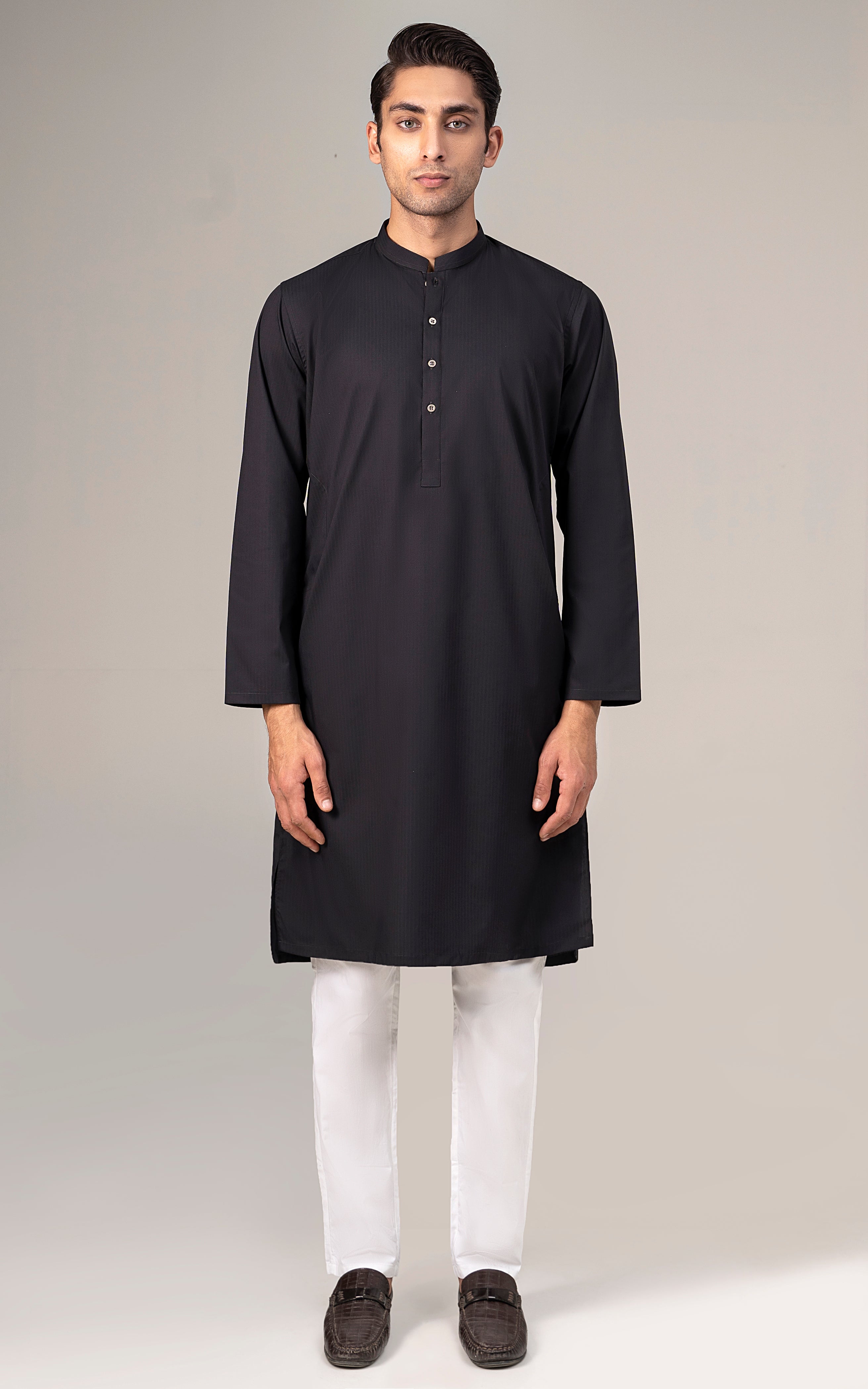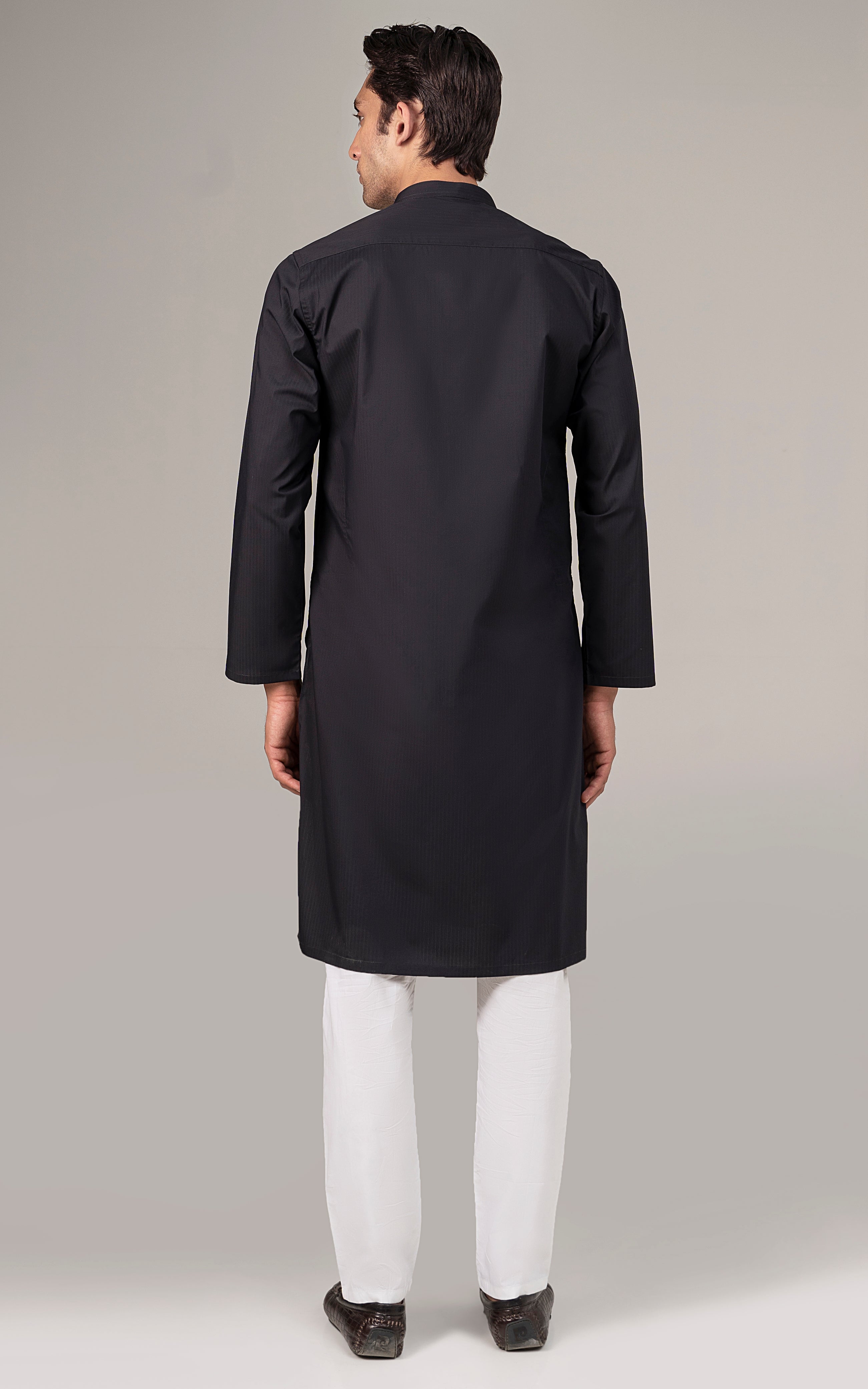 SELF DOBBY KURTA BLACK