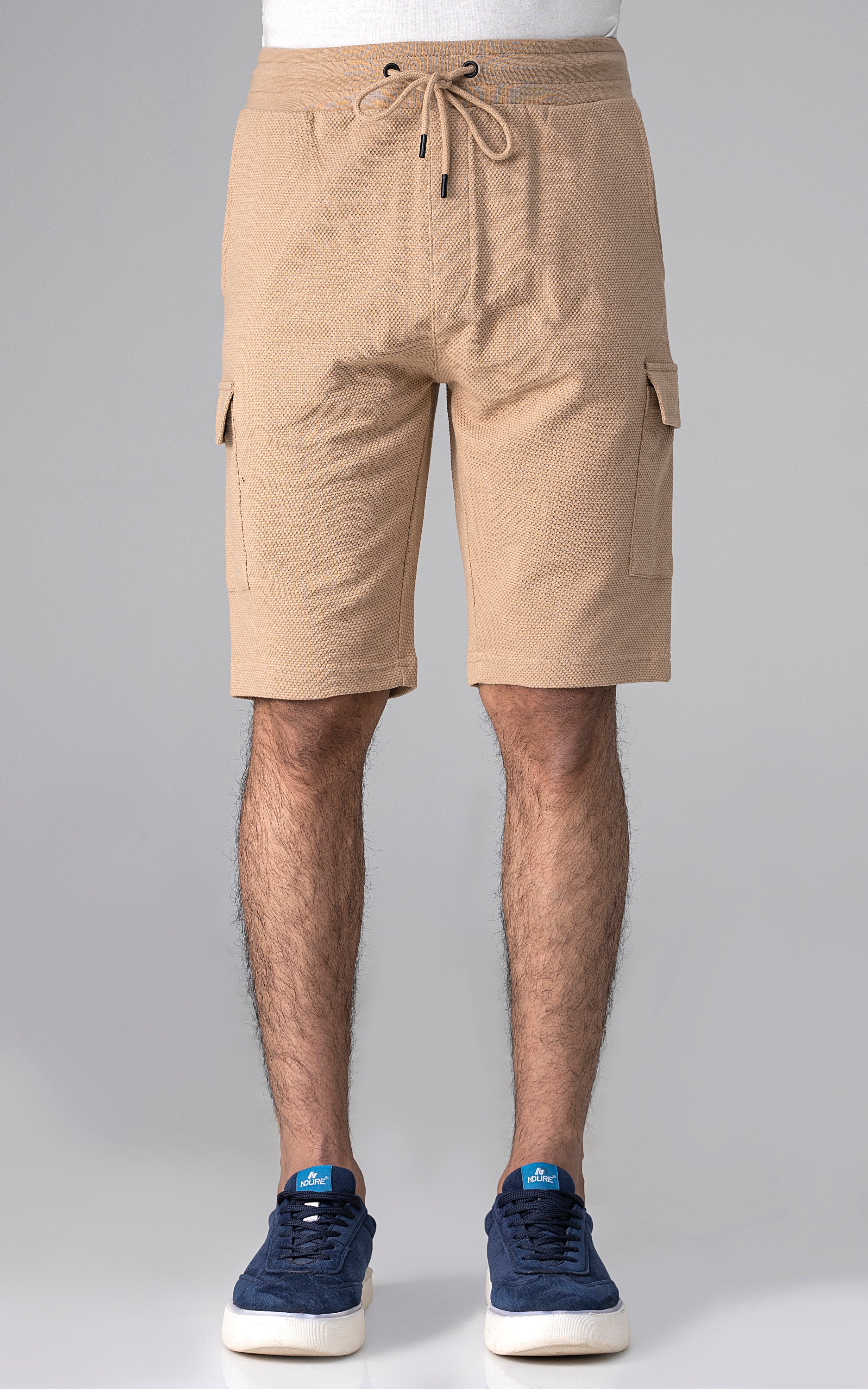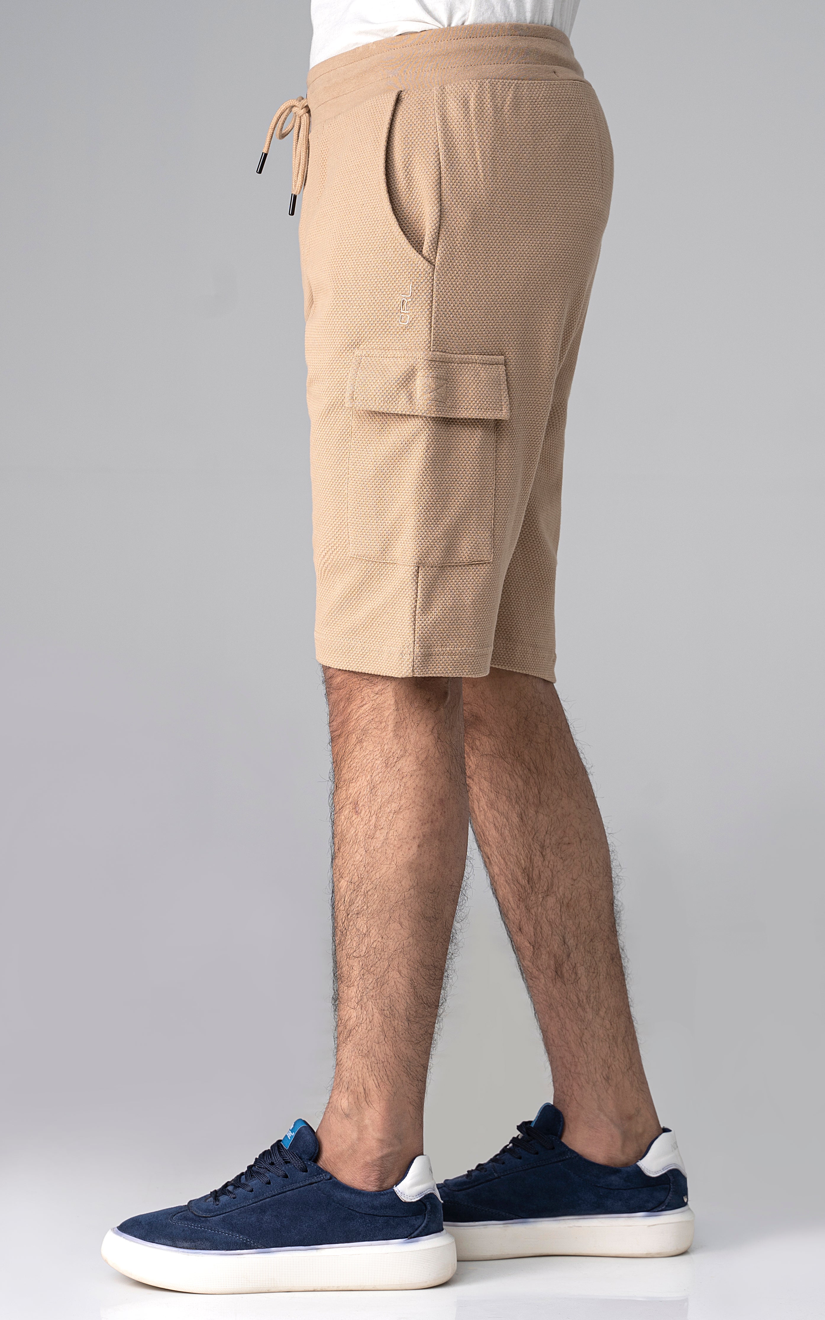 introducing our popcorn knitted cargo shorts, where comfort meets functionality. made from premium popcorn cotton-rich fabric, these shorts offer a luxurious feel and enhanced durability. featuring cargo pockets for added utility, and front logo embroidery for a touch of style. perfect for casual outings or lounging, these shorts combine versatility with modern design.
