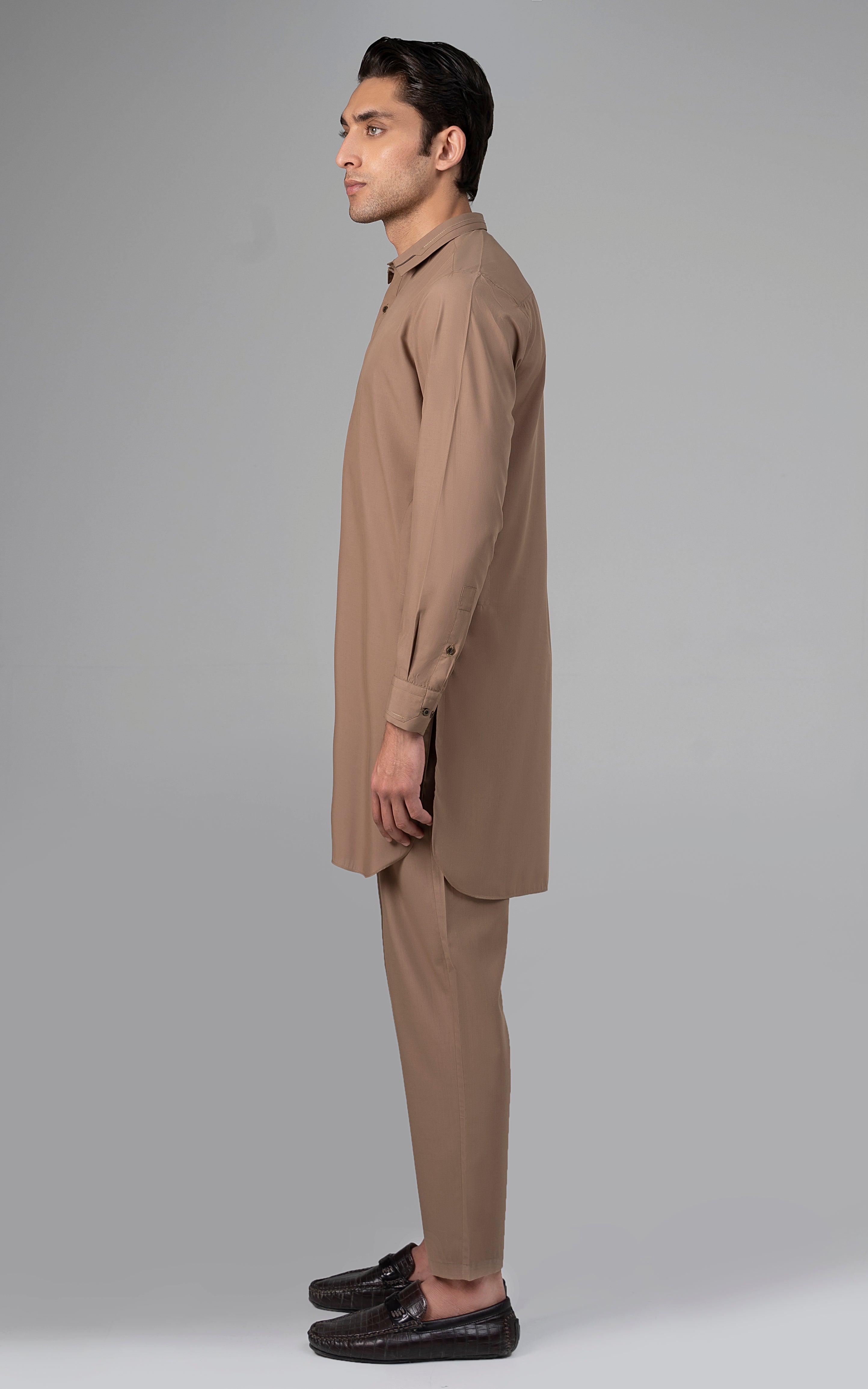 this fabric is constructed from special fibers of polyester and viscose. it is a splendid addition to our summer collection to make you look stupendous in this scathing heat. this fabric is accessible in light and dark hues. short collar, stitching details on collar, piping on button placket, visible placket, straight cuff, stitching details on cuff, round hem, metal buttons, wash & wear