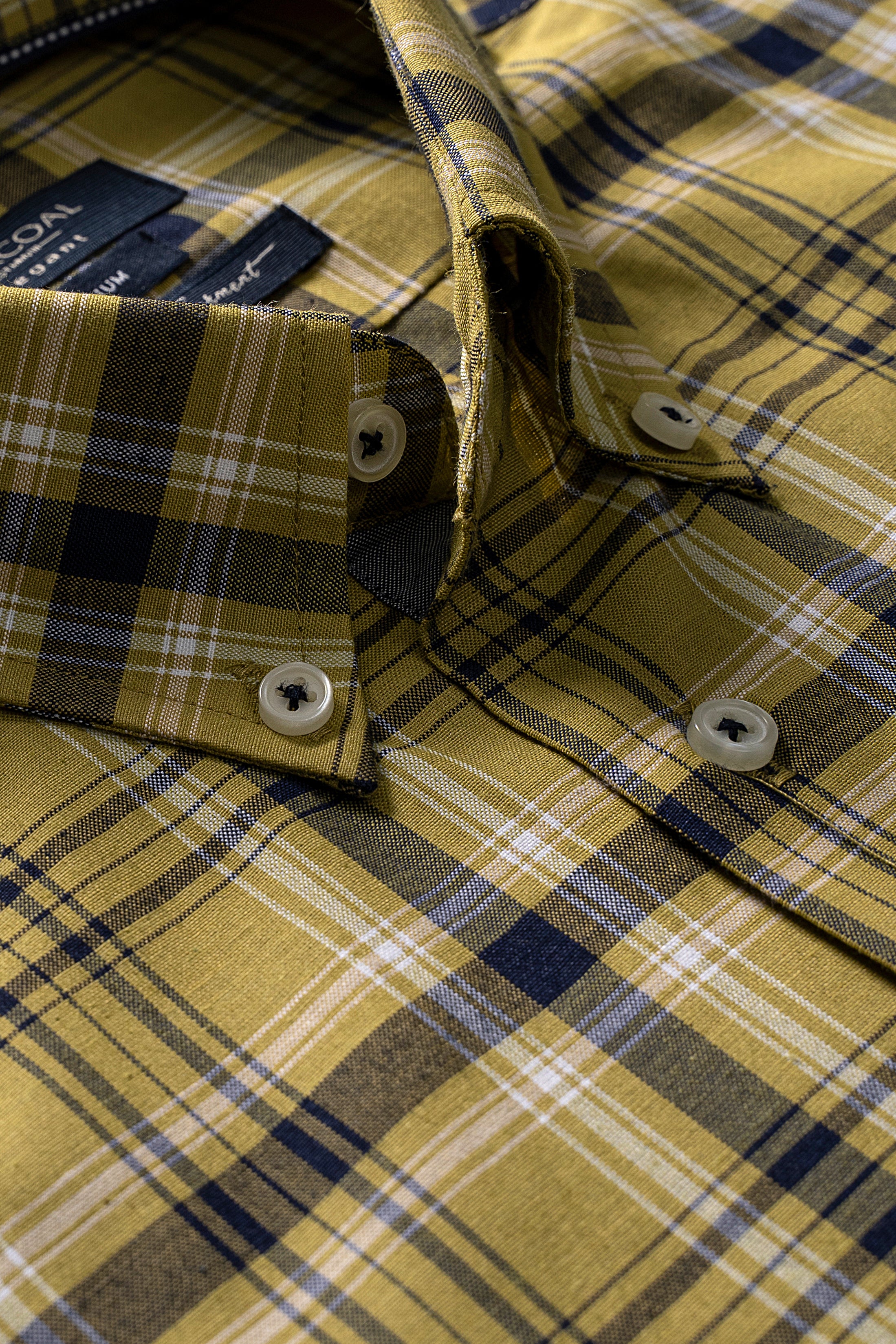 introducing our refined button down collar shirt, meticulously crafted for timeless style and comfort. with twill tape inside the ban and contrast detailing on the button placket, it exudes understated sophistication. made from premium cotton-rich check fabric, this shirt offers both durability and a touch of elegance. complete with a practical front pocket, round cuffs, buttoned fastening, and full sleeves, it ensures a polished look for any occasion. plus, its machine washable design makes it convenient for everyday wear.