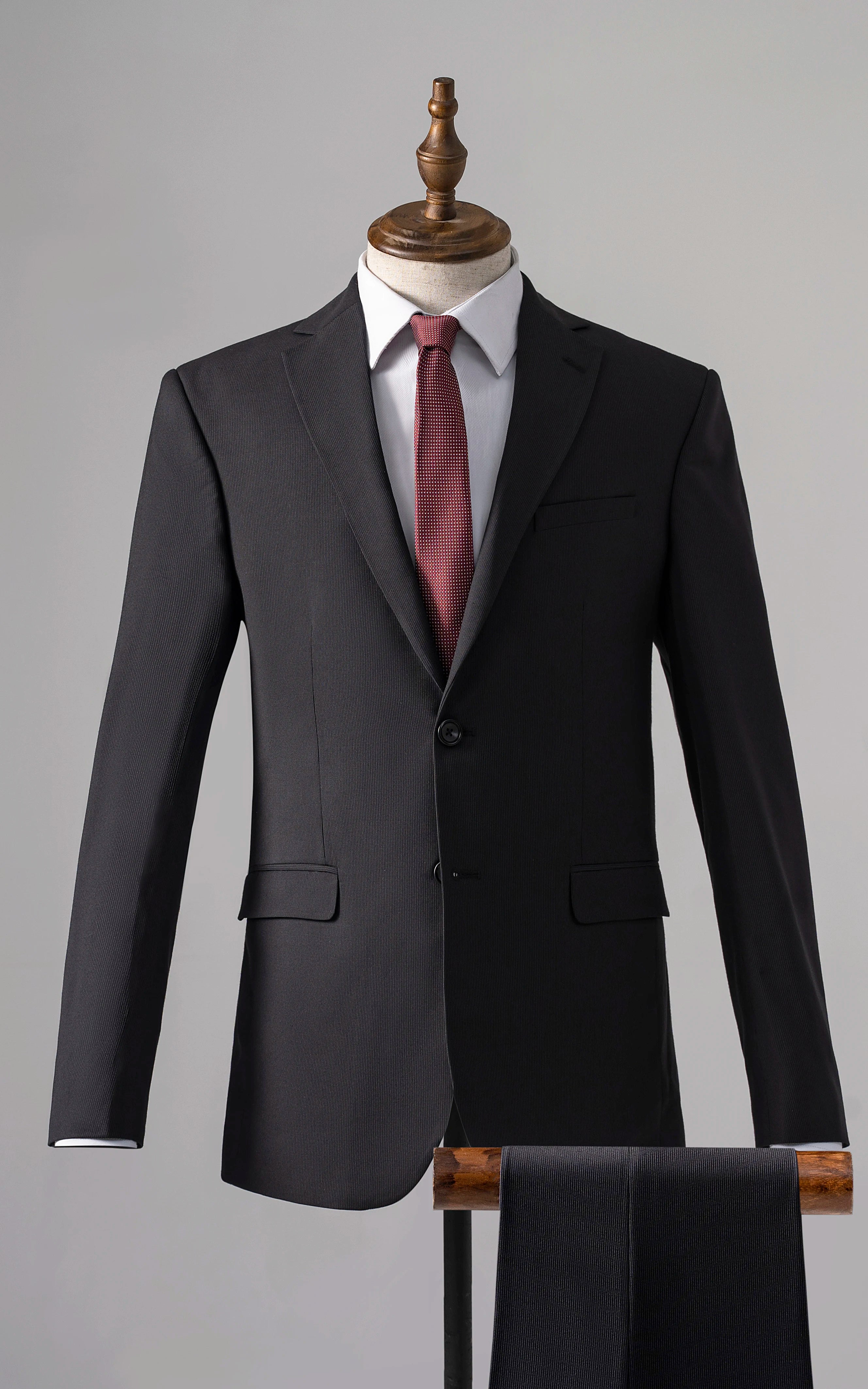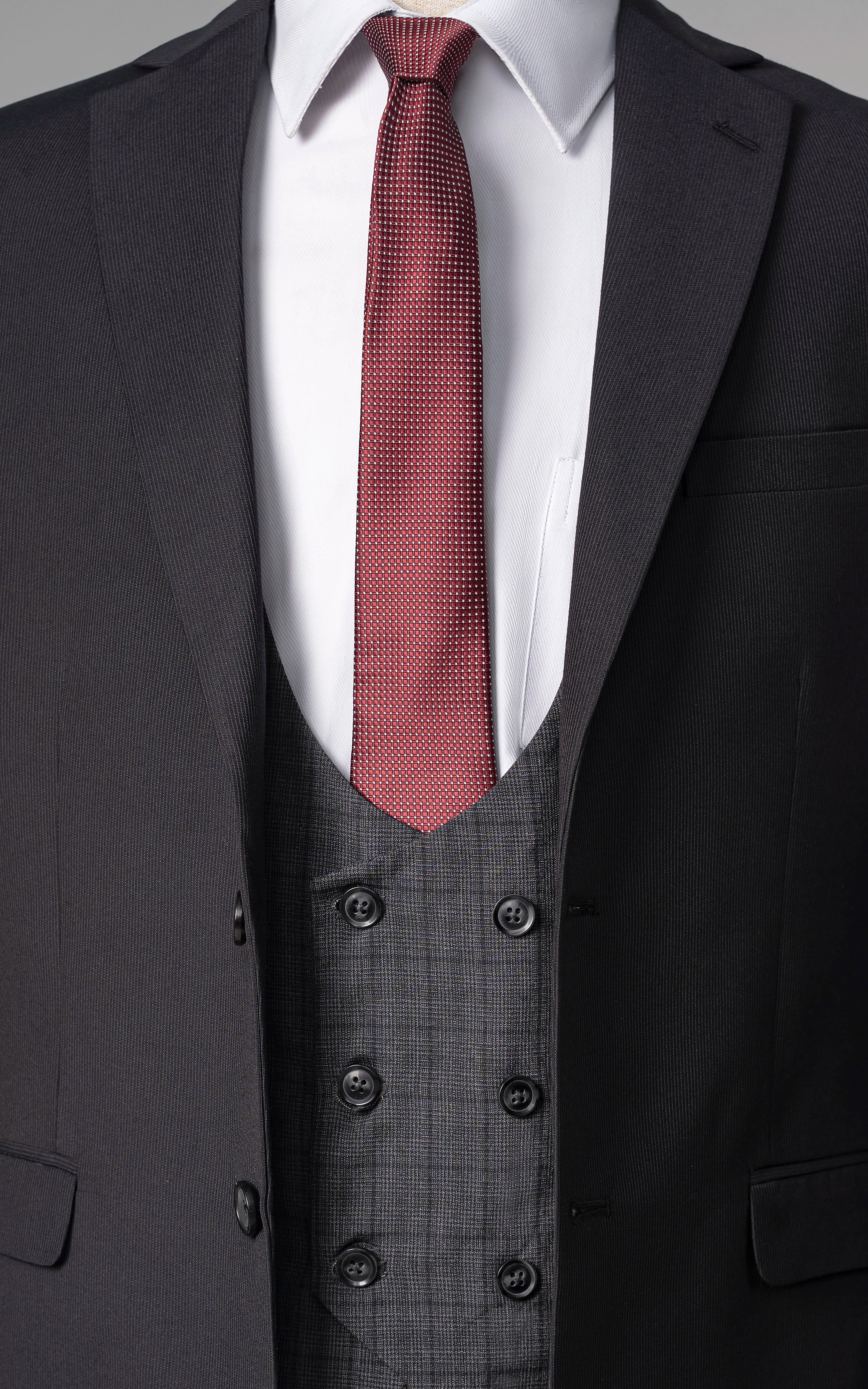 this distinguished three-piece suit features a notch lapel and a refined two-button closure, embodying classic sophistication. the front flap pockets enhance both style and practicality, while the back's two side vents provide added comfort and ease of movement. crafted from tropical fabric, the suit is designed for breathability, making it ideal for warmer climates. the slim fit cut delivers a sleek, modern profile, while the u-shaped double breasted waistcoat with an adjustable waist ensures a custom, flattering fit, adding an extra layer of elegance and versatility to your ensemble.