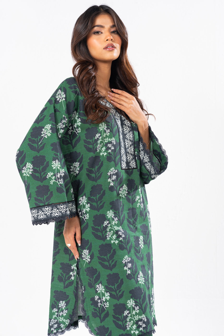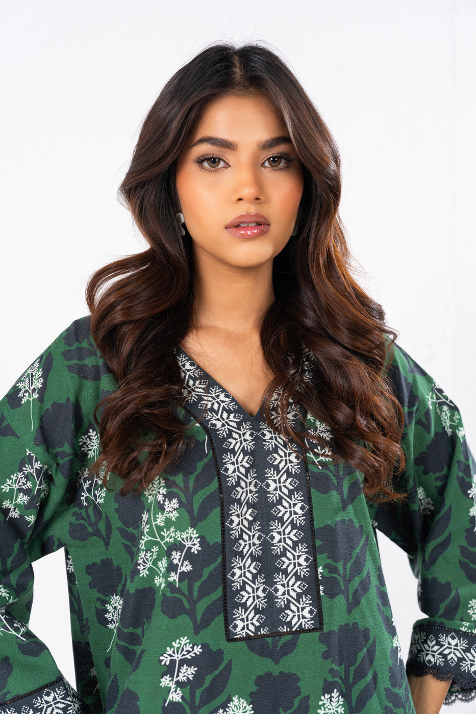 unstitched 1-piece printed khaddar shirt color: dark green shirt: printed khaddar shirt 1.75 meters fabric: khaddar disclaimer: due to the difference in lighting used during photoshoots, the color or texture of the actual product may slightly vary from the image.