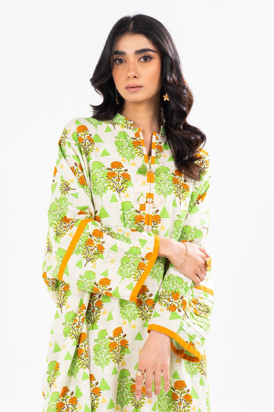 unstitched 1-piece printed khaddar shirt color: off white shirt: printed khaddar shirt 1.75 meters fabric: khaddar disclaimer: due to the difference in lighting used during photoshoots, the color or texture of the actual product may slightly vary from the image.