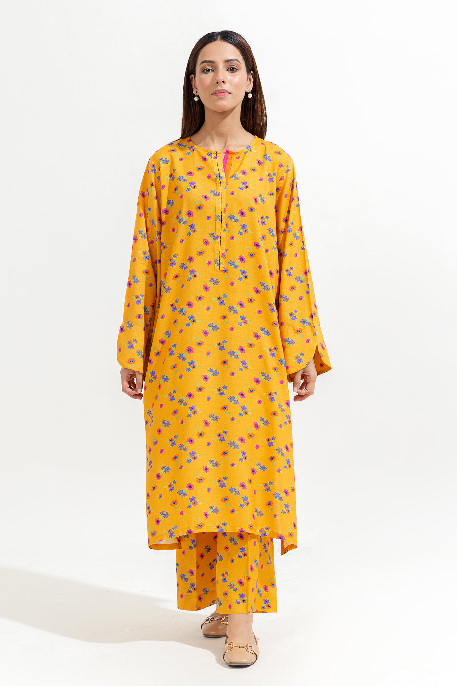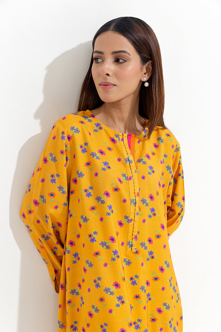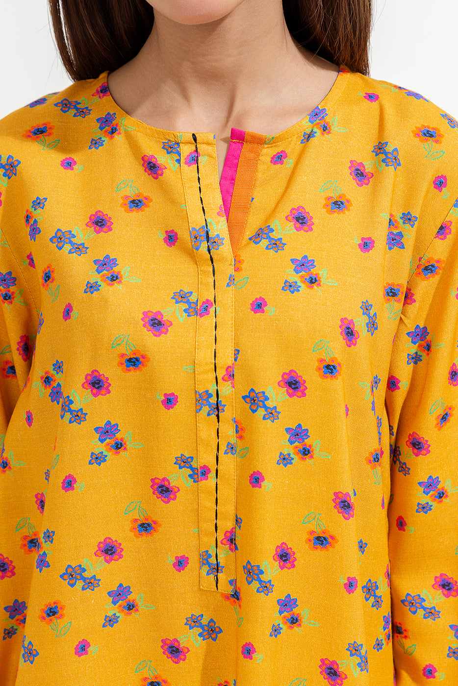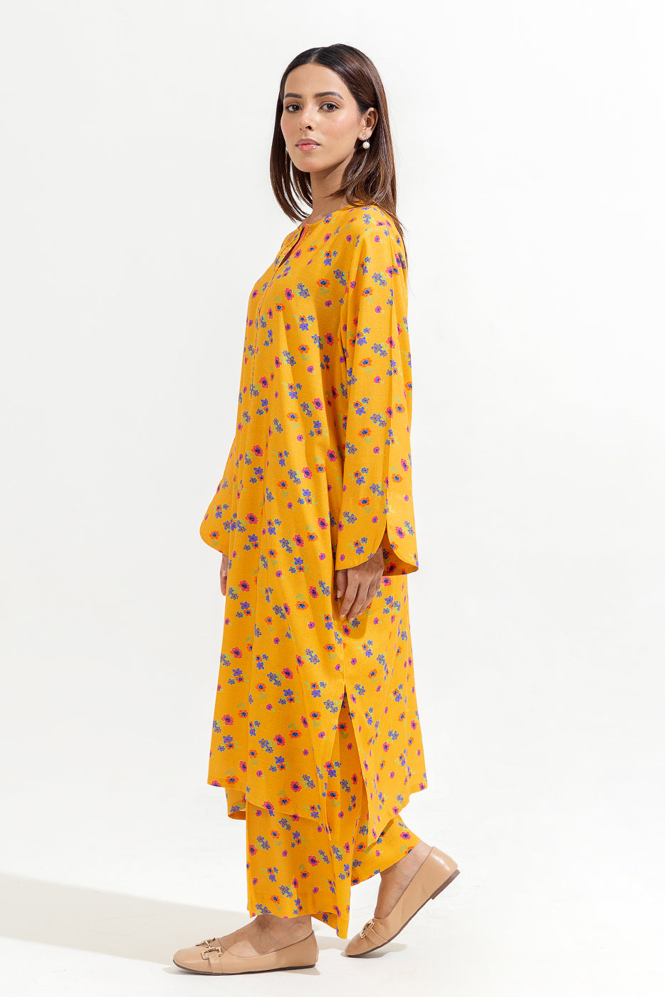 description: printed coord set with round neckline and placket with contrasting trim and top stitch detail. paired with culotte pants to complete the look. fabric: viscose what you'll get: shirt+pant fit: casual fit size & fit: model height is 5'6"? model is wearing 8 size