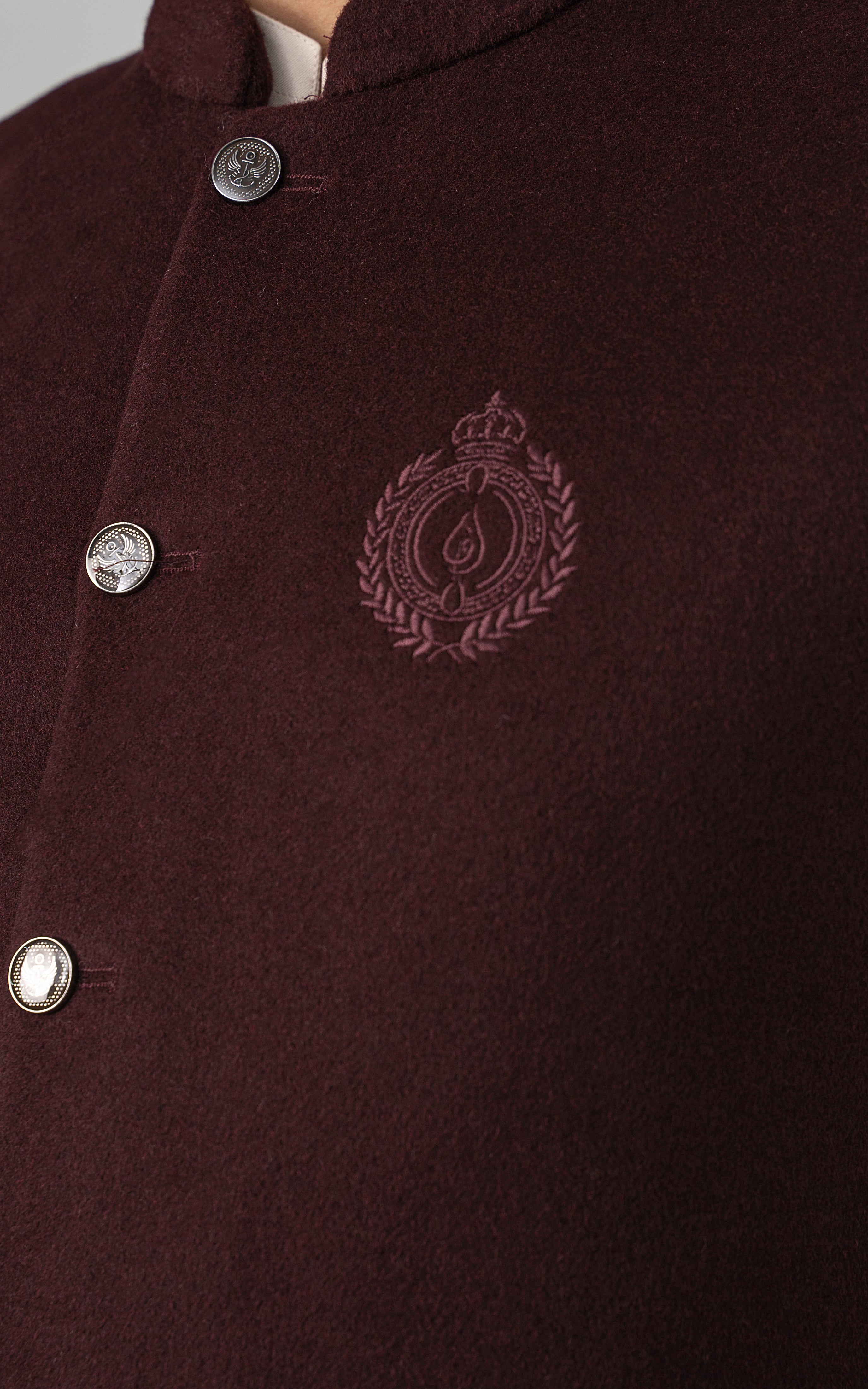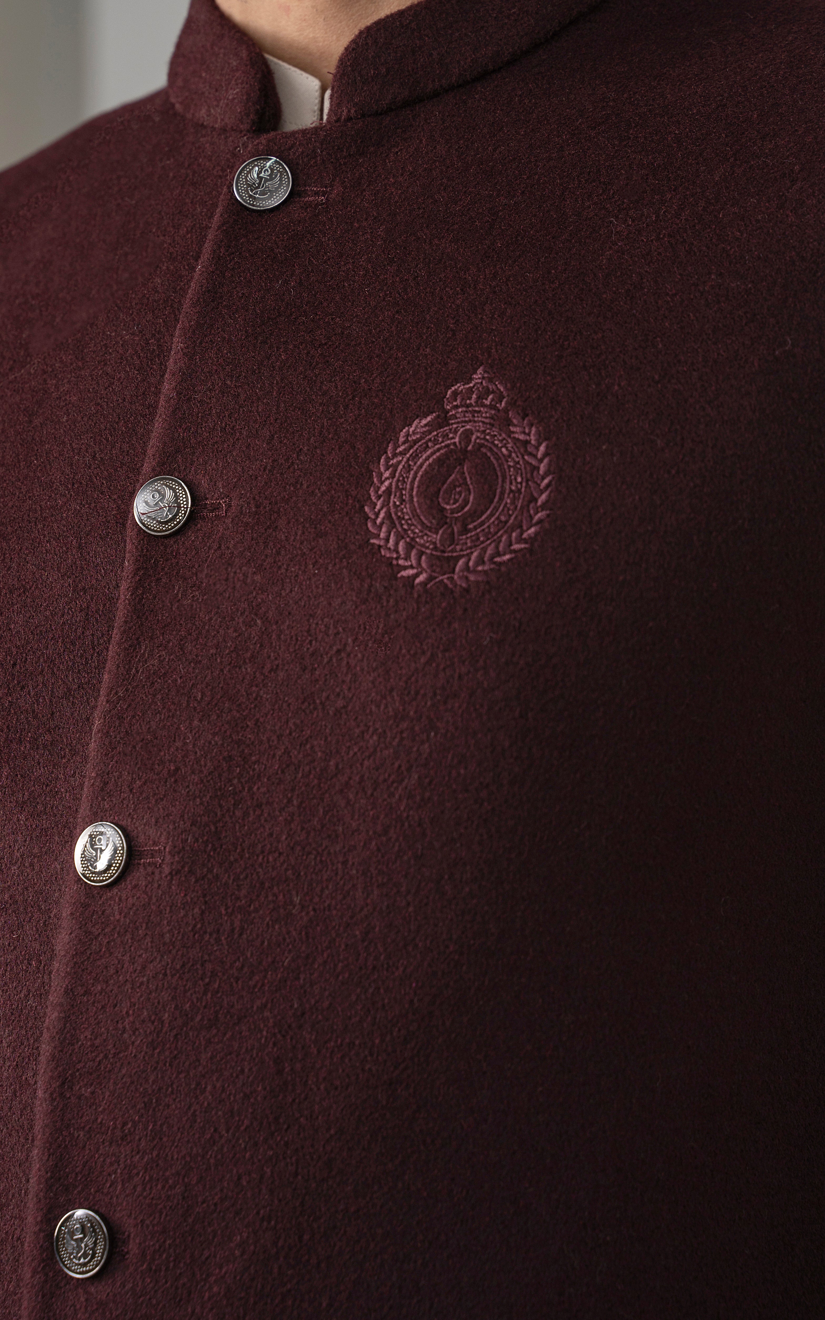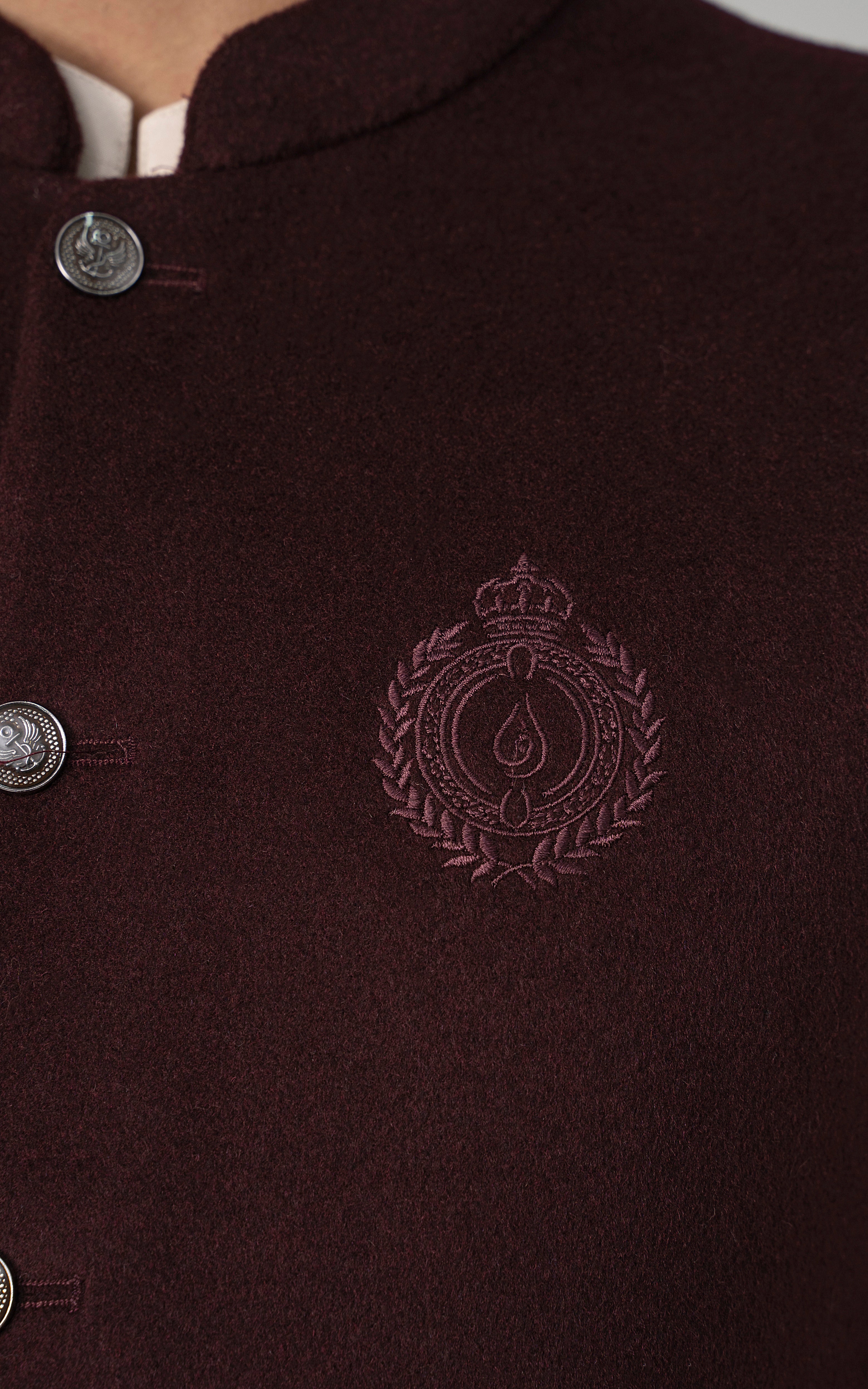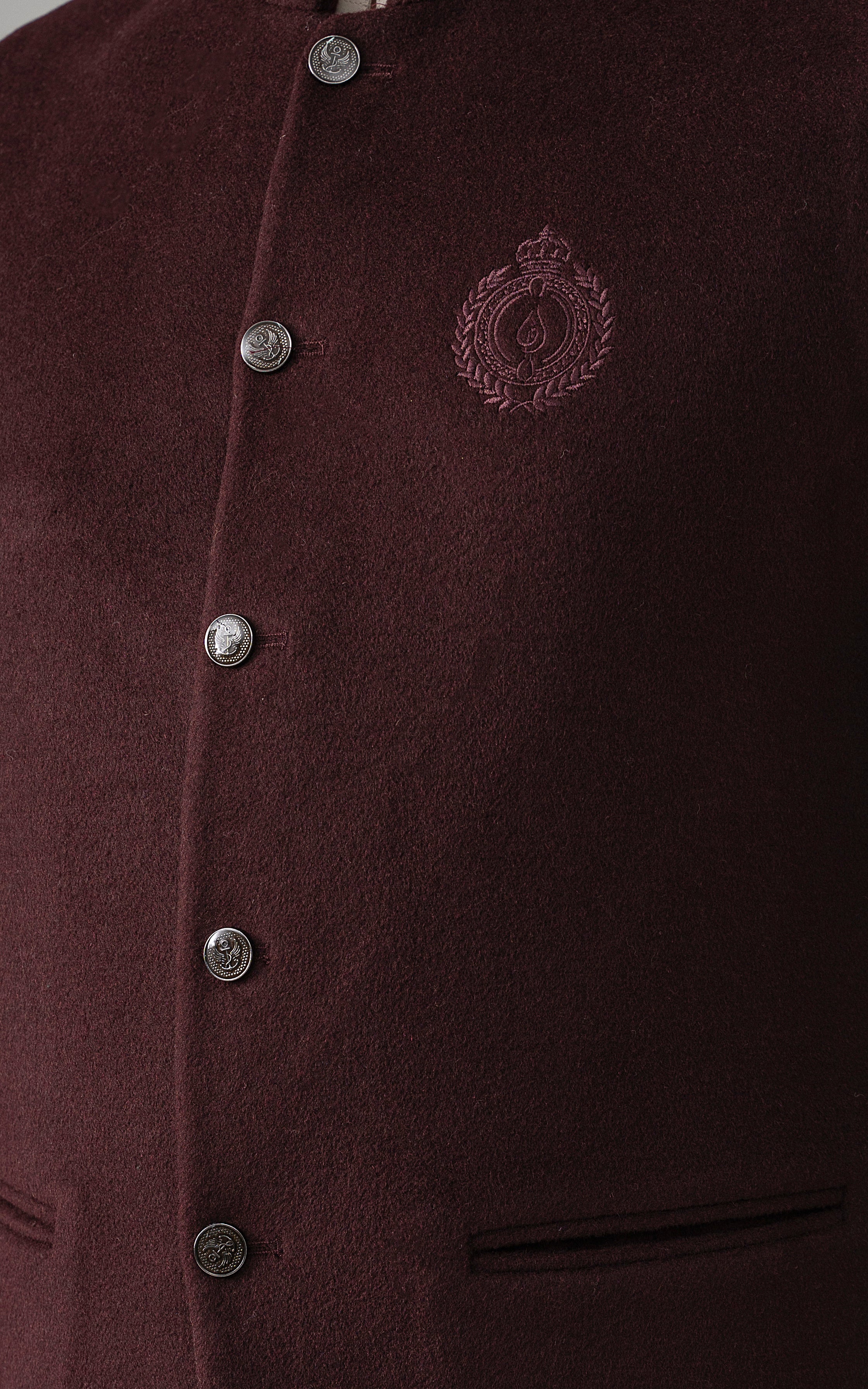 this woolen waistcoat with dtm signature embroidery is crafted with precision from luxurious wool. it includes mix of light and dark hues can be stylized with: the kurta-trouser suit or the classic shalwar kameez and the frontier shoe. round ban, signature logo embroidery on front double bone pockets on front visible placket full contrast lining inside round hem special buttons blended woolen waistcoat