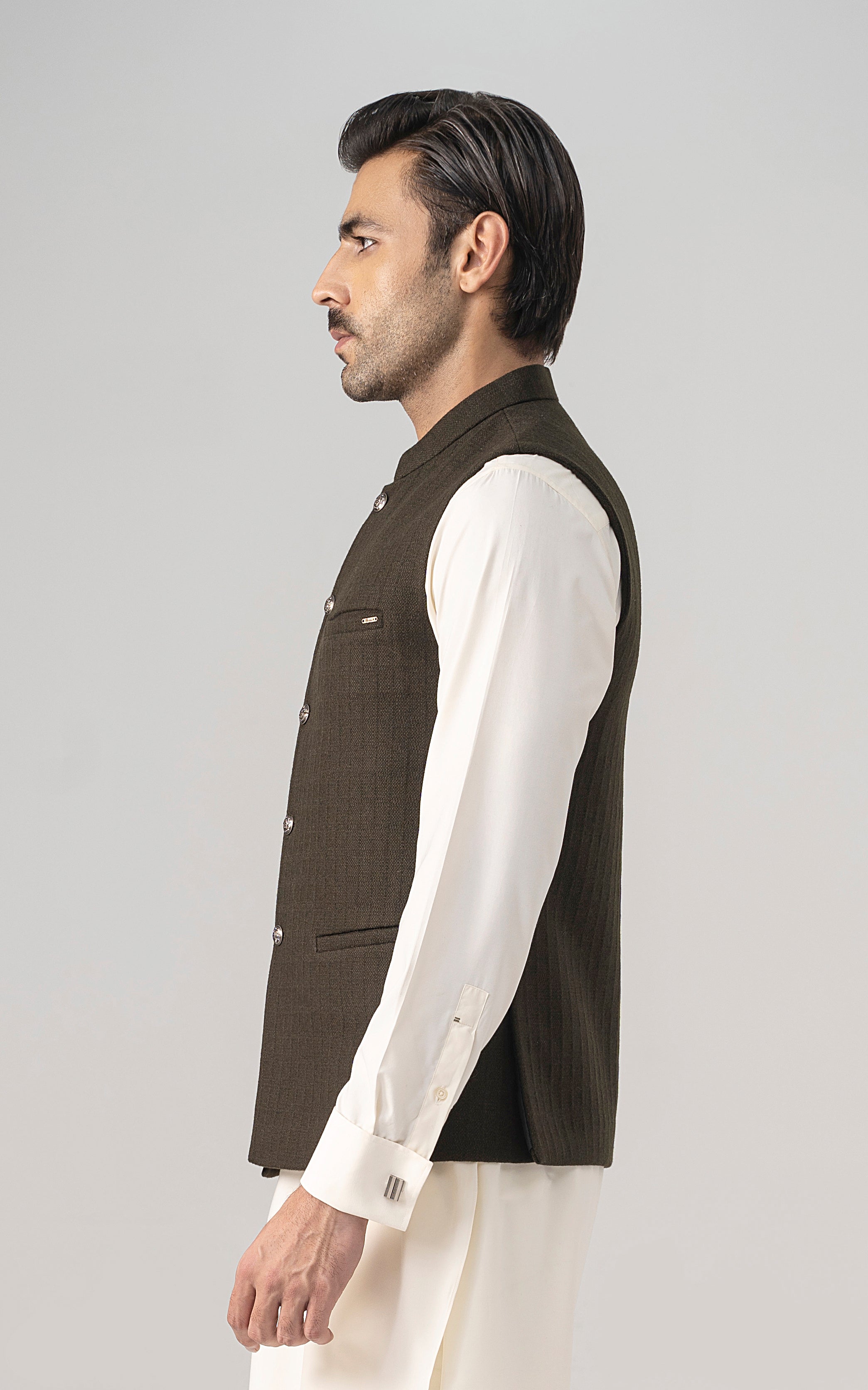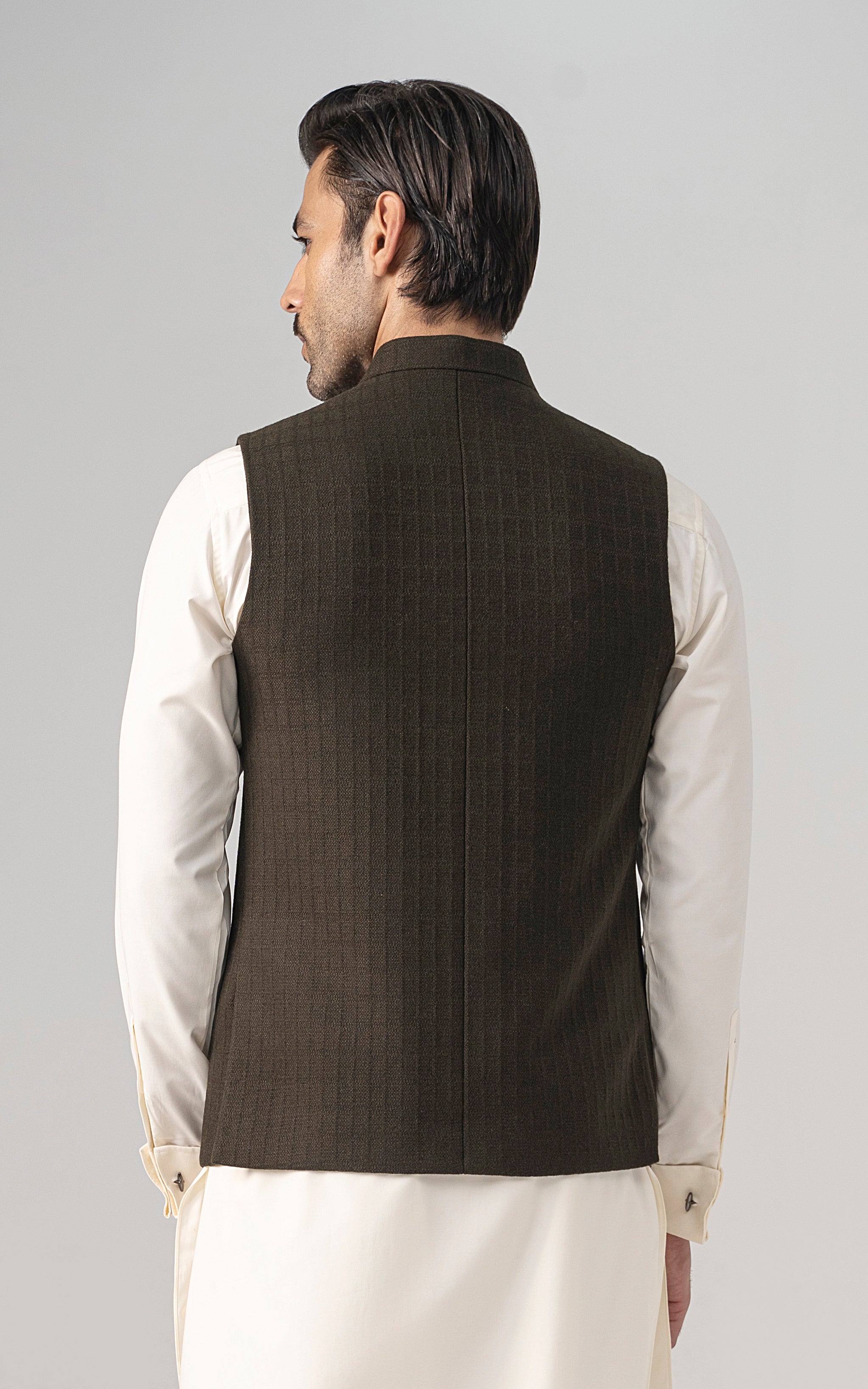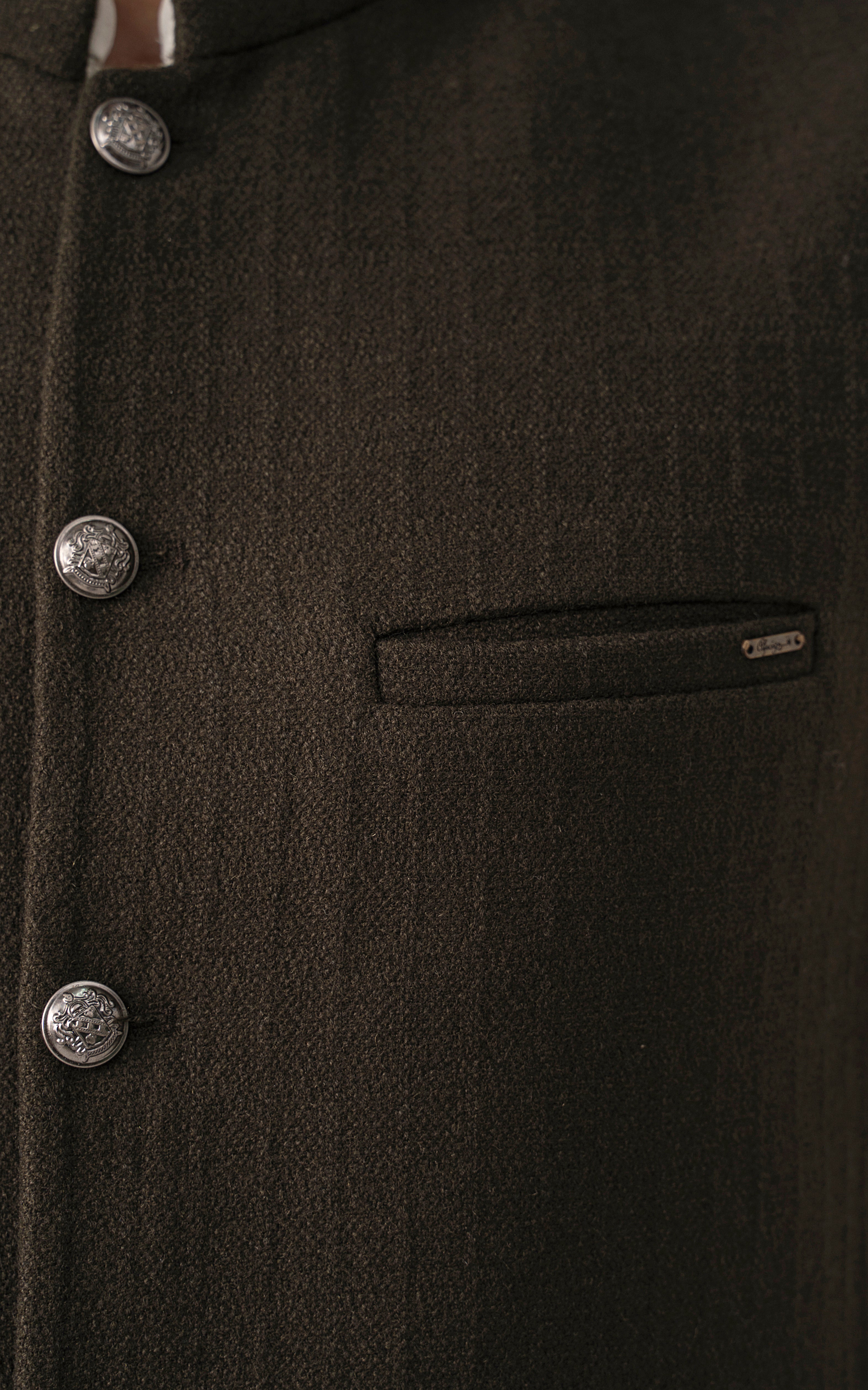 this is one of the most eminent fabric in our blended wool collection. this masterpiece is a class by itself when worn. this astonishing wool blend is an excellent fabric which will give you a classy look. it has only dark colors in its palette. straight ban upper front single bone pocket with trim detail single bone pockets on front visible placket full contrast lining inside straight hem special buttons textured woolen waistcoat