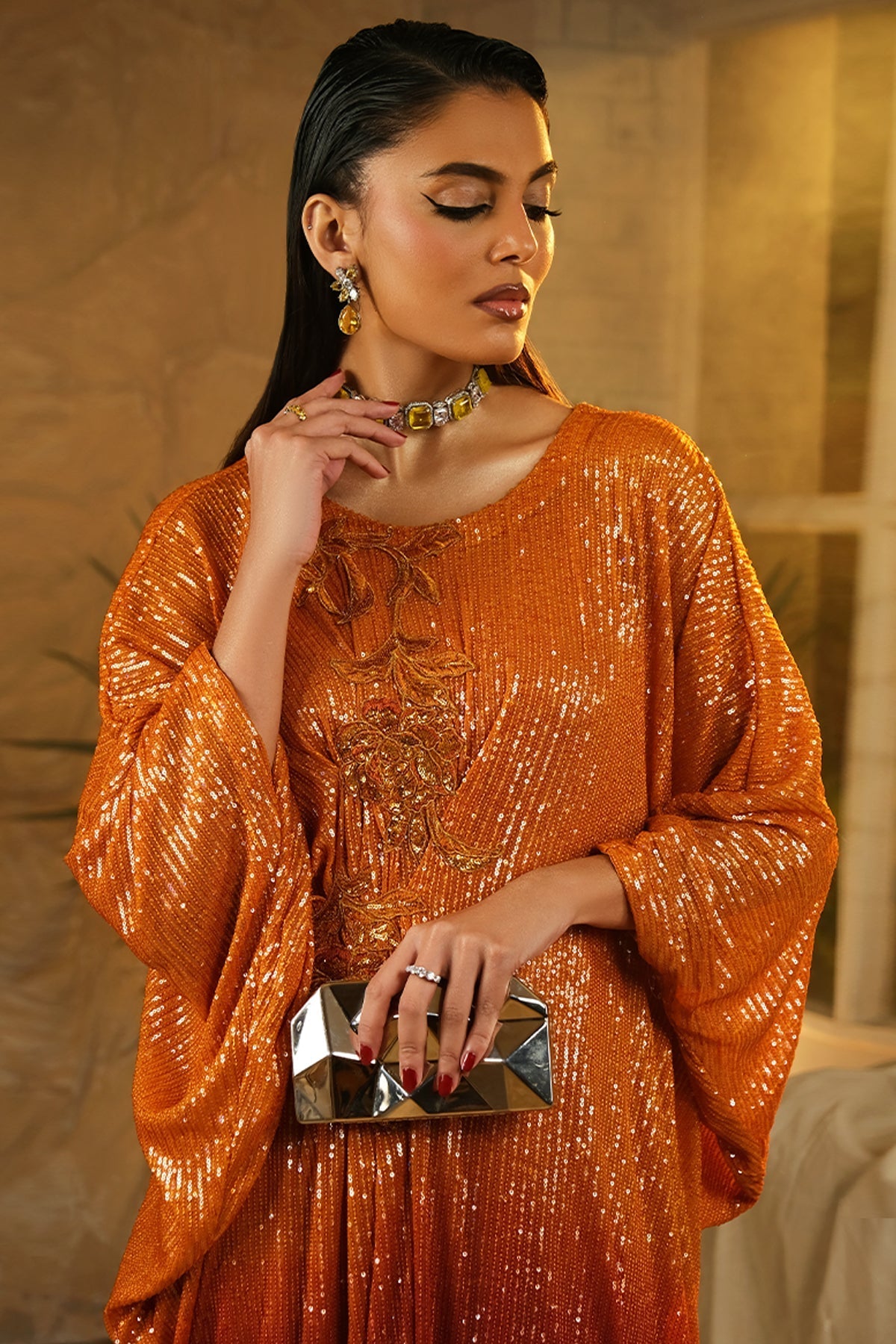 description net tie-n-dye of sequence embroidered finished with embroidered motifs on front neck side. fabric net cut line kaftaan qty kaftaan,inner and plain trouser delivery time : 10-14 working days note : this collection is made to order for which customers are supposed to make advance payments international delivery charges will be calculated at checkout. for national delivery charges kindly click on talk to us button.