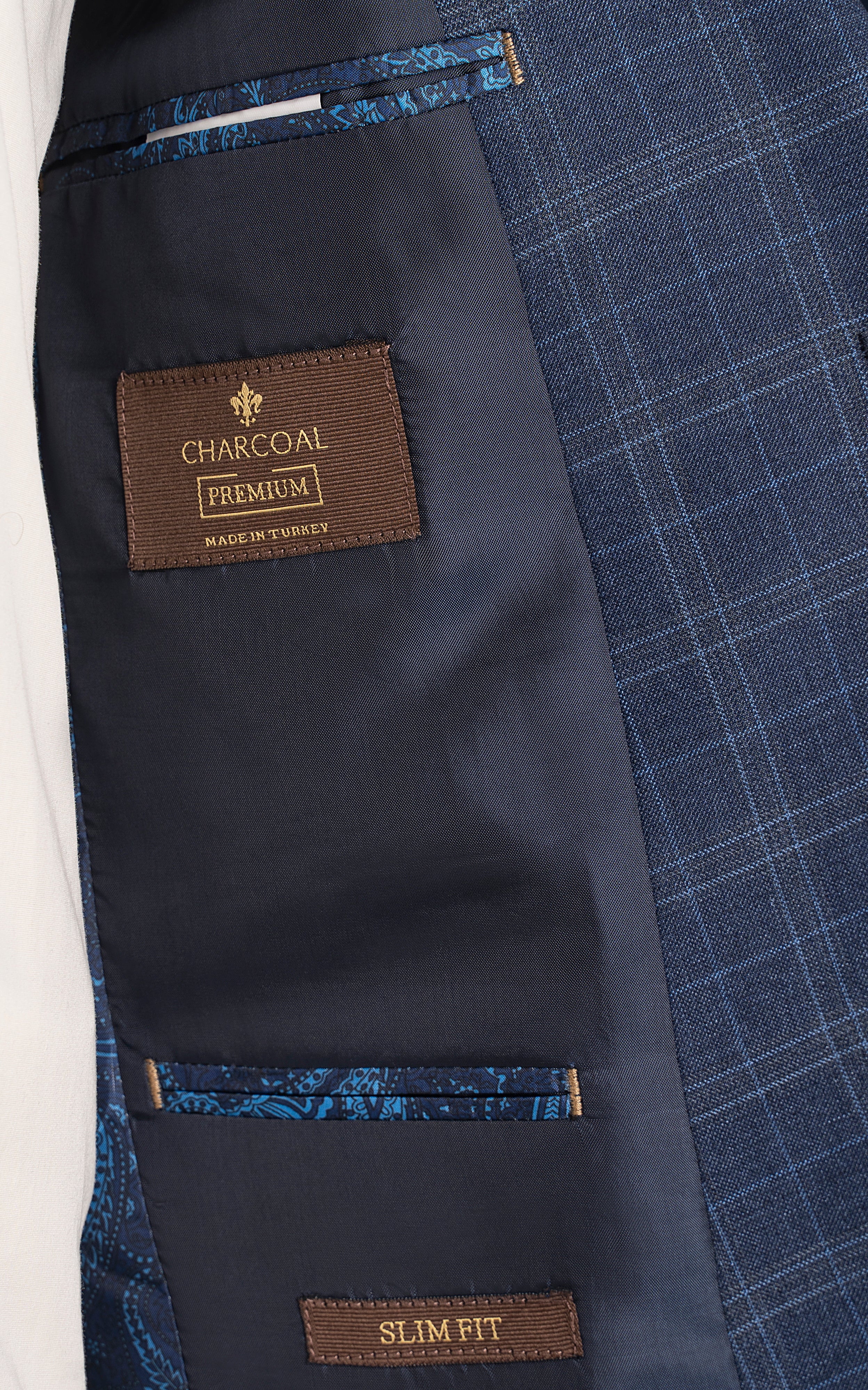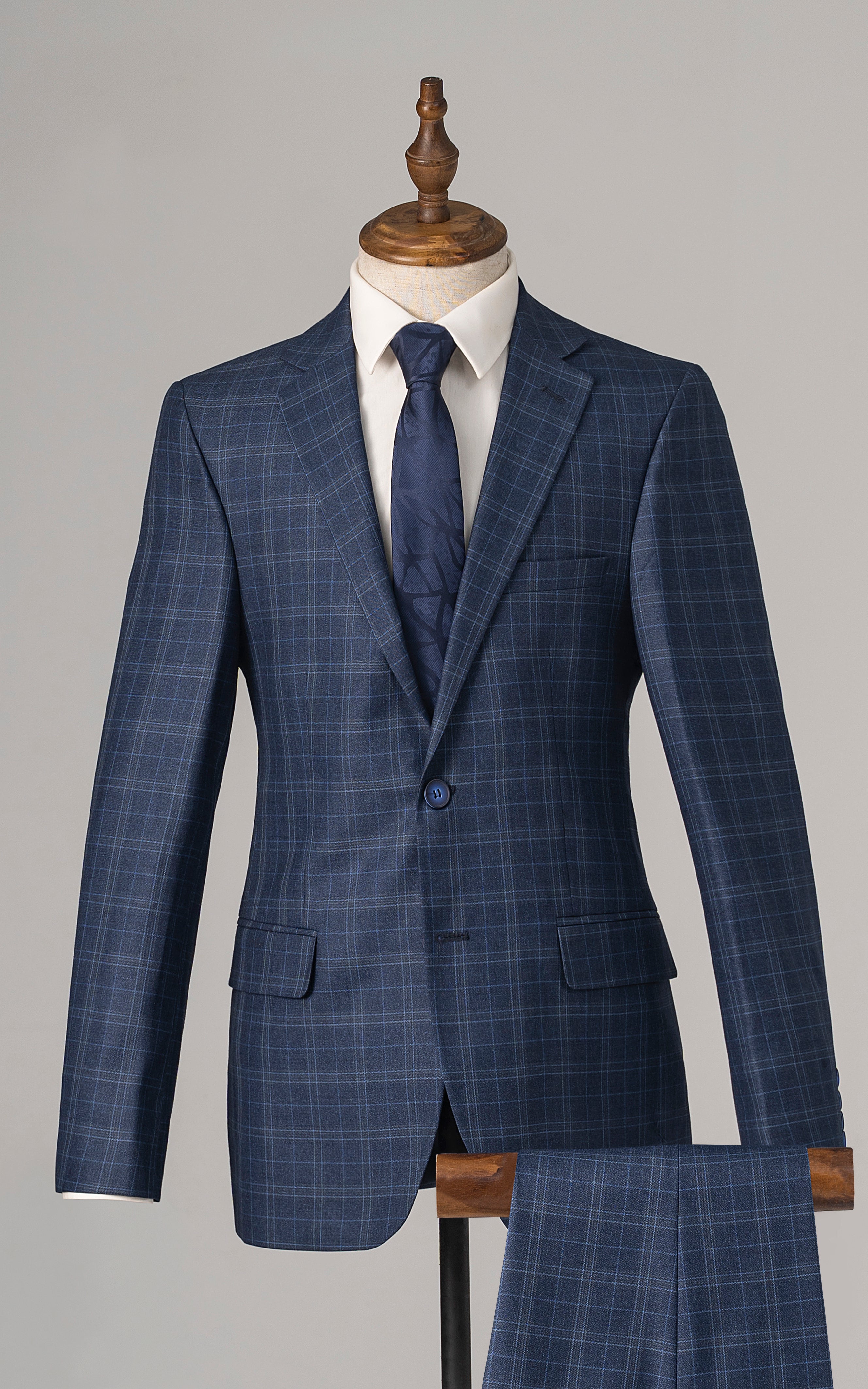 this stylish two-piece suit features a notch lapel and a classic two-button closure, creating a sleek and contemporary look. the front flap pockets add a touch of practicality, while the back's two side vents ensure comfort and ease of movement. crafted from a tropical check fabric, it combines visual interest with breathability, making it ideal for all seasons. the slim fit design enhances the suit's modern appeal, providing a sharp, tailored silhouette that complements both formal and semi-formal occasions.