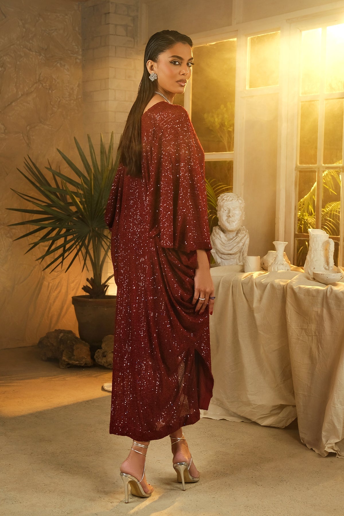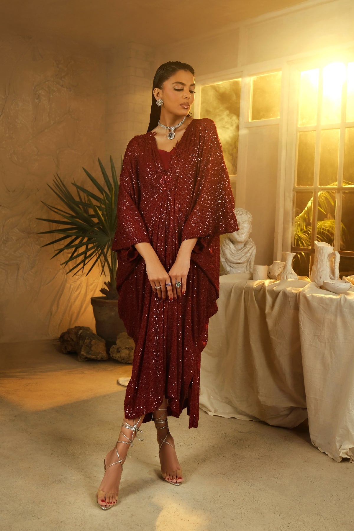 description net of sequence embroidered finshed with hand embellished embroidered motifs on front neck side. fabric net cut line kaftaan qty kaftaan,inner and plain trouser delivery time : 10-14 working days note : this collection is made to order for which customers are supposed to make advance payments international delivery charges will be calculated at checkout. for national delivery charges kindly click on talk to us button.