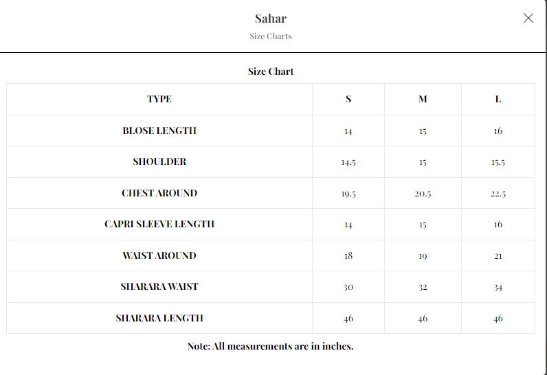description :intricately embroidered with tilla, sequence, and resham, this ensemble boasts heavy hand embellishments on the front and back of the choli. the added capri sleeves are elegantly finished with delicate handwork on the sleeve openings, while the choli is beautifully adorned with exquisite hangings for a perfect finish fabric : medium organza and brosha jamawar cut line :heavy embellished choli , sharara and dupatta work details :intricately embellished on embroidered base delivery timeframe : stitched 18-20 working days note :international delivery charges will be calculated at checkout.