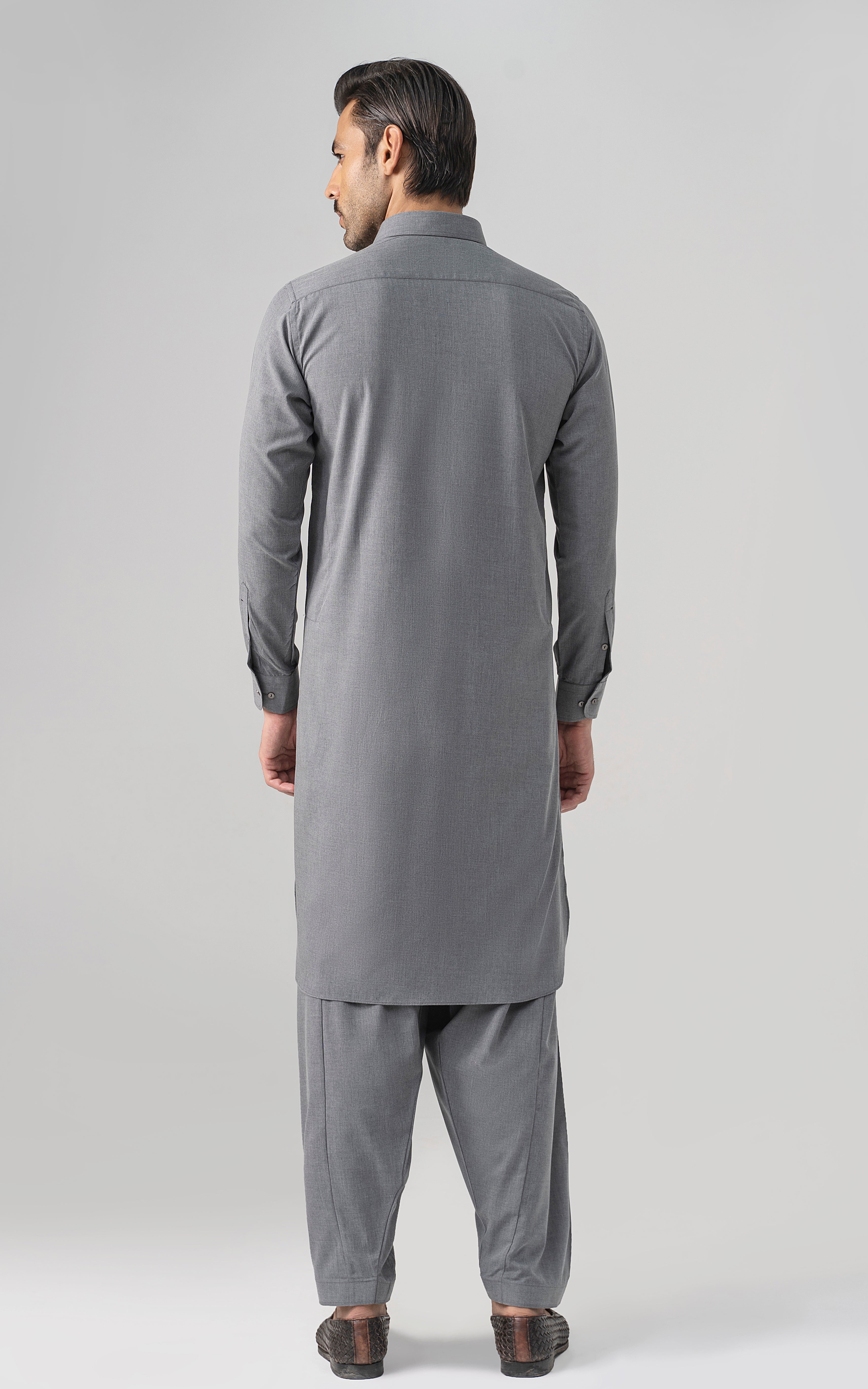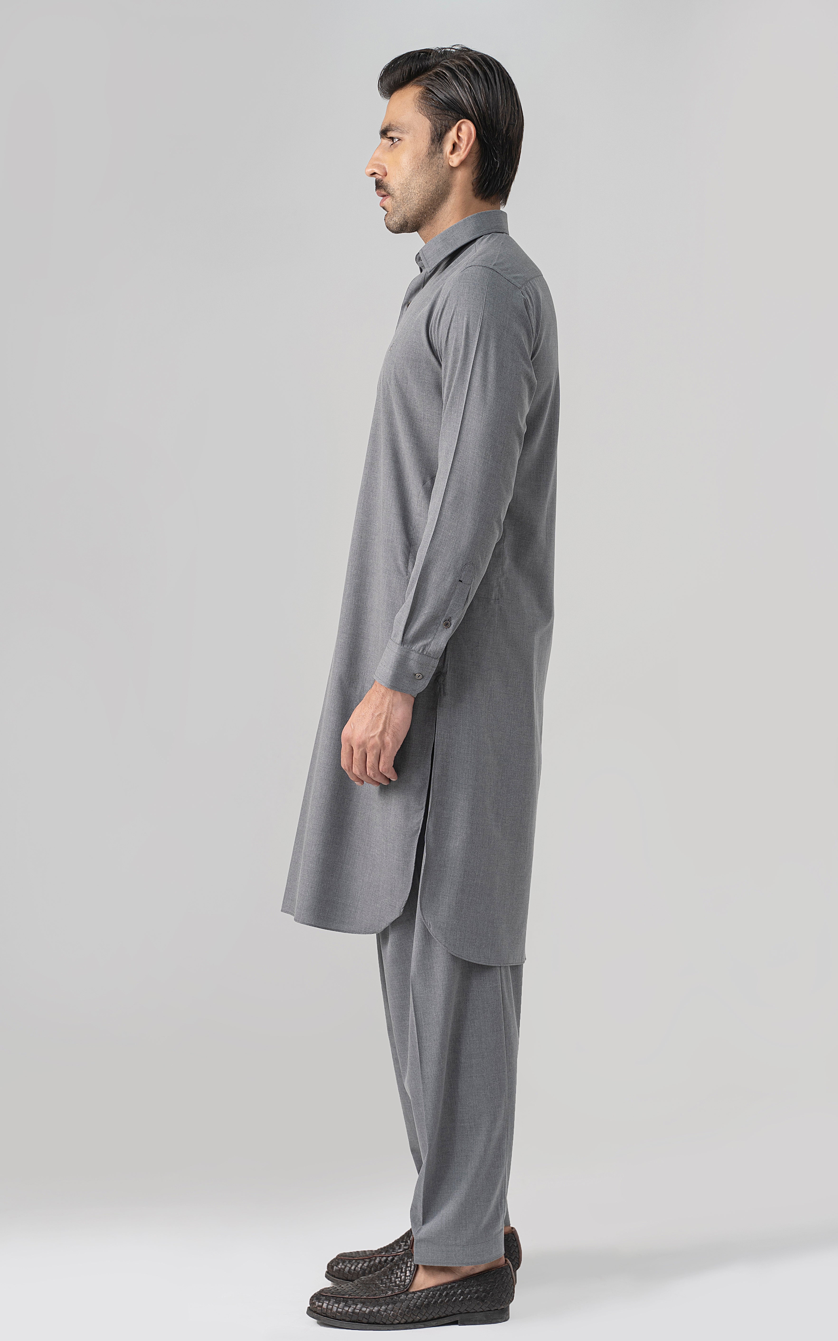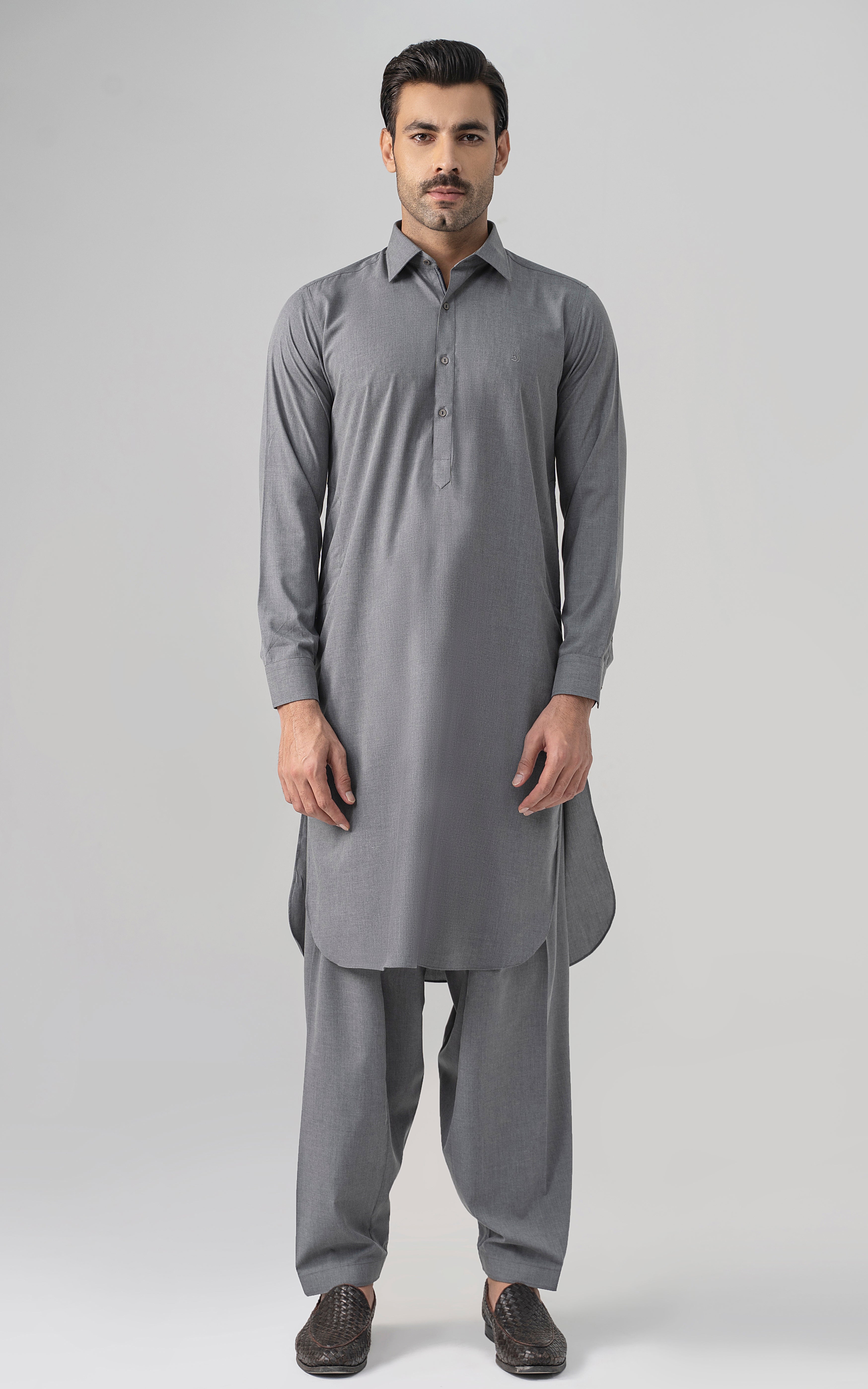 this mélange fabric is crafted from a opulent blend of viscose and polyester. this fibre dyed cloth is one of the finest fabrics to be manufactured and has elegance and royalty embedded in every fibre. light colors are available in this flawless fabric. regular collar piping and champa details on button placket signature logo embroidery on front bar-tack details on sleeve placket round cuff round hem metal buttons blended mélange fabric