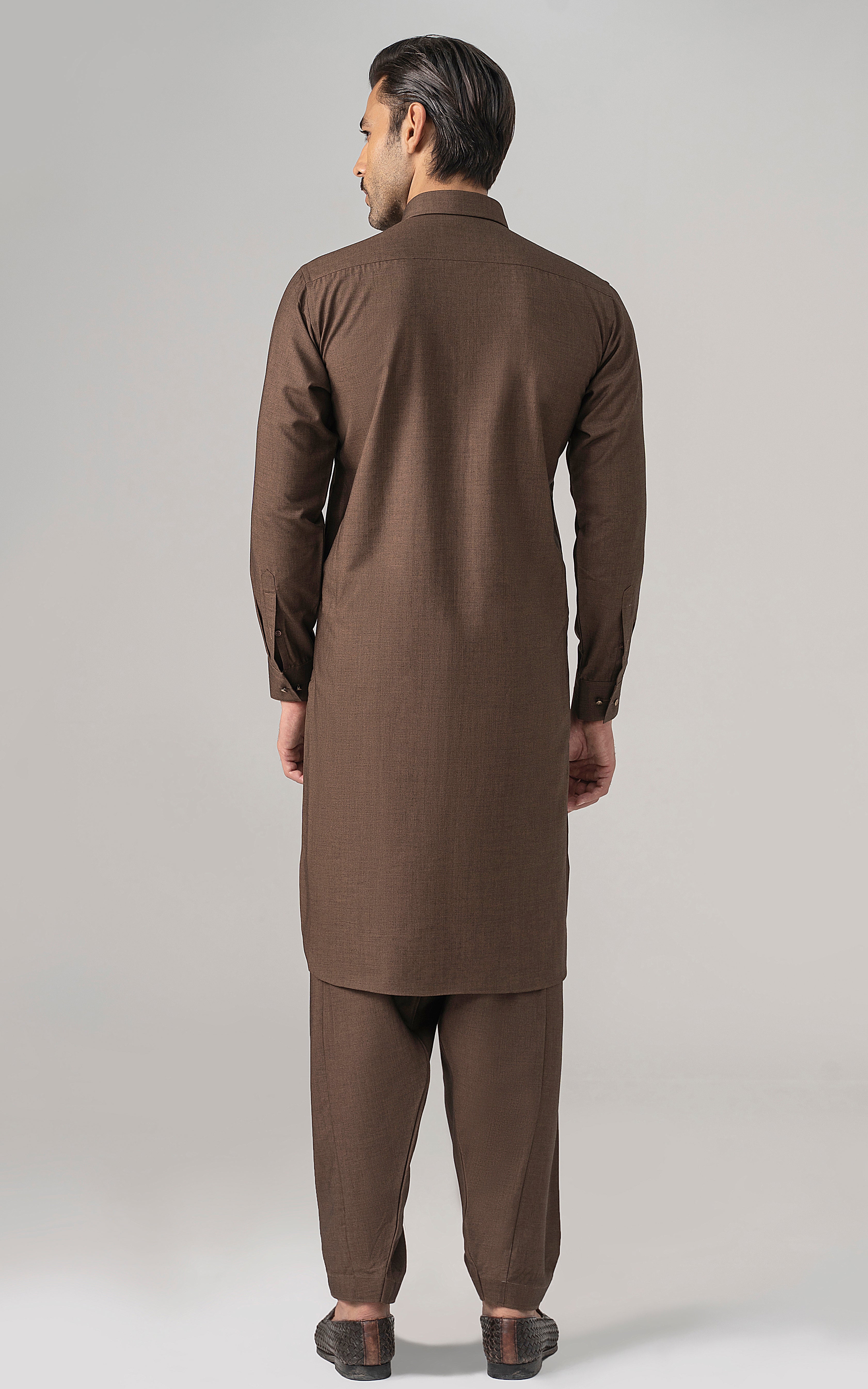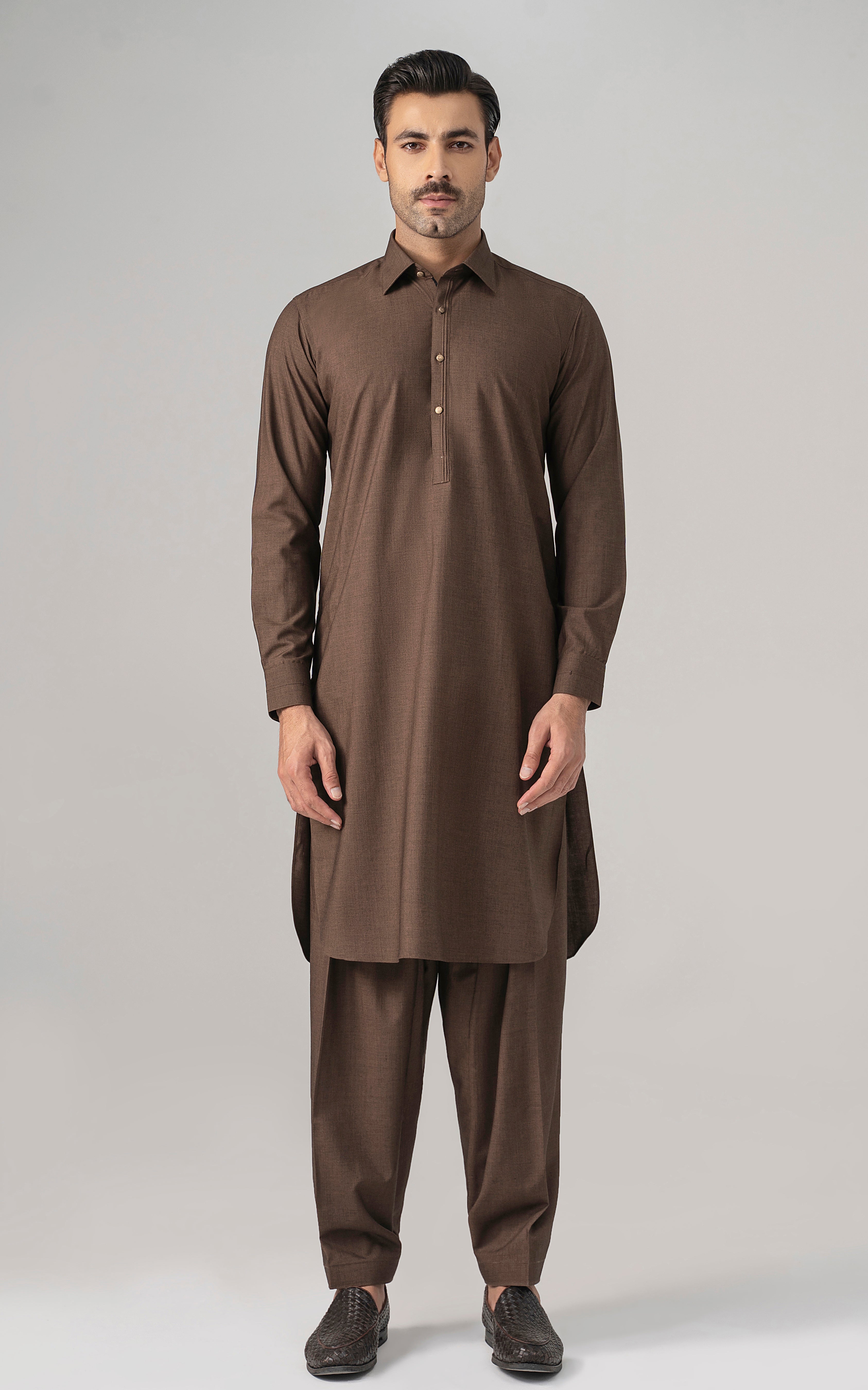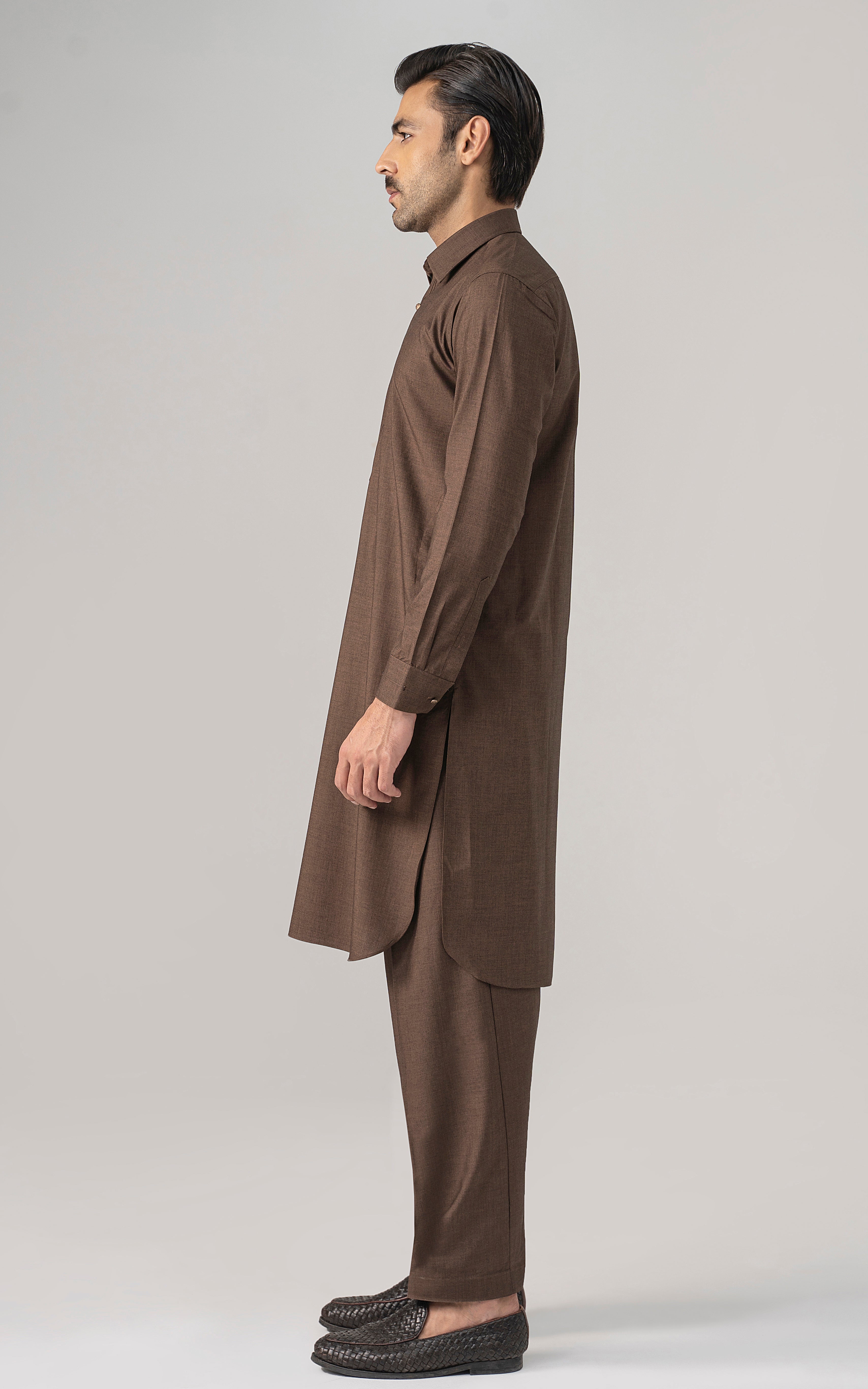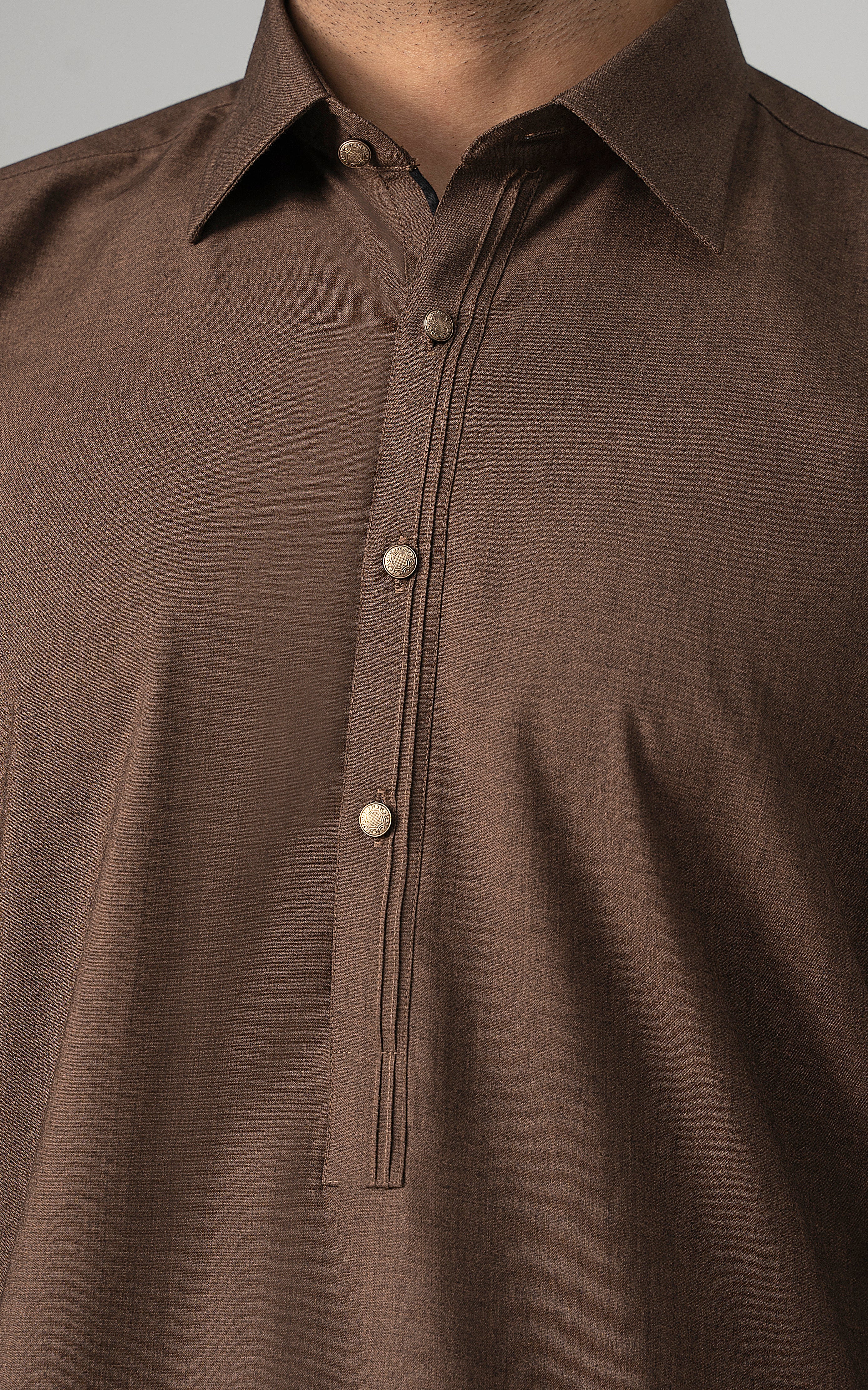 this yarn dyed fabric is a blend of fine fibers of polyester and viscose with that accentuating silky touch. a masterpiece from our blended collection, it epitomizes sophistication and innovation. the article is accessible in light and medium hues. regular collar piping on button placket stitching details on front placket visible placket stitching and bar-tack details on cuff straight cuff round hem special buttons blended woolen mélange fabric